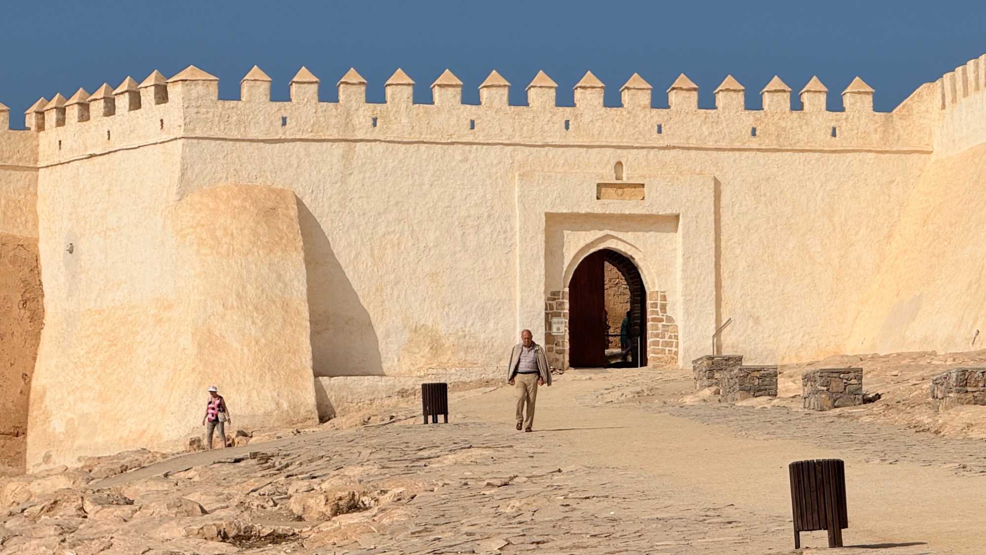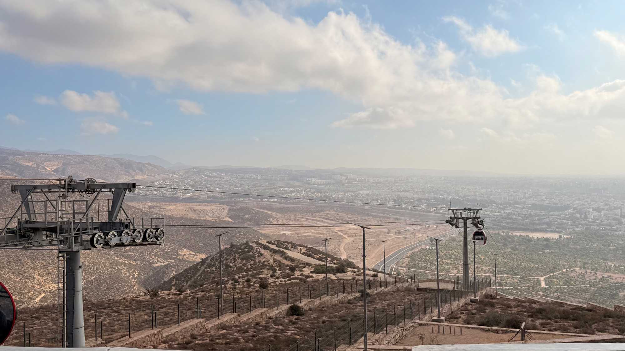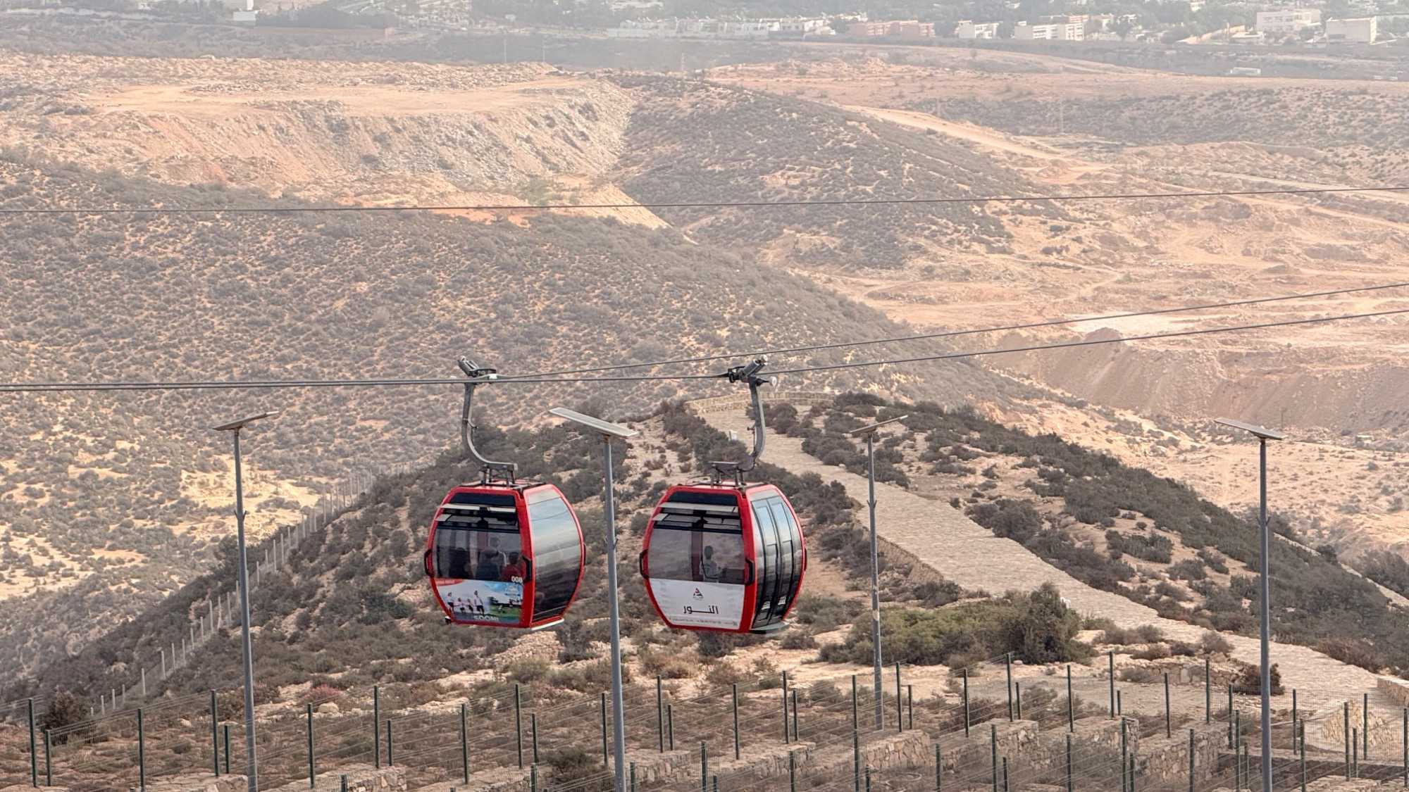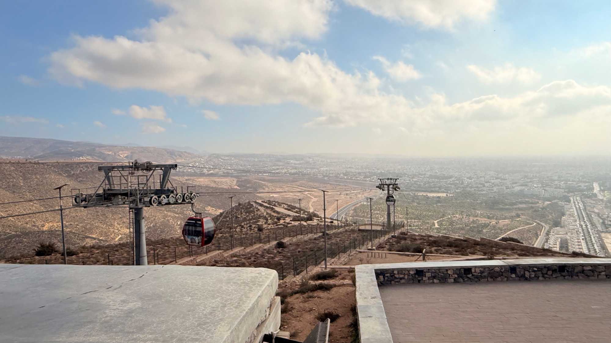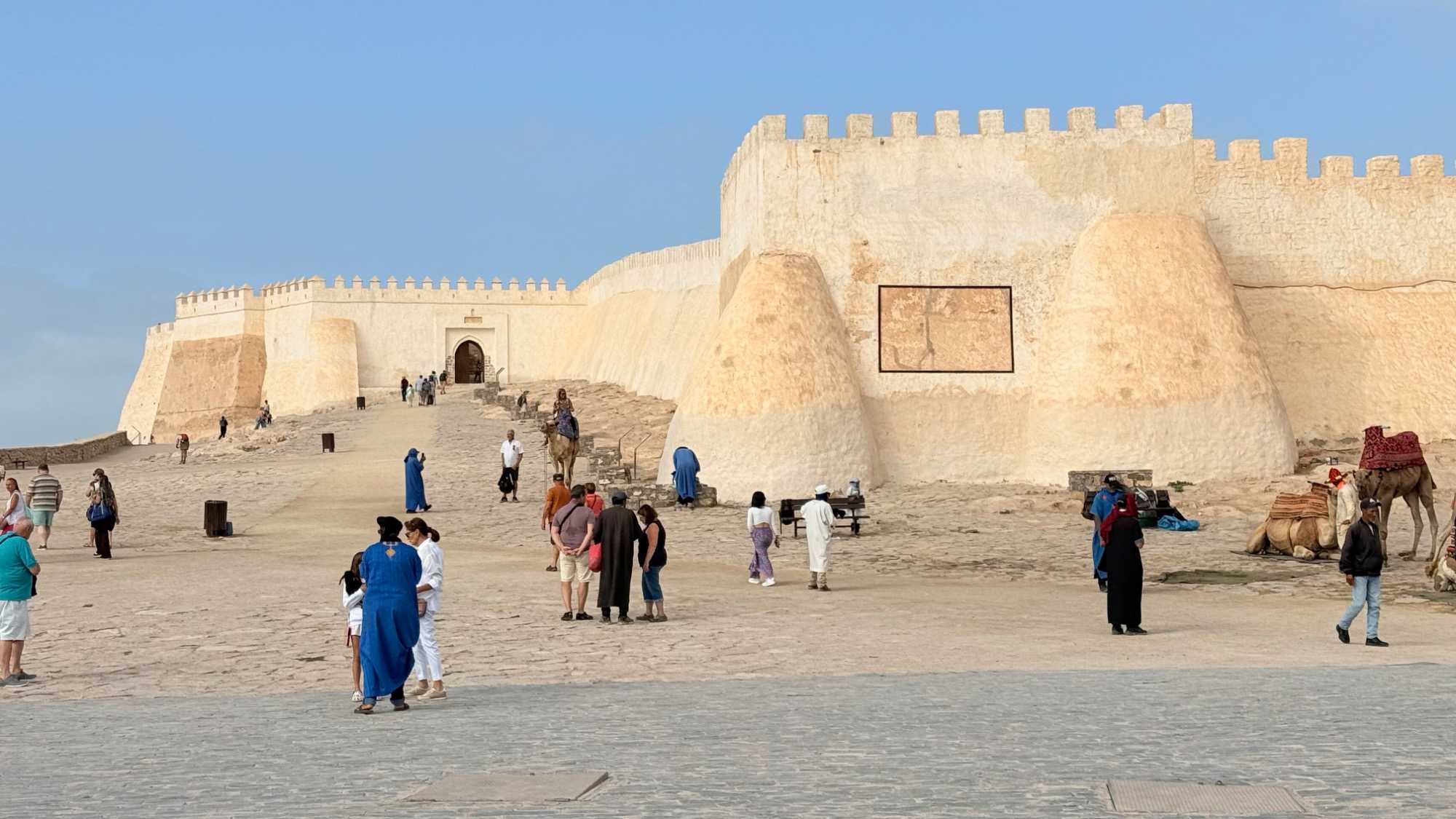 Ceux qui le souhaitent peuvent s’offrir une excursion facultative : peut-être une montée en téléphérique vers la Kasbah d’Agadir Oufella, perchée sur les hauteurs, vestige du passé qui veille sur la baie. De là-haut, la vue est grandiose : l’océan s’étend à perte de vue, et les lettres géantes « Dieu, la Patrie, le Roi » gravées sur la colline rappellent l’esprit d’un peuple debout.