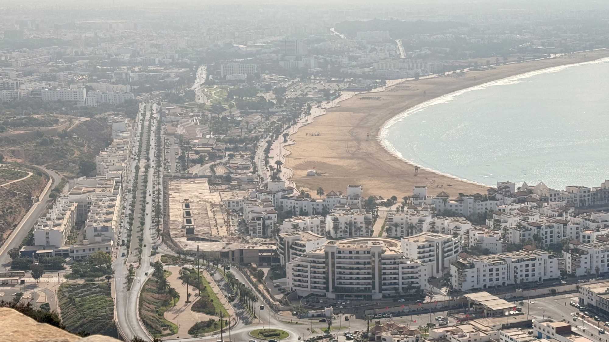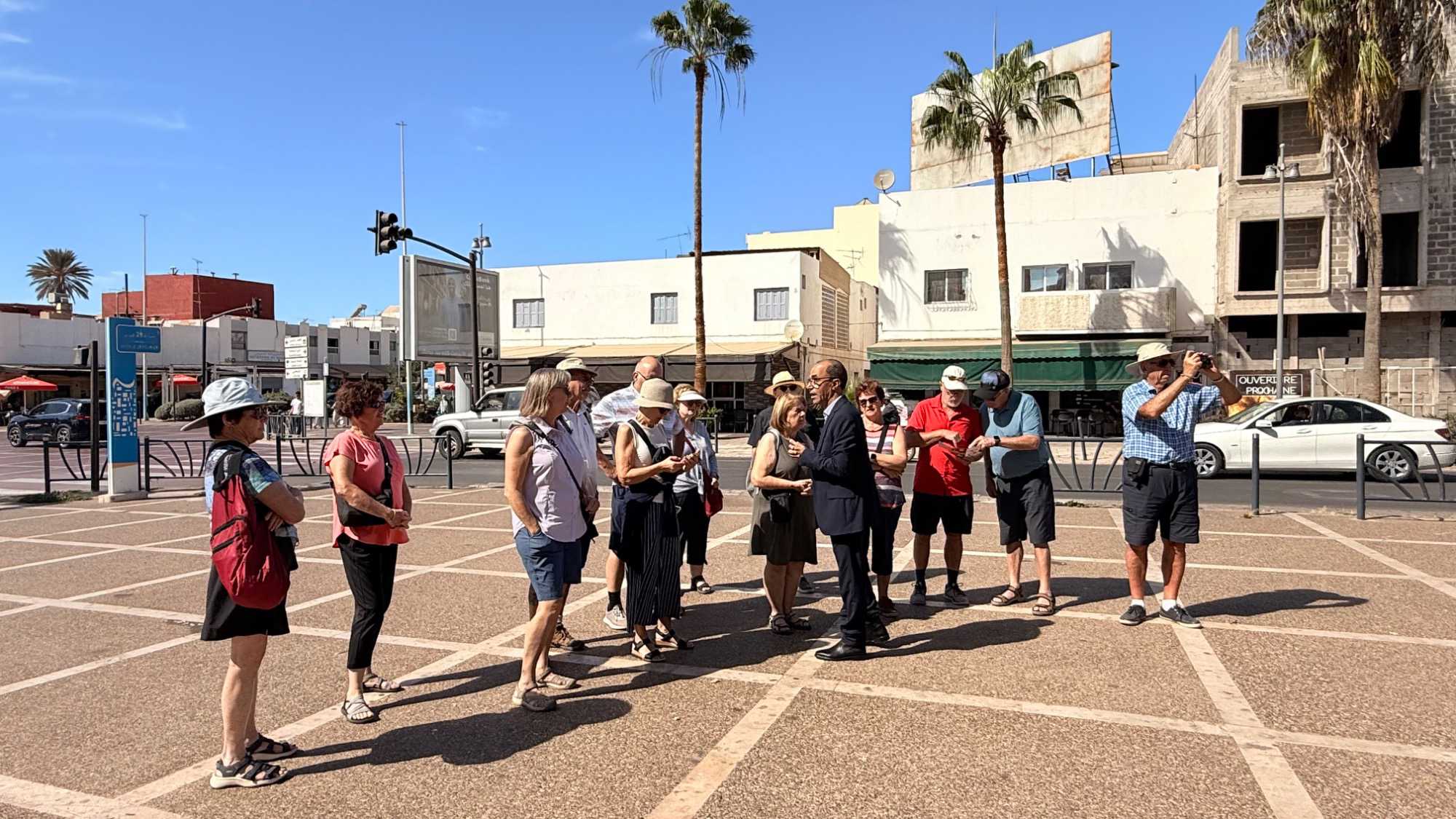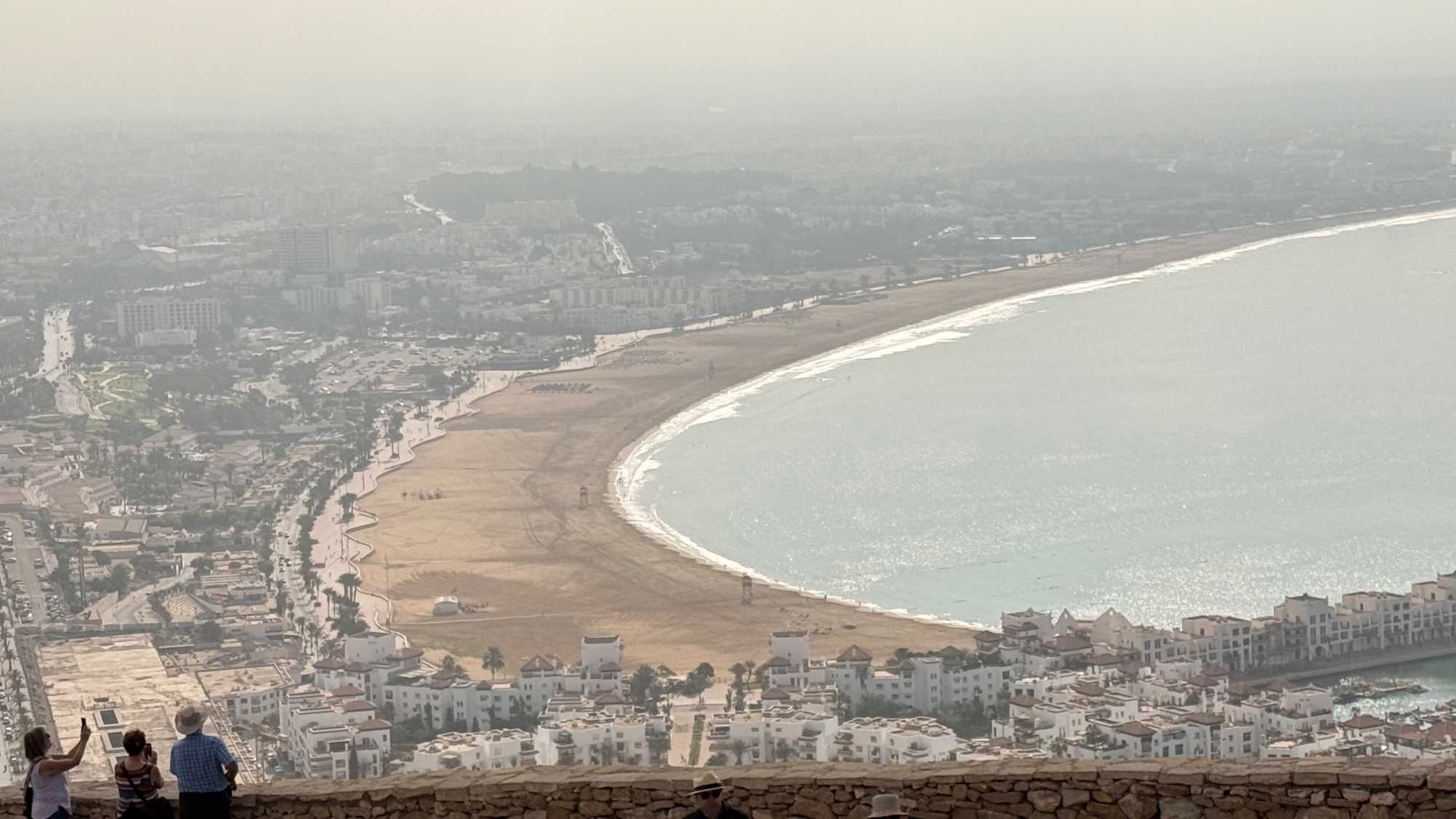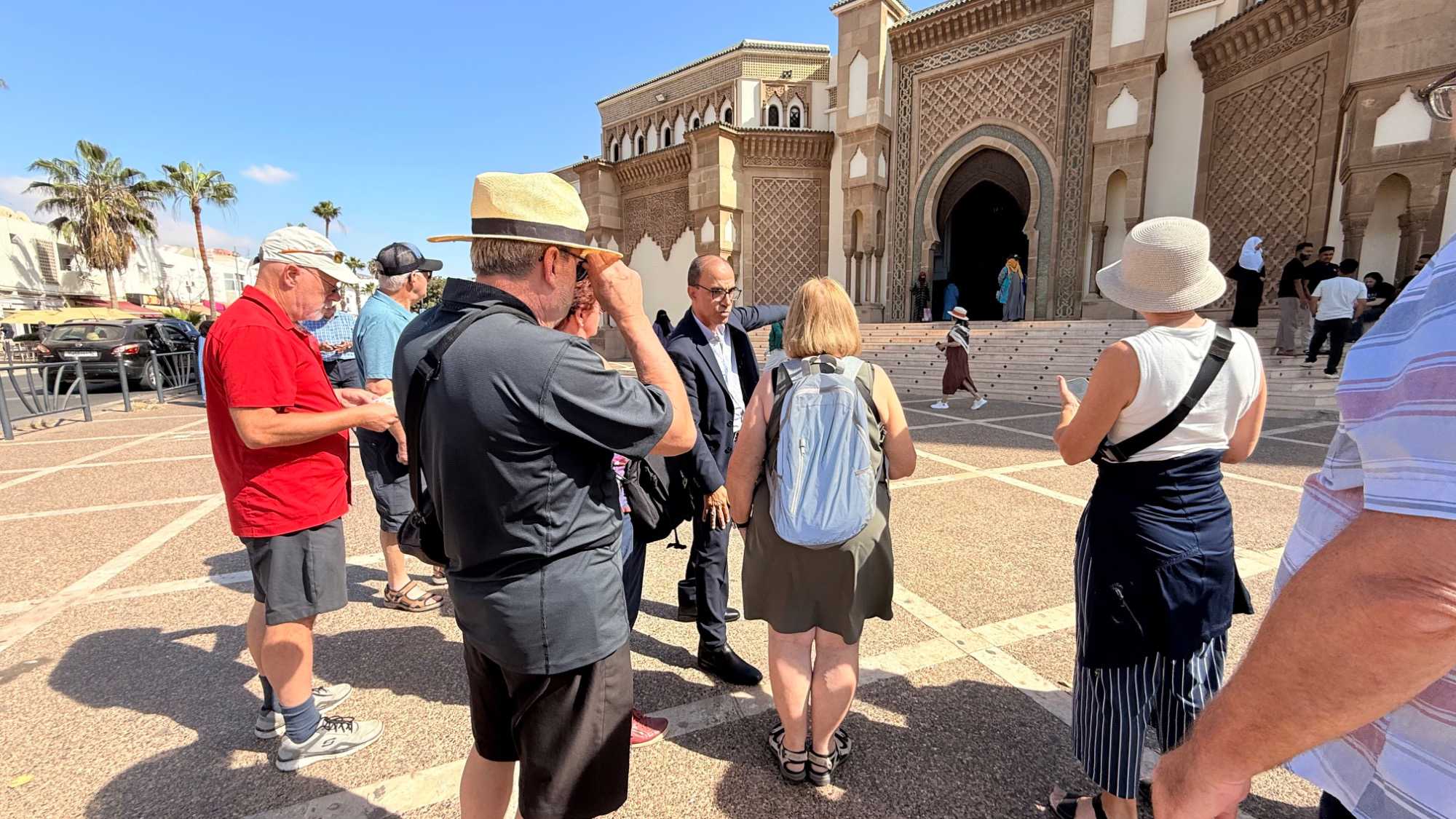 Le matin se lève sur Agadir, la ville blanche au bord de l’Atlantique. L’air salin entre par les fenêtres de l’hôtel, portant avec lui le murmure des vagues et le parfum des eucalyptus. Après le petit-déjeuner, la journée s’annonce libre, mais une bonne partie du groupe part pour un tour de ville avec notre guide Houcine une invitation à la flânerie, à la découverte ou simplement à la détente.