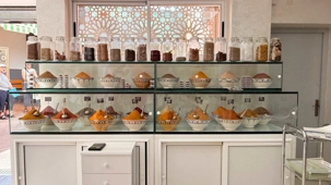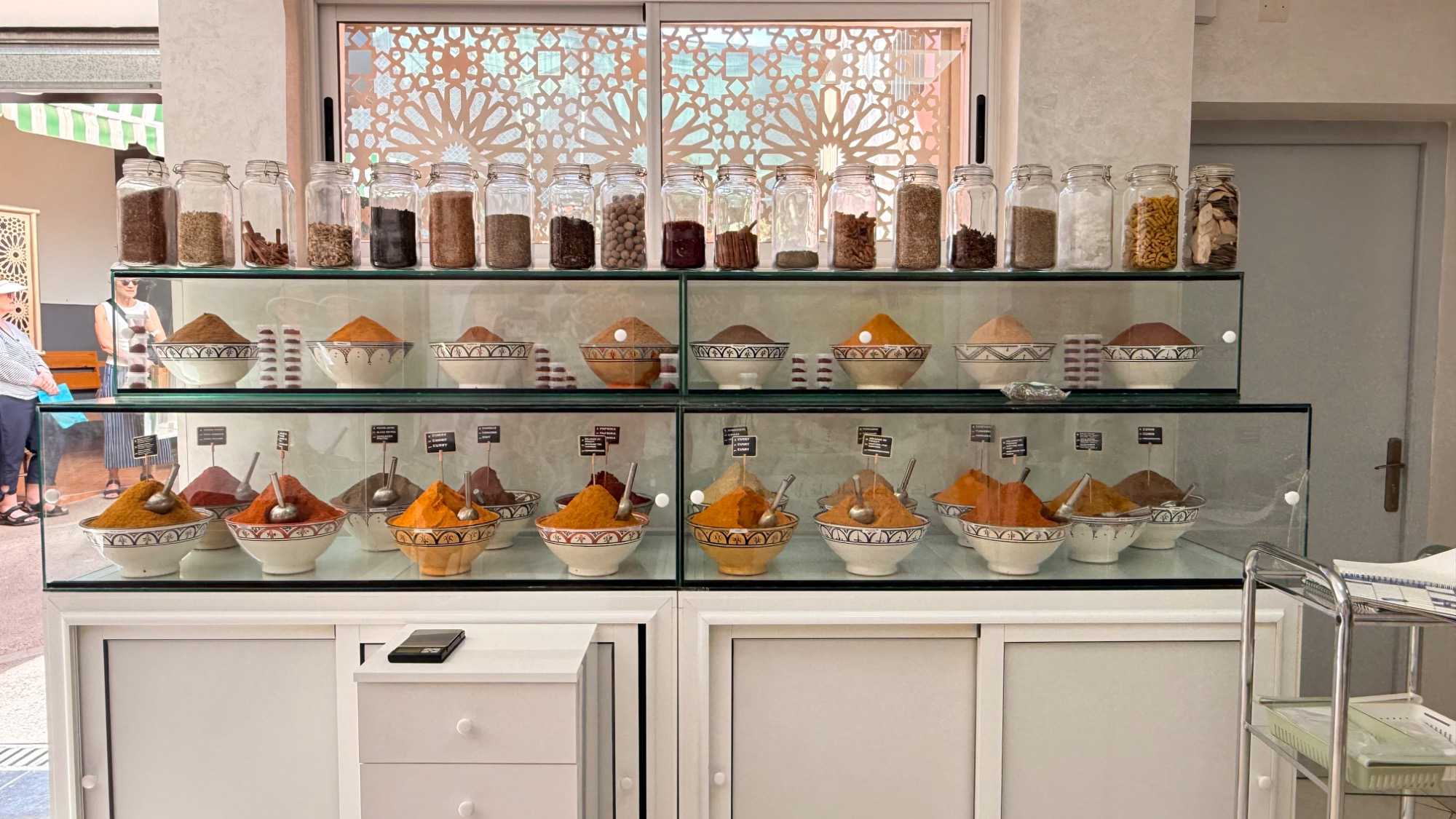 Aujourd’hui, Agadir rayonne de vie. Ses avenues larges et lumineuses tracent un contraste saisissant avec les médinas anciennes visitées plus au nord. Nous faisons une halte pour acheter les épices tant attendues depuis le premier jour du voyage : croyez-moi, nous allons cuisiner marocain à notre retour !