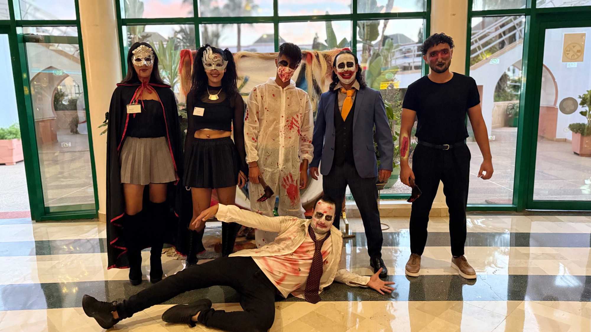 Le souper à l’hôtel réunit le groupe dans une ambiance conviviale. C’est Halloween : j’avais demandé à chacun de se déguiser pour l’occasion une réussite ! Tous ont participé : wow ! Après les consignes pour le départ, nous partageons un souper au restaurant italien de l’hôtel, avec quelques petites gâteries offertes par VLD. Le vin coule, les conversations s’animent, les rires résonnent.