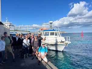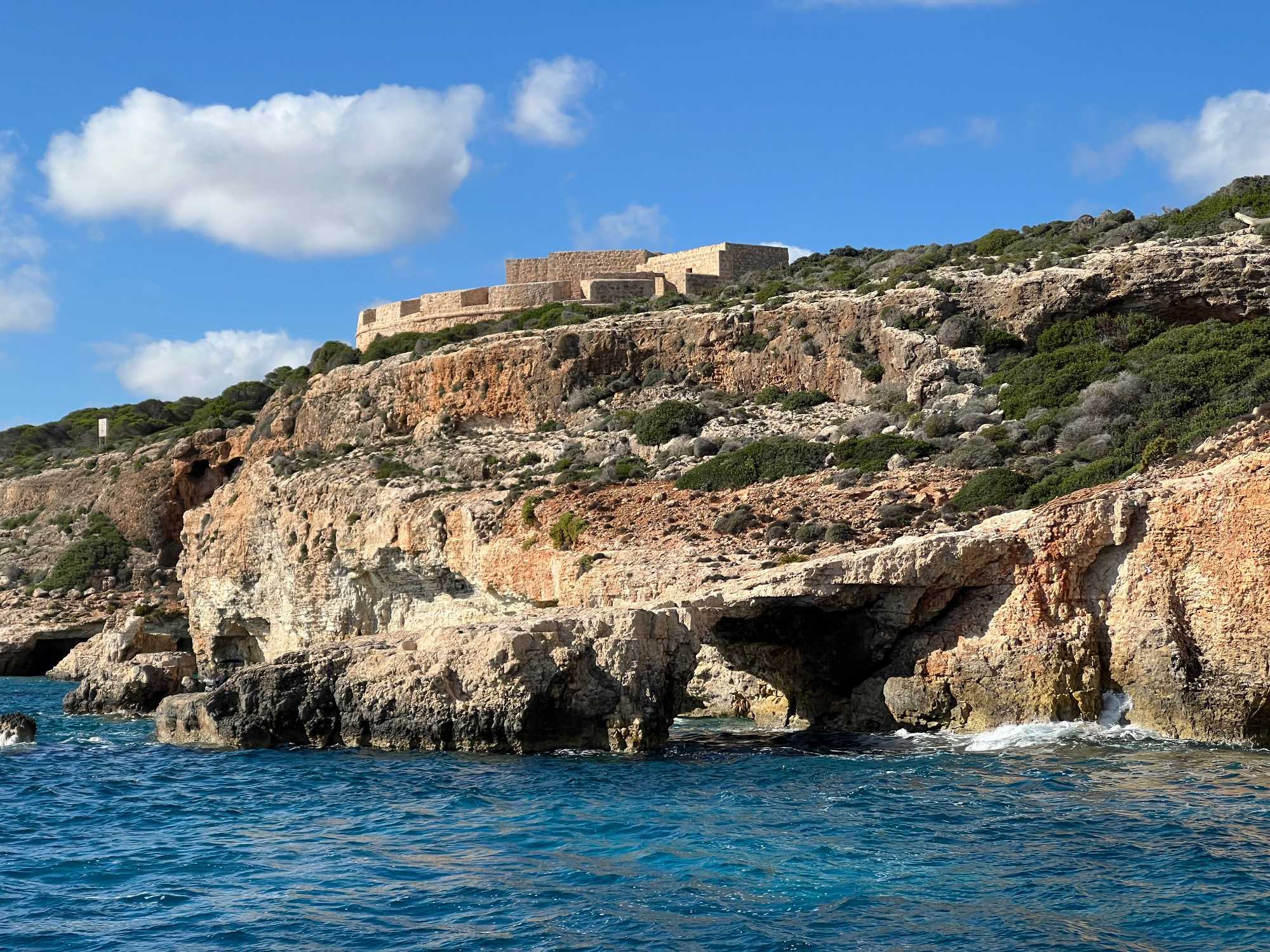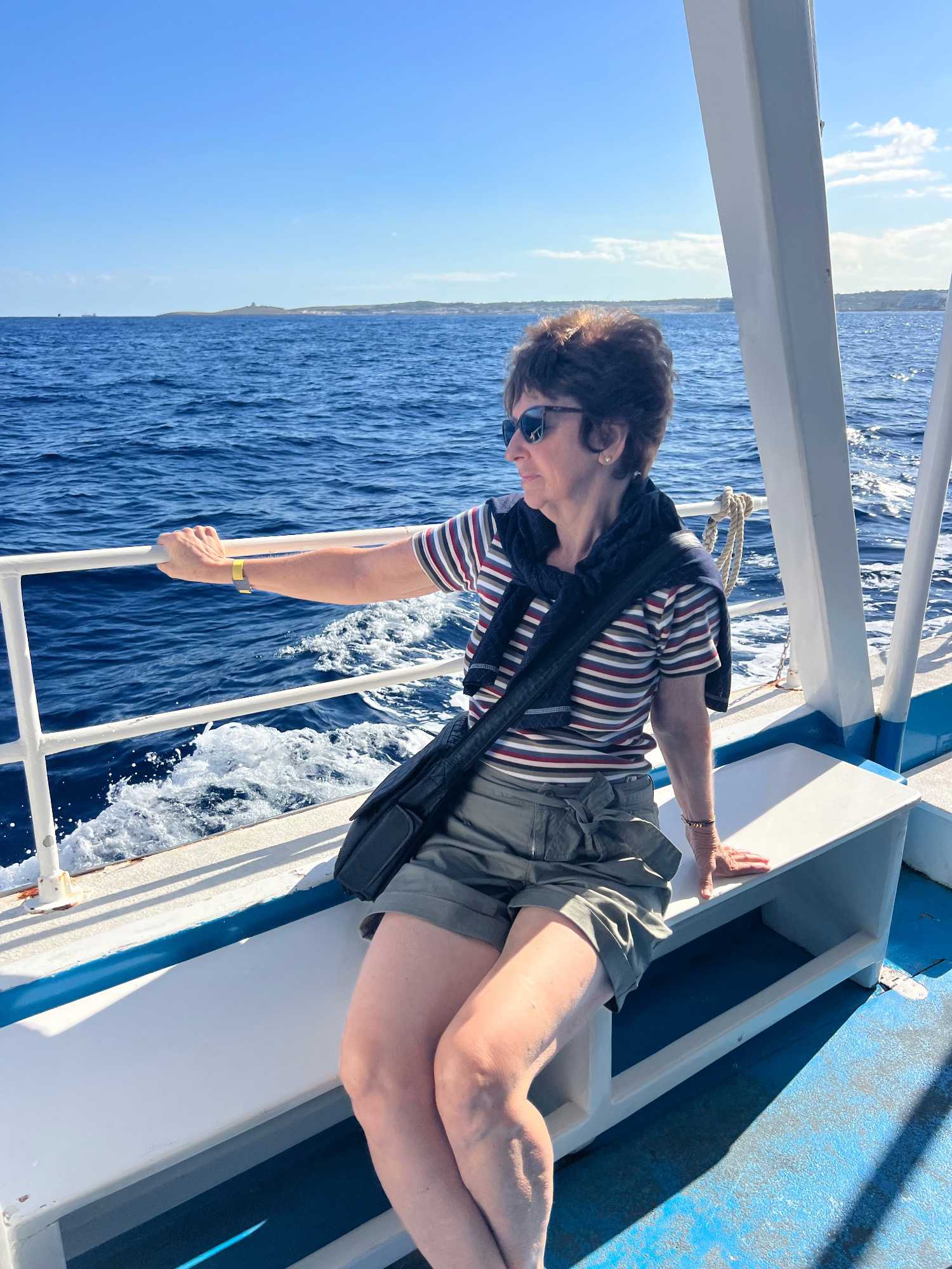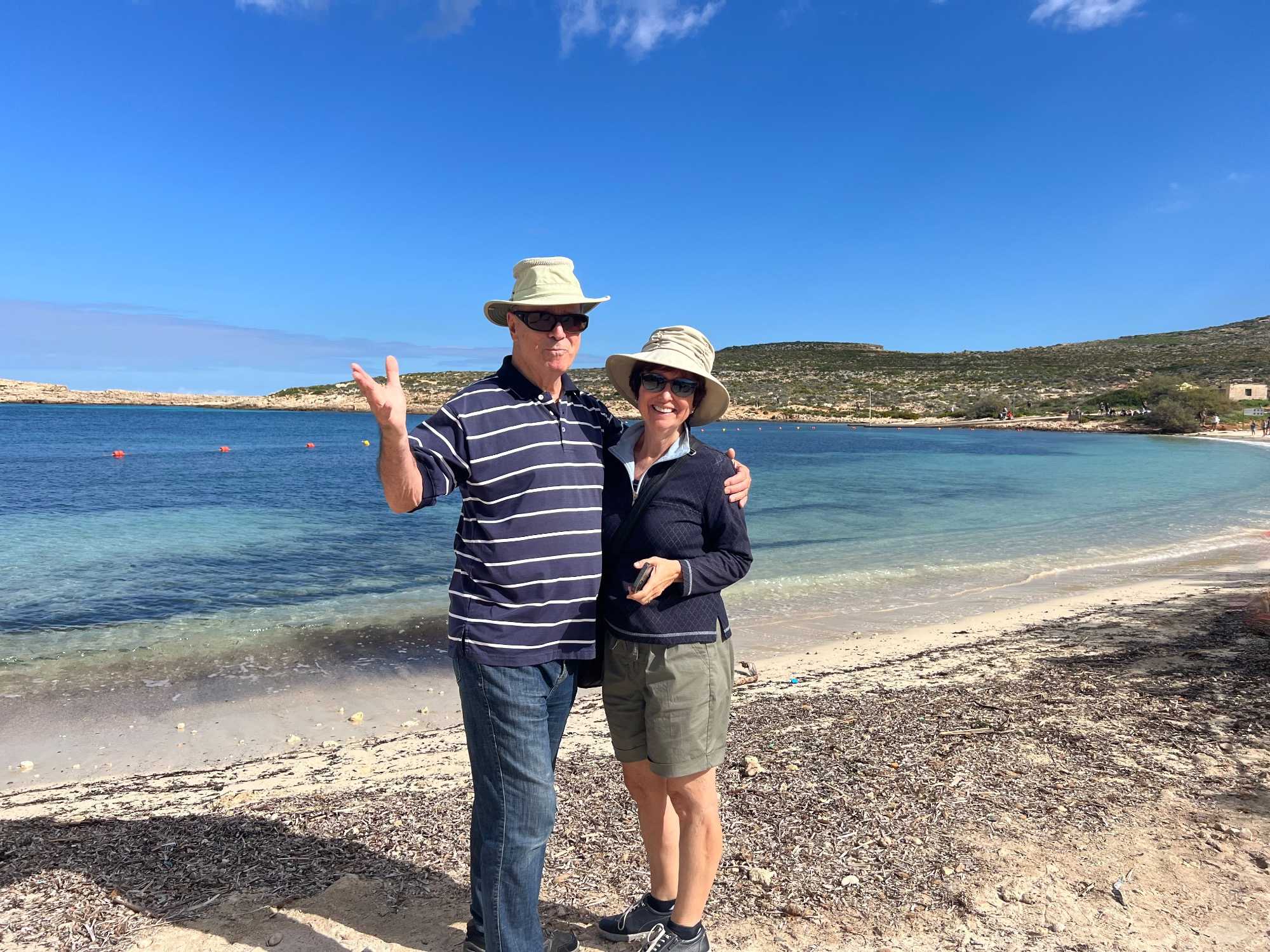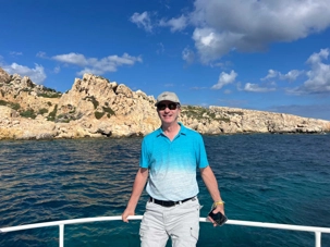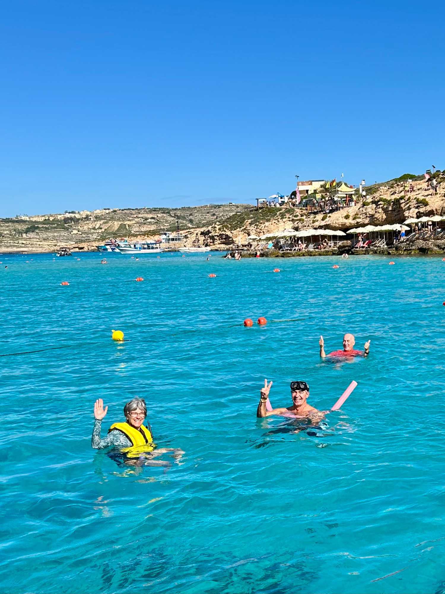 Nous sommes 20 à avoir pris une excursion pour nous rendre sur l’île de Comino. C’est avec l’aide de Chantal et de Pierre P que nous avons réussi à nous dénicher un bateau privatisé pour une durée de 4 heures. C’est sous un magnifique soleil que nous partons avec des taxis (Bolt) qui nous amènent en petits groupes jusqu’au port de Cirkewwa, où nous sommes allés hier.