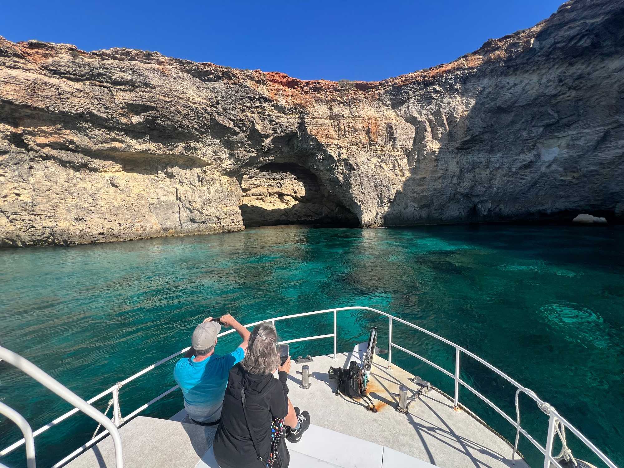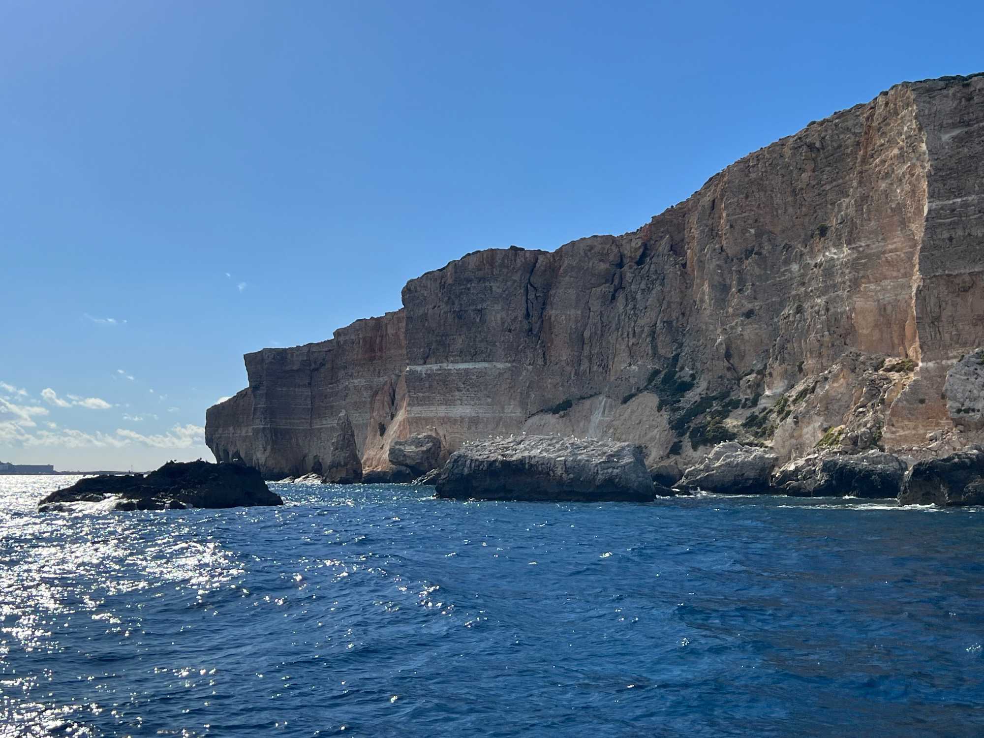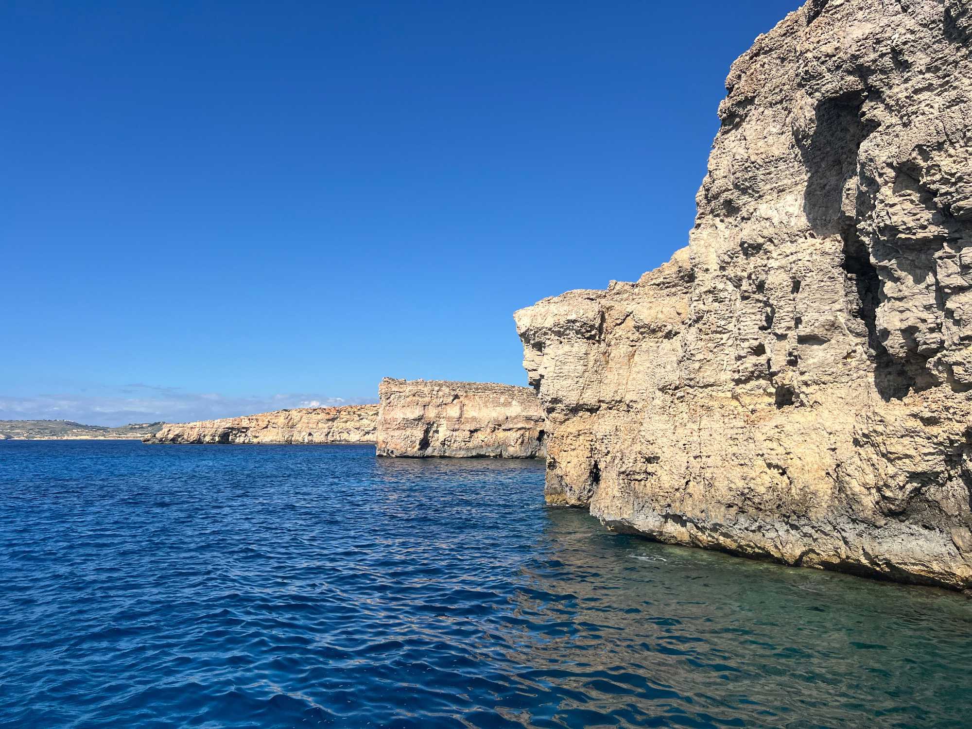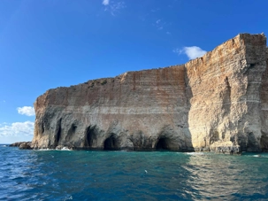Après cet arrêt, nous avons fait un tour panoramique des différentes baies et grottes. Nous avons même traversé vers l’île de Gozo pour voir de belles falaises.