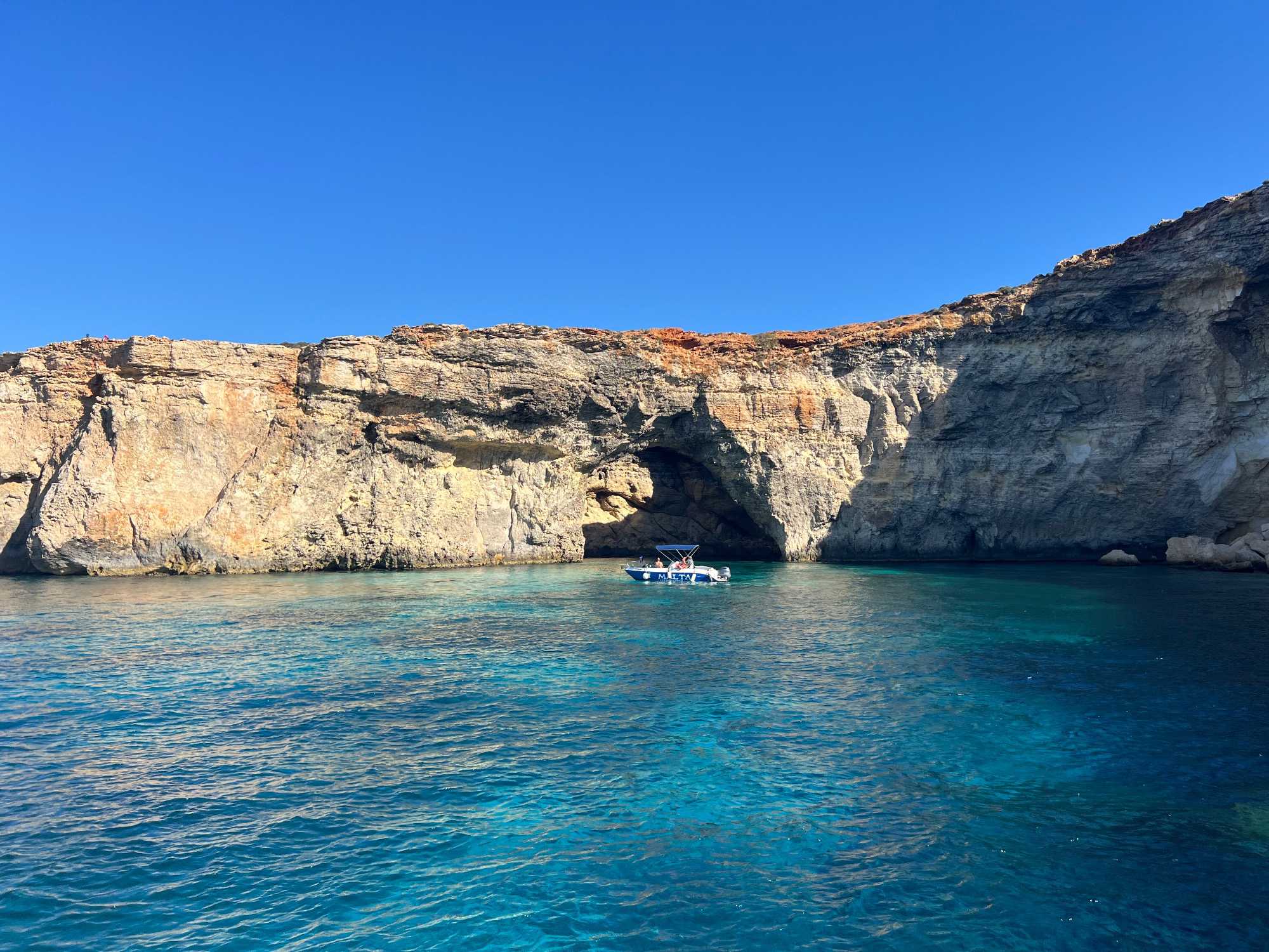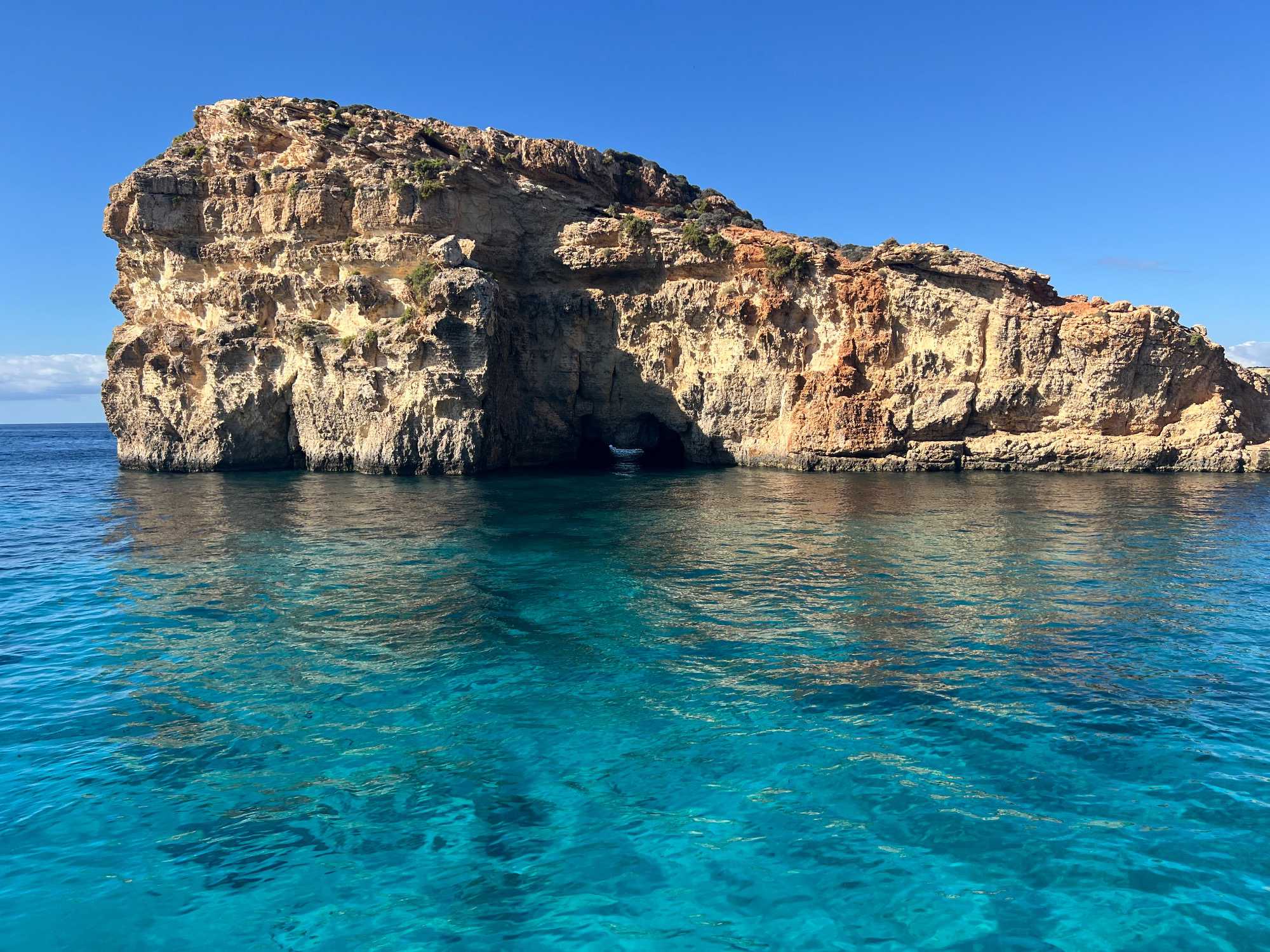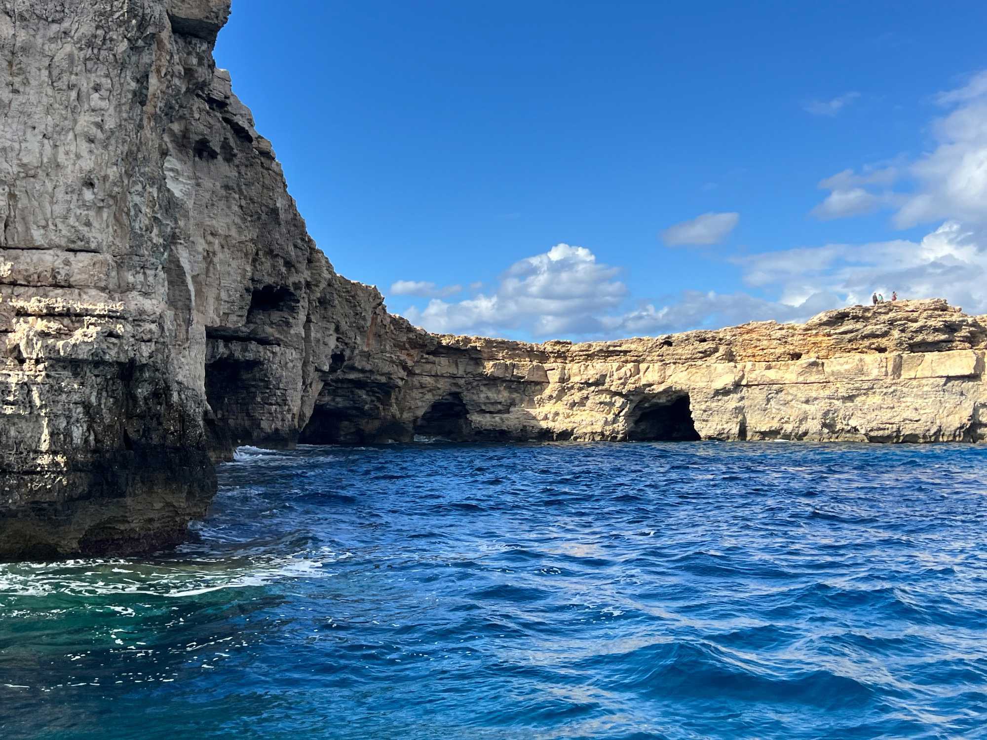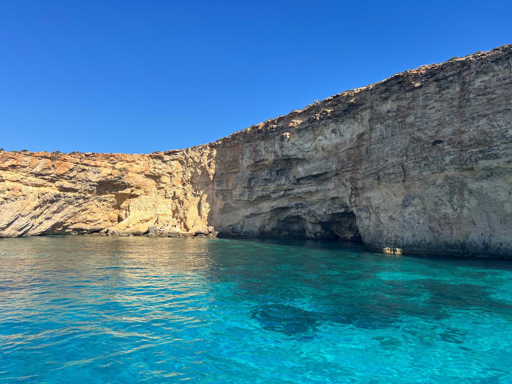 Après cet arrêt, nous avons fait un tour panoramique des différentes baies et grottes. Nous avons même traversé vers l’île de Gozo pour voir de belles falaises.