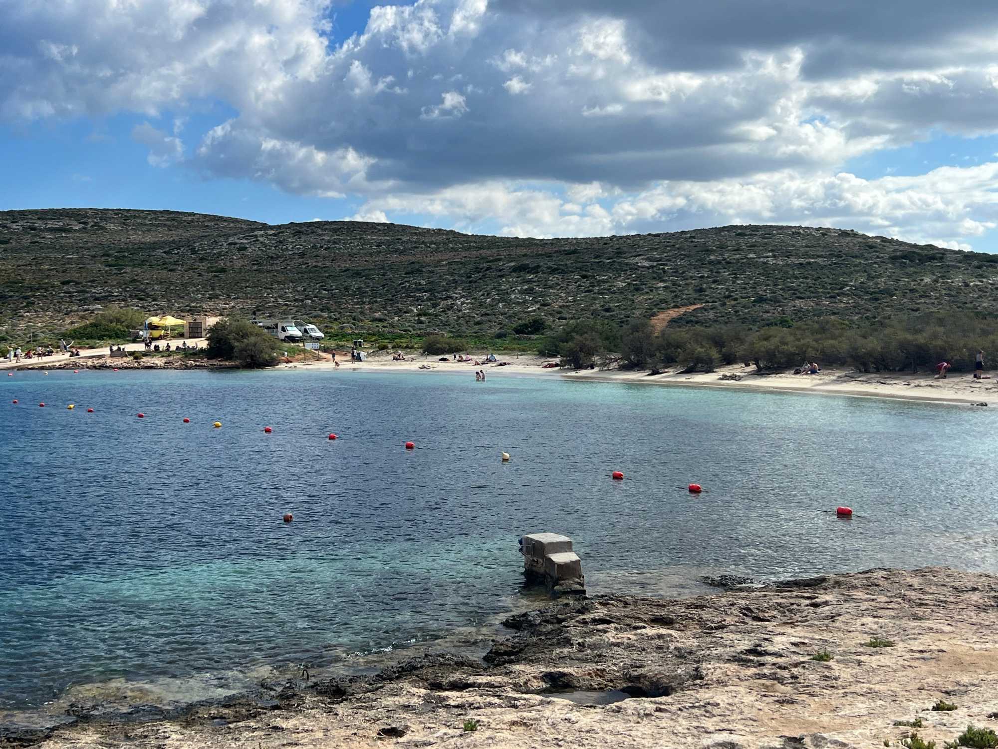 Une fois tous à bord, nous poursuivons le tour de l’île. Nous arrivons dans la baie de Santa Marija où nous débarquons. On aurait pu se baigner à partir de la plage mais tous ont préféré faire une petite randonnée d’environ 40 minutes.