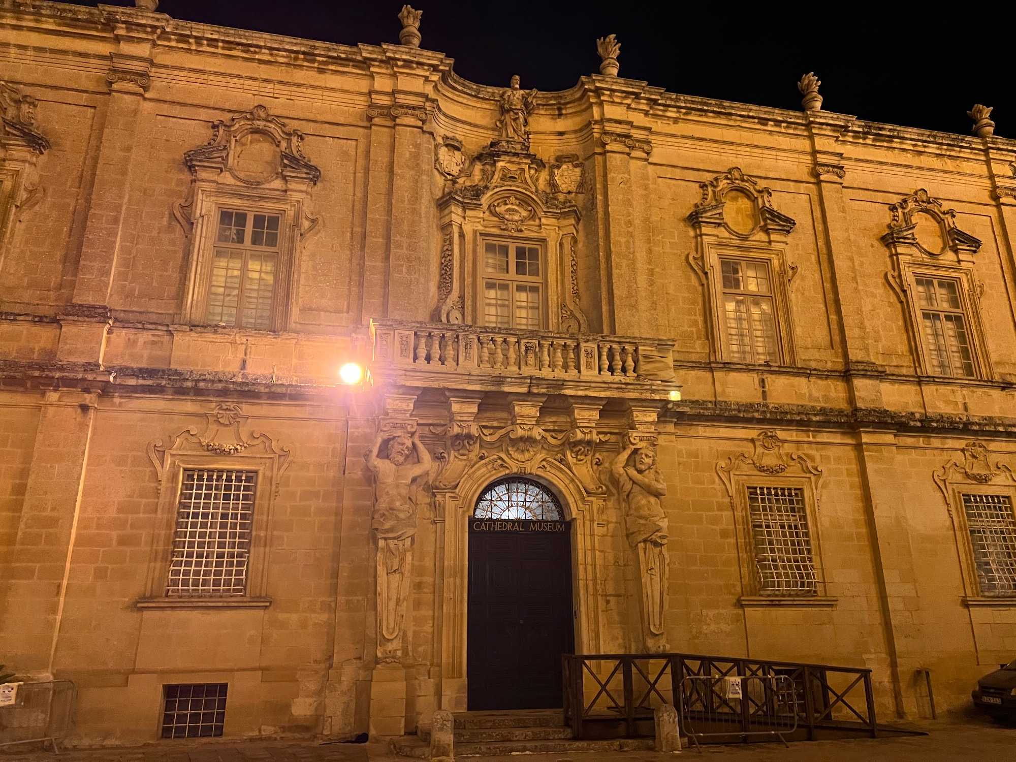 Notre guide nous fait le bonheur de nous amener dans l’ancienne capitale Mdina pour nous y promener seuls, à la tombée de la nuit. Cette « ville », avec ses 250 habitants, a le surnom de « Cité silencieuse ». Quelle sensation de bien-être de s’y promener. Il ne fait pas très chaud par contre, la température ressentie doit être aux environs de 16 degrés. Côté météo, nous avons été chanceux aujourd’hui: à notre hôtel, pas de pluie, alors qu’à La Valette, tout était mouillé par terre. Nous nous sommes sauvés de l’averse!