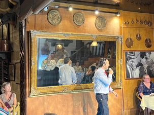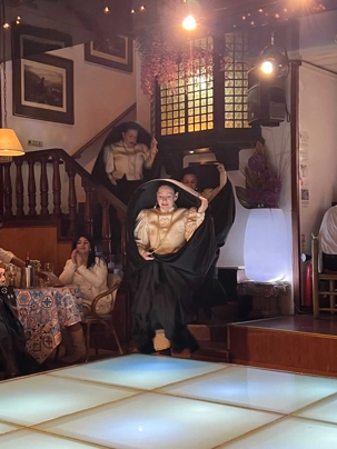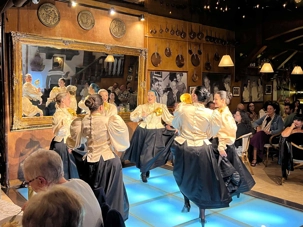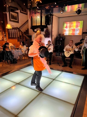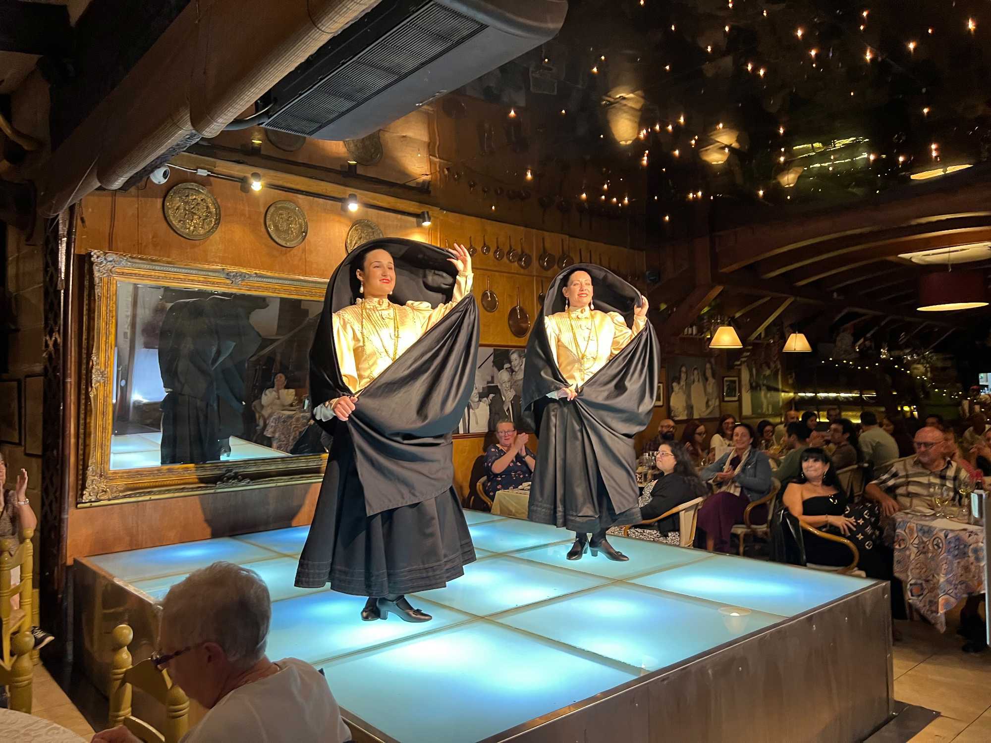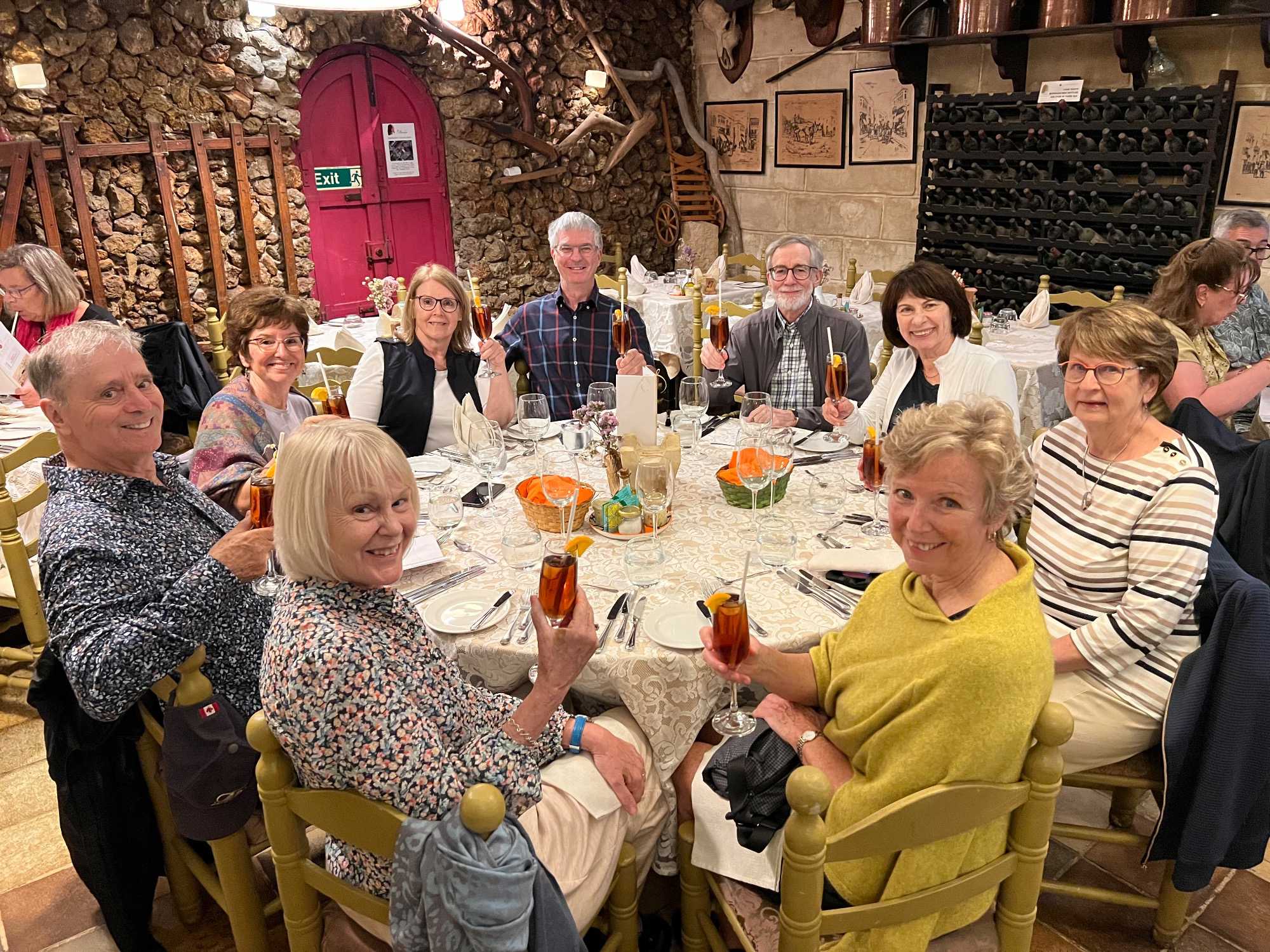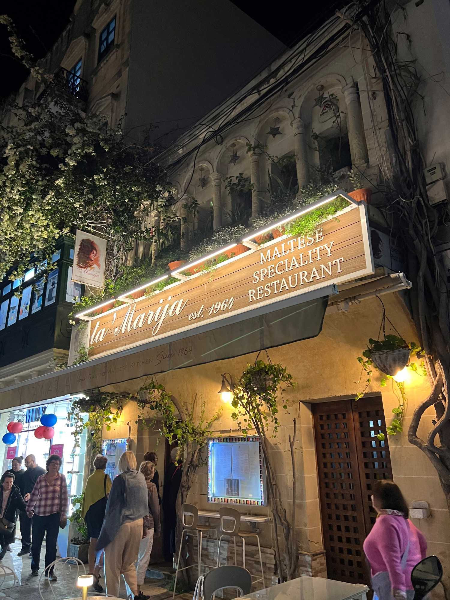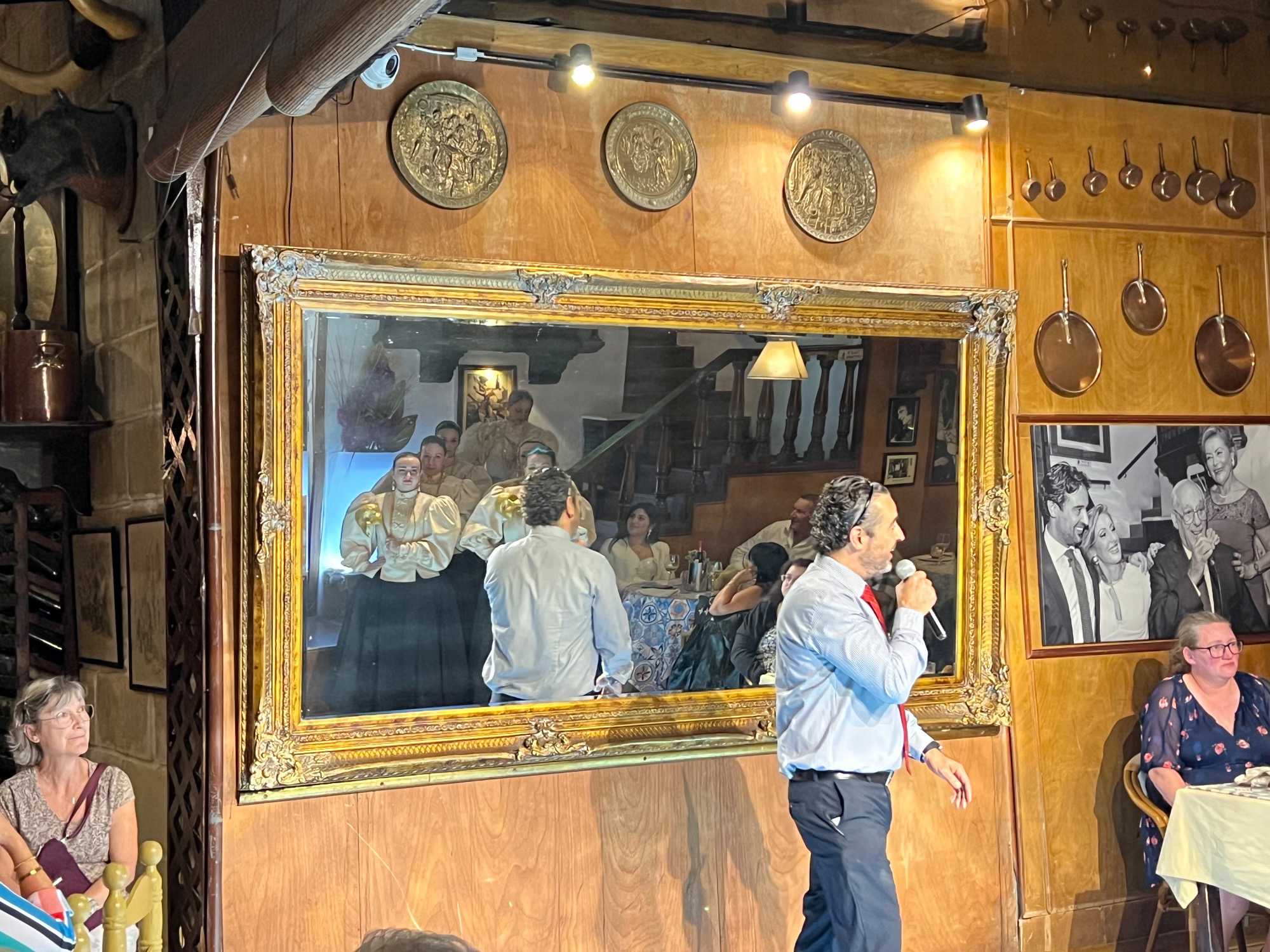Puis le clou de notre soirée se passait au restaurant Ta Marija. Le propriétaire de ce restaurant familial nous accueille (en français) dès notre arrivée. J’offre à tous un apéritif local fait à partir de liqueur de figue de barbarie. C’est surprenant, et très bon! Nous avons choisi pour nos voyageurs le menu de dégustations maltaises. C’est avec la musique de deux guitaristes que nous prenons notre repas. L’ambiance est à la fête, surtout avec une des serveuses du restaurant qui est très drôle. Après notre dessert, la soirée folklorique commence. Le spectacle de 6 danseuses nous entrainent dans l'histoire joveuse de Malte. Mais ce qui nous fait le plus rire, c’est de voir notre cher Léandre filmer la danse en suivant le rythme… ceux qui vont voir ses films vont bouger sans le vouloir! 🤪
