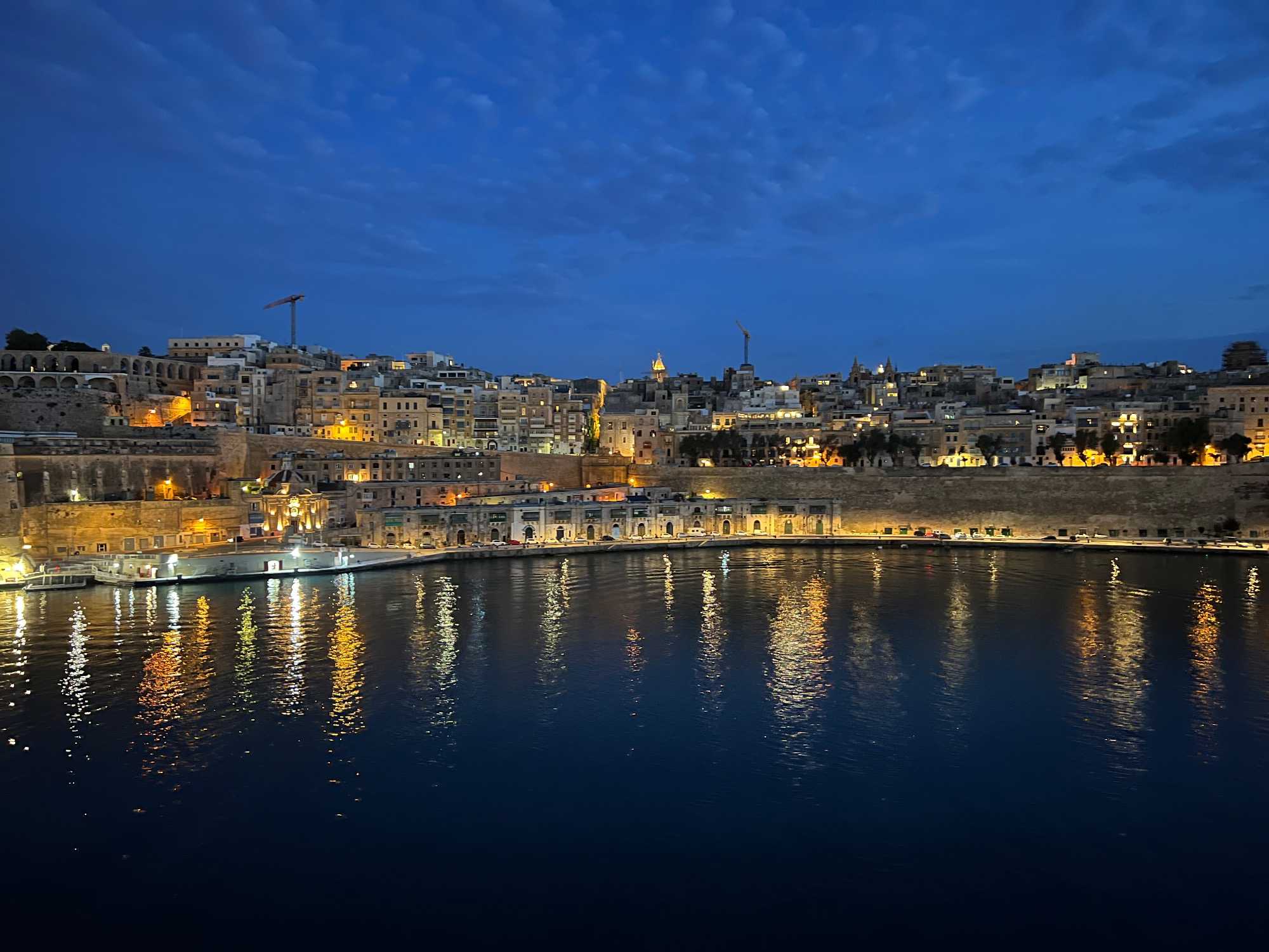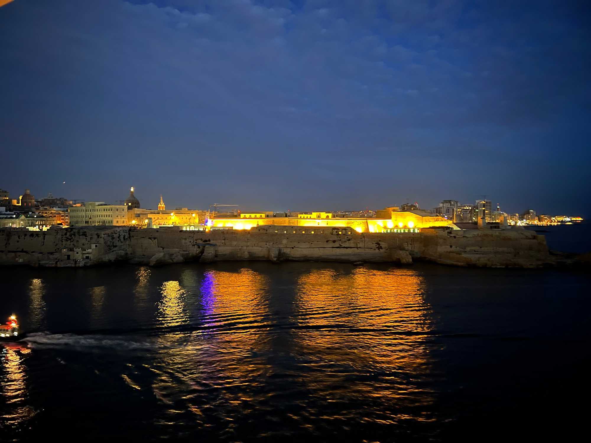 Par la suite, nous embarquons dans le bus pour un tour panoramique de Malte. On contourne les remparts et allons vers Sliema pour prendre des photos de La Valette. Je vous ai joint des photos que j’avais pris lors d’un premier voyage à La Valette où nous arrivions au petit matin avec les lumières du port, c’est très joli.