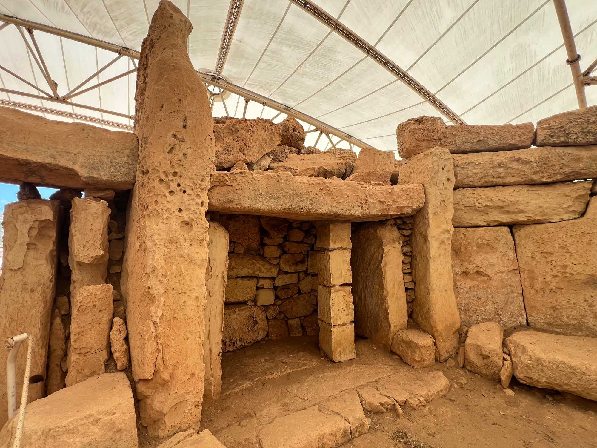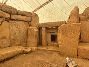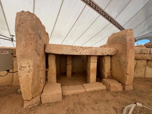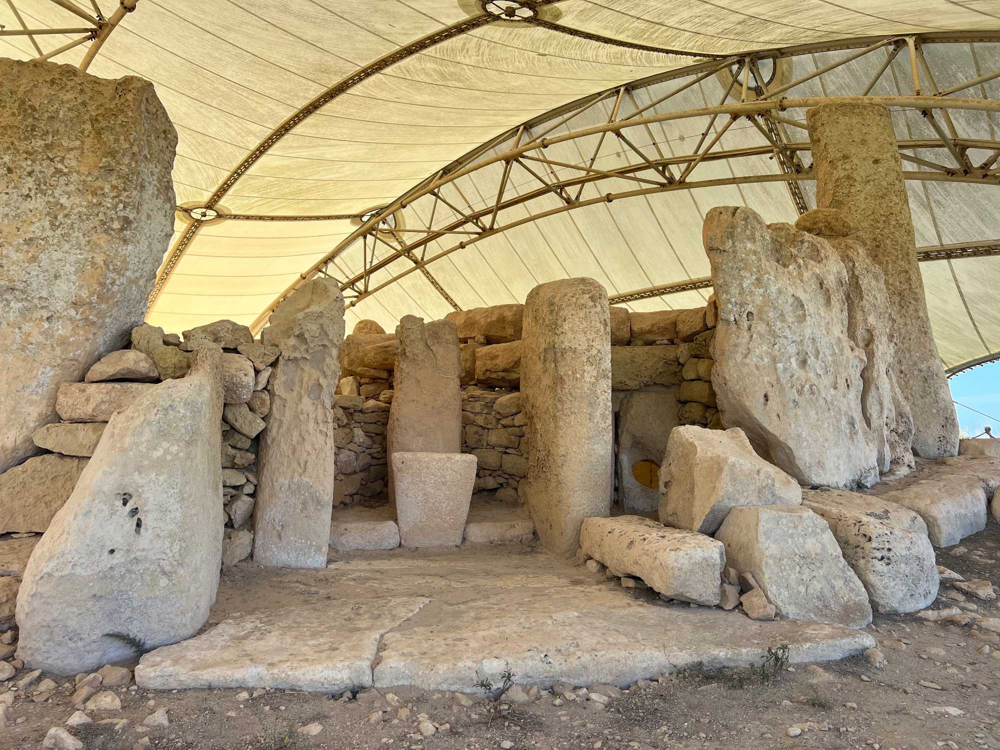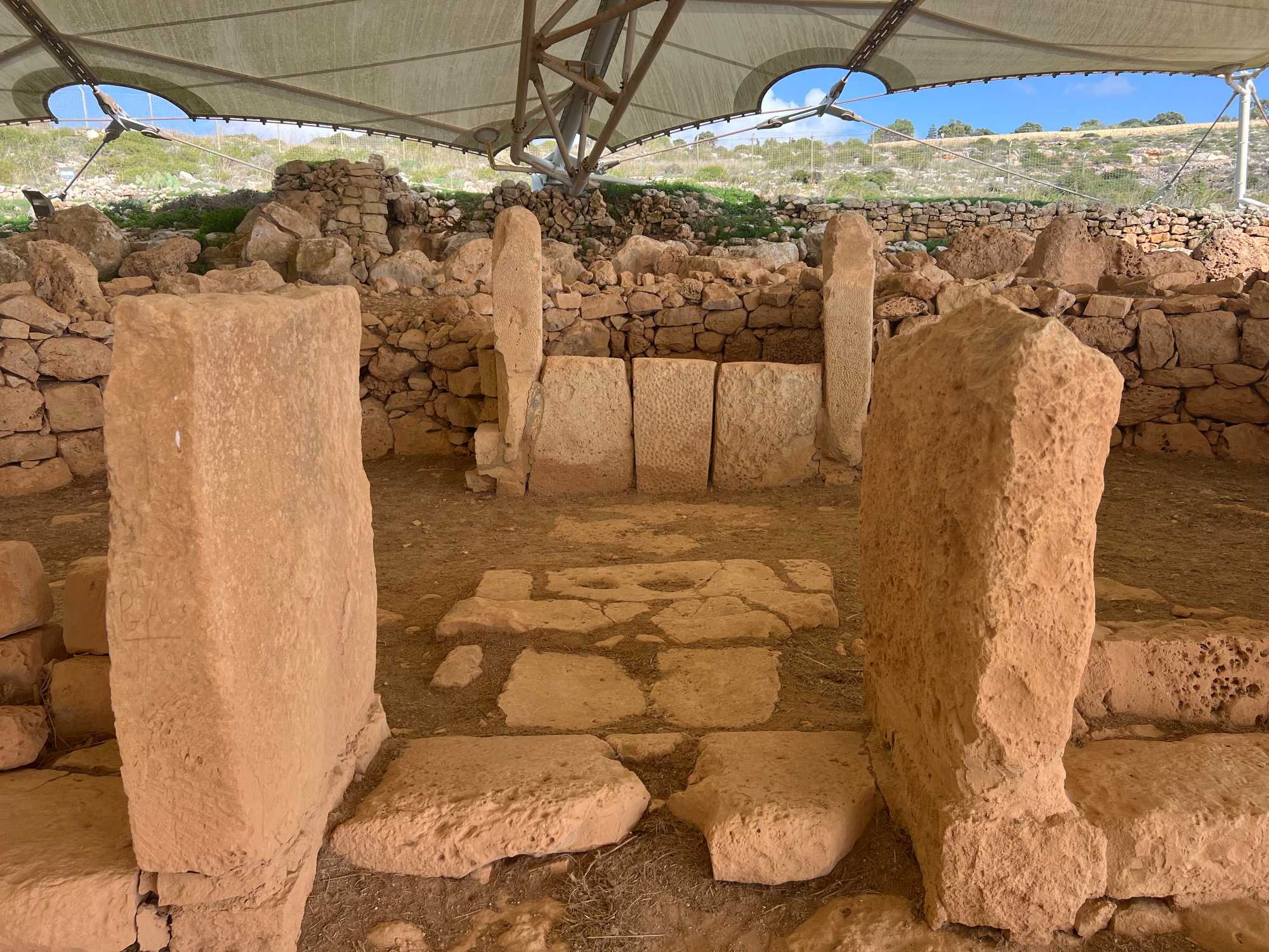 Édifiés sur un site sauvage avec la mer pour horizon, ces deux ensembles de temples mégalithiques sont les plus spectaculaires de Malte, inscrits tous deux au patrimoine mondial de l'Unesco. Au centre des visiteurs, on nous présente un vidéo qui nous donne une bonne idée du site. Une maquette animée dévoile le phénomène du solstice d'été: chaque 21 juin, les rayons du soleil entrent exactement dans le trou d'une pierre percée du temple. Le système de construction - au moyen de boules de pierre qui roulent sur elles-mêmes - est également expliqué.