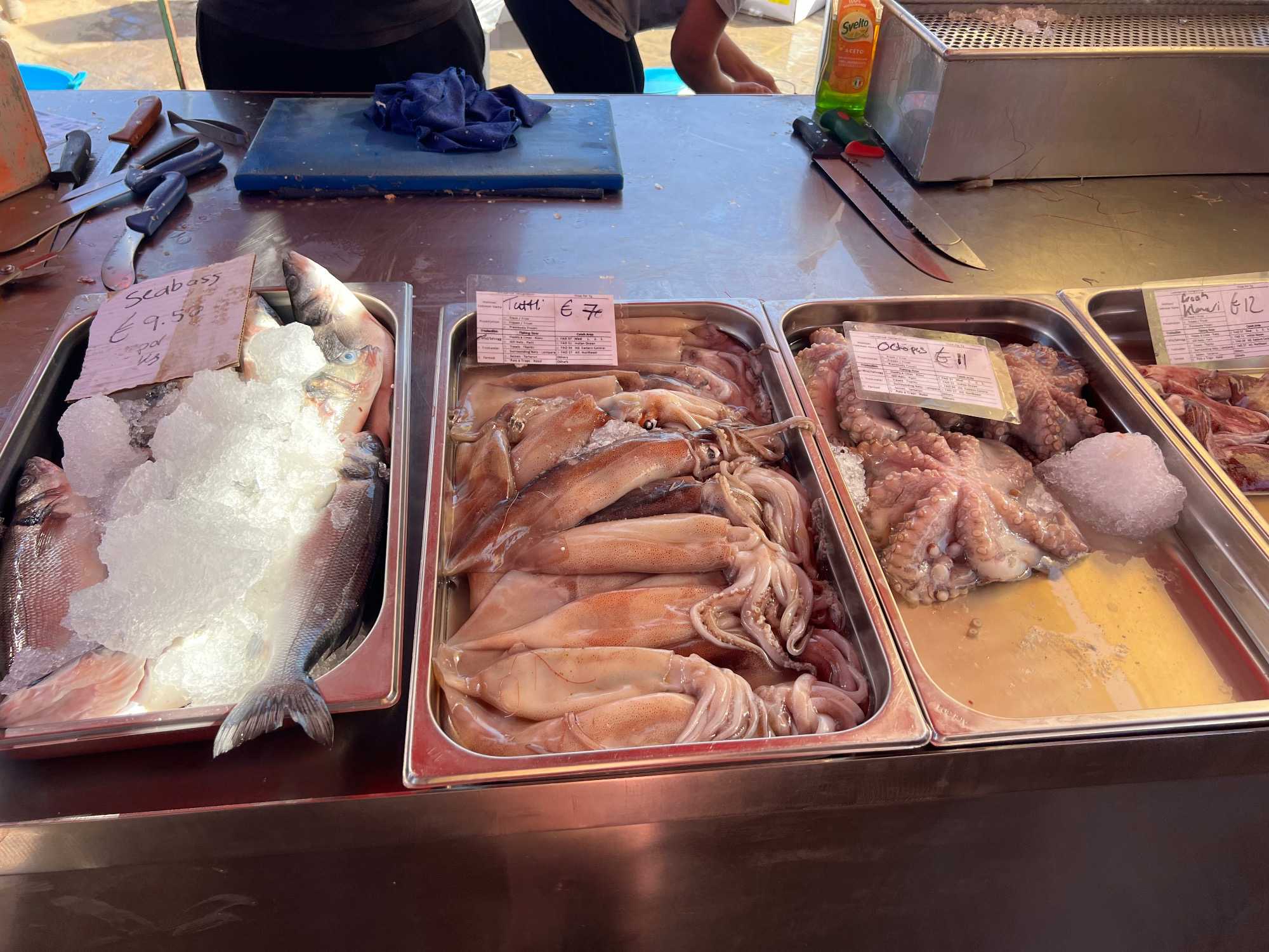 Après cette visite très instructive, nous nous dirigeons vers Marsaxlokk, pour y voir, entre autre, le marché du dimanche. Nous avons juste un peu le temps de nous promener à travers les divers étals: poissons, fruits et légumes, souvenirs, vêtements, décoration de Noël, … il y a de tout!