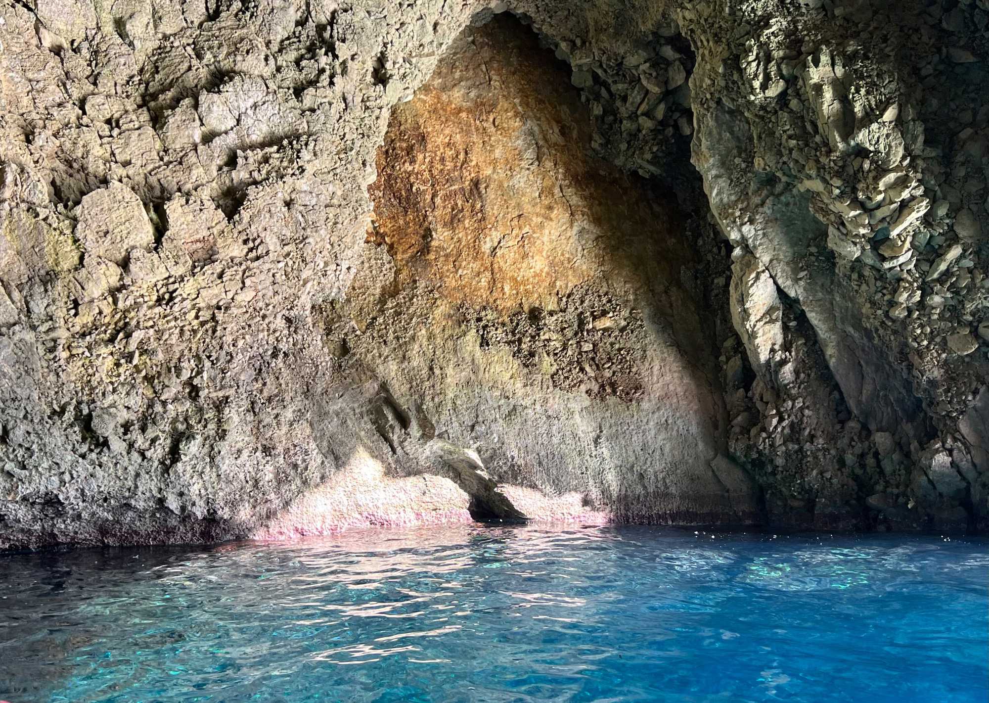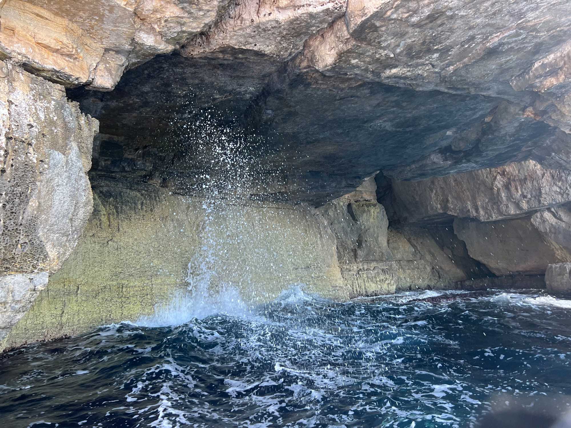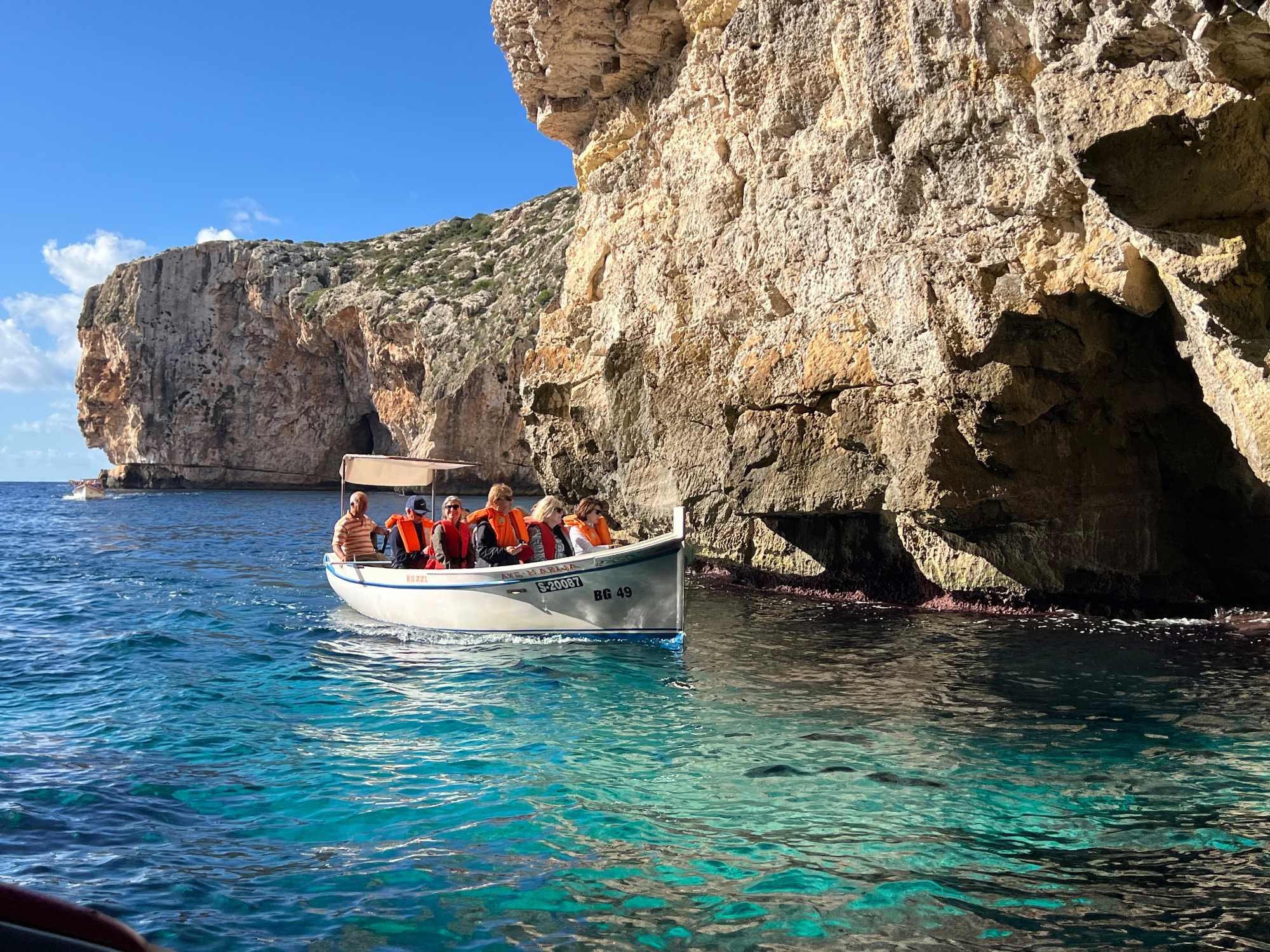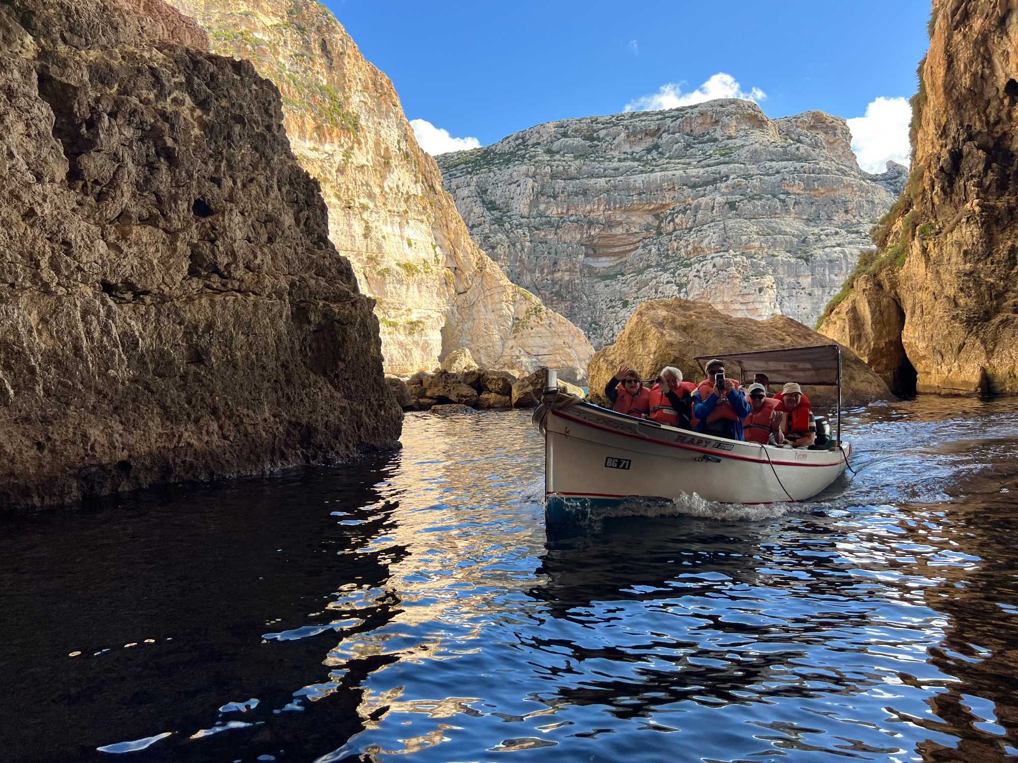 La grotte bleue est une immense arche naturelle. Longue de 43m et plongeant jusqu’à 40m sous la mer, elle est enchevêtrée avec six autres grottes successives. On doit son nom à des soldats britanniques basés à Malte dans les années 50 qui trouvaient qu’elle ressemblait à la Grotta Azzura de l’île de Capri.