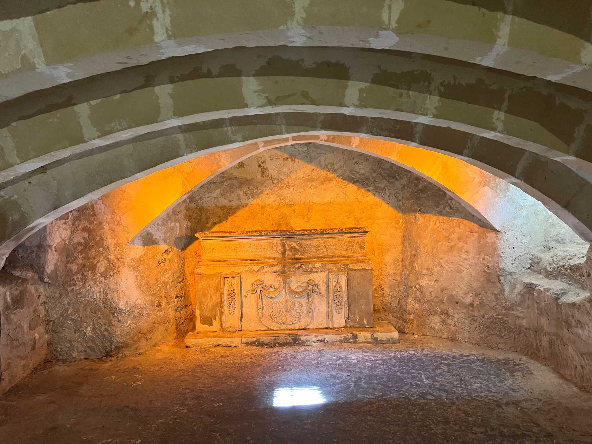 Gertrude, notre guide, nous amène dans les dédales des rues de la vieille ville. Étroites, elles sont pour plusieurs piétonnes. Nous avons un peu de temps libre et pour ceux qui le désirent, notre guide nous amène dans des catacombes. Nous descendons des marches étroites jusqu’au niveau des caveaux. Il a fallu en creuser de la pierre pour faire ces tombeaux!