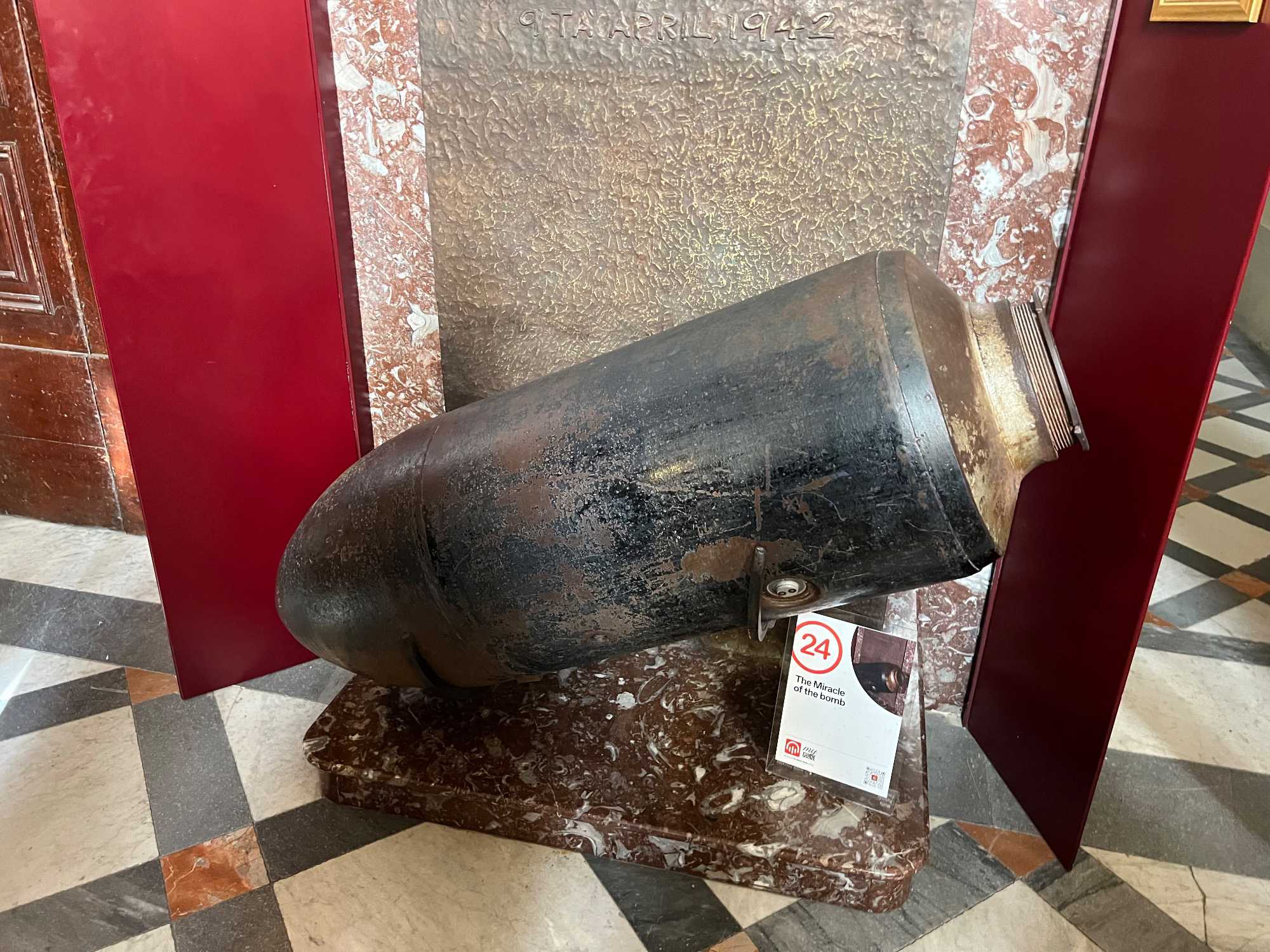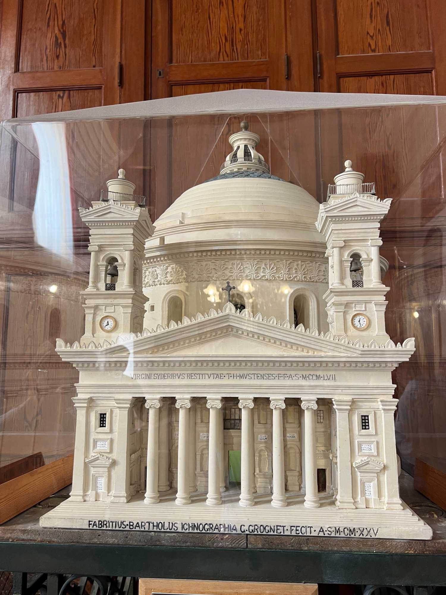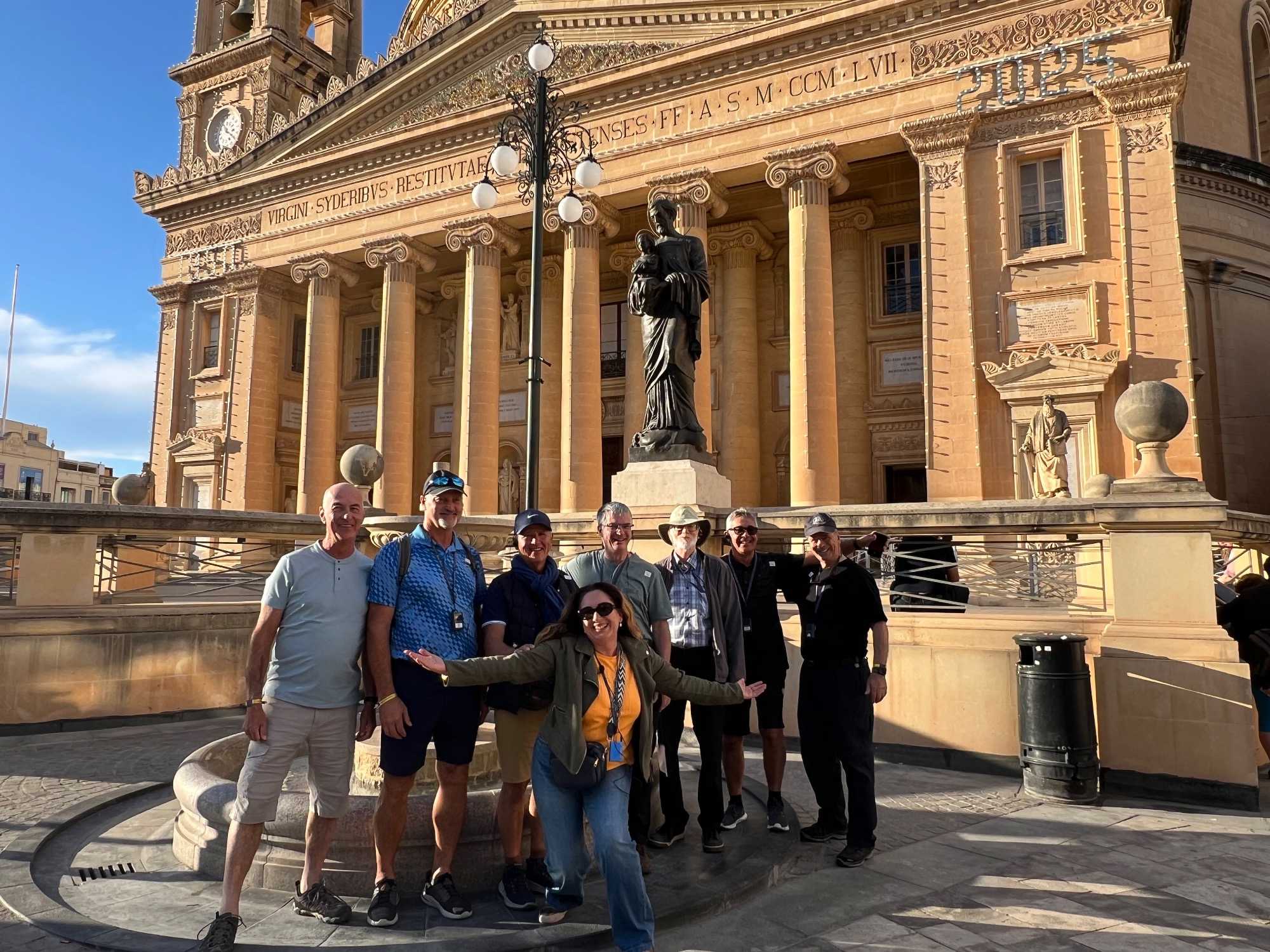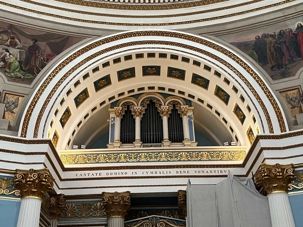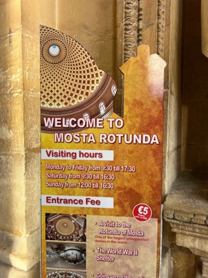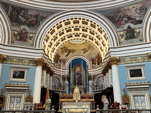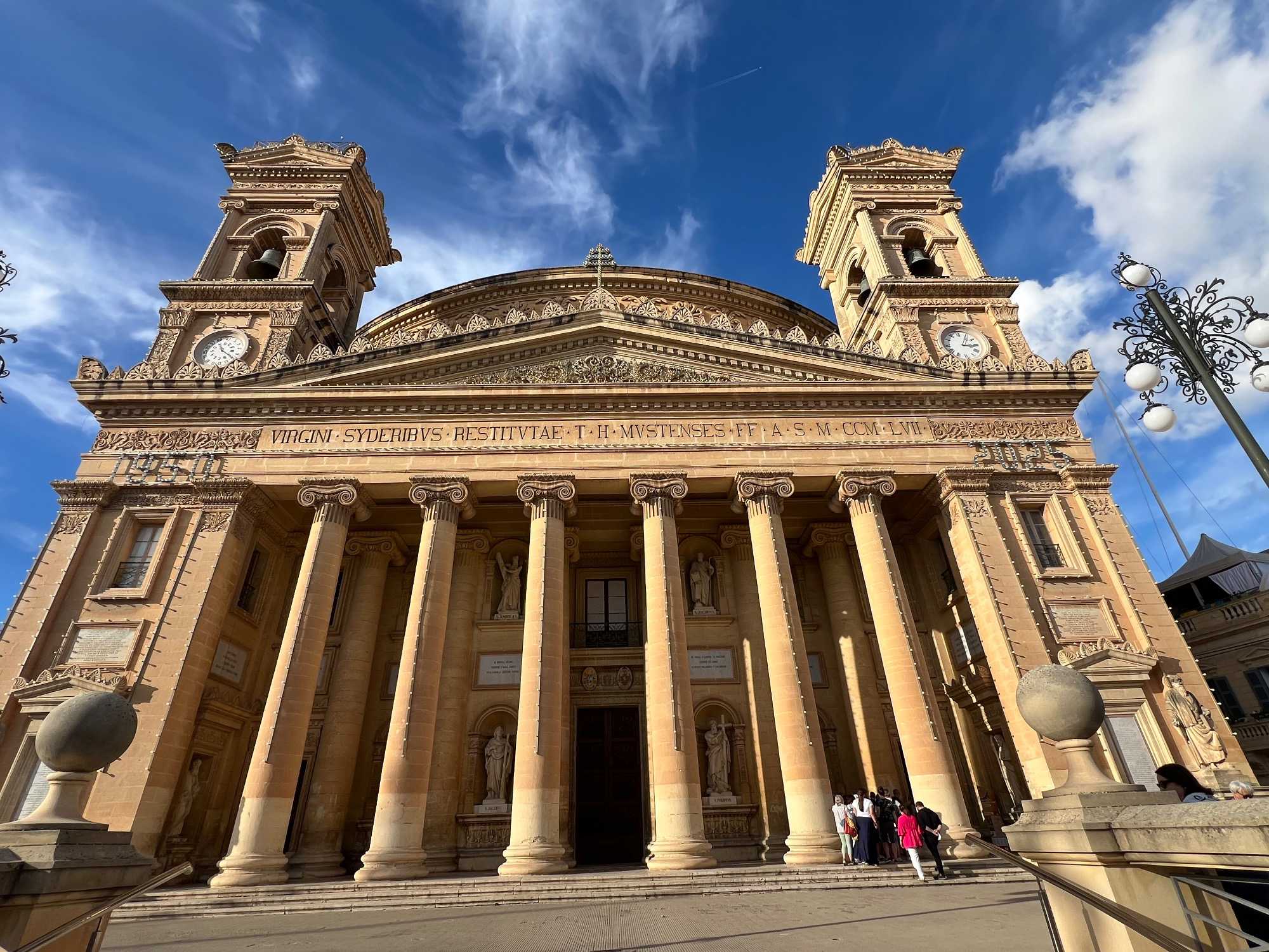 Par la suite nous visitons l’emblème de Mosta: son église. La cité de Mosta, troisième ville la plus peuplée de l'île, est surtout réputée du fait de son impressionnant dôme. La coupole colossale de l'église paroissiale dédiée à la Vierge constitue toute la fierté de Mosta. Conçu par l'architecte Glorgio Grognet de Vasse, elle fut en partie construite par des bénévoles grâce aux dons de paroissiens. Achevé en 1860, l'imposant édifice est une véritable gageure pour l'époque: Il peut accueillir jusqu'à 10 000 personnes, et son dôme, haut de 61 m, passe pour être le quatrième au monde par son diamètre (39,60 m) après ceux de Saint-Pierre de Rome, de Sainte-Sophie à Istanbul et de Xewkija (également à Malte). Bâtie dans le style néoclassique, la façade, scandée d'immenses colonnes ioniques, s'inspire du Panthéon de Rome. La sacristie conserve la bombe qui traversa la Rotunda le 9 avril 1942 sans exploser: un vrai miracle comme les aiment les Maltais!