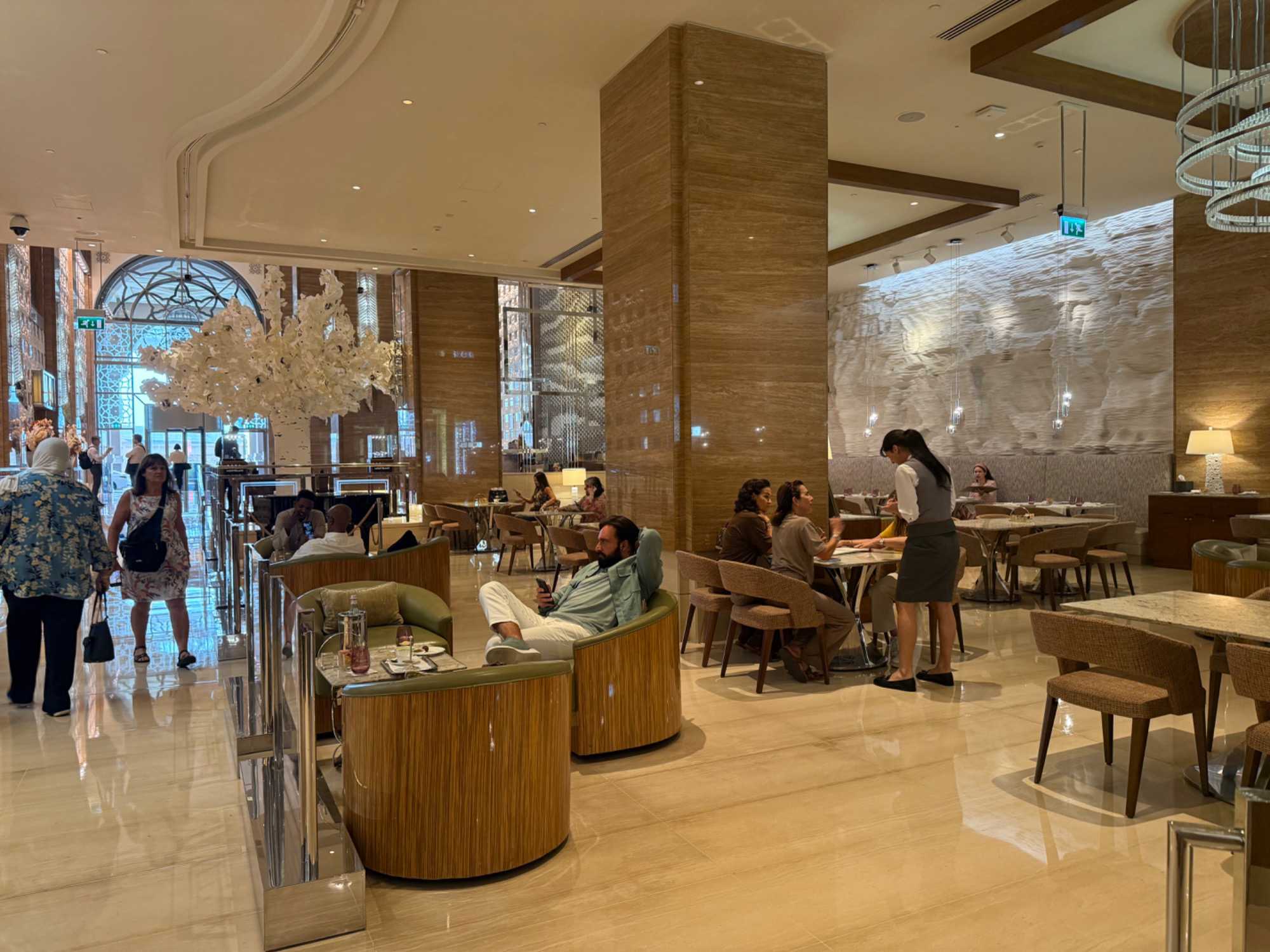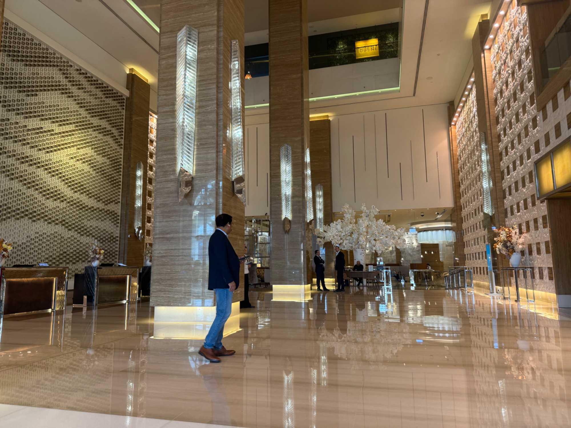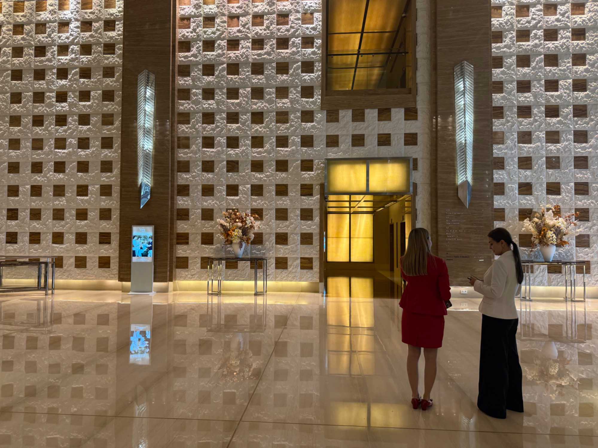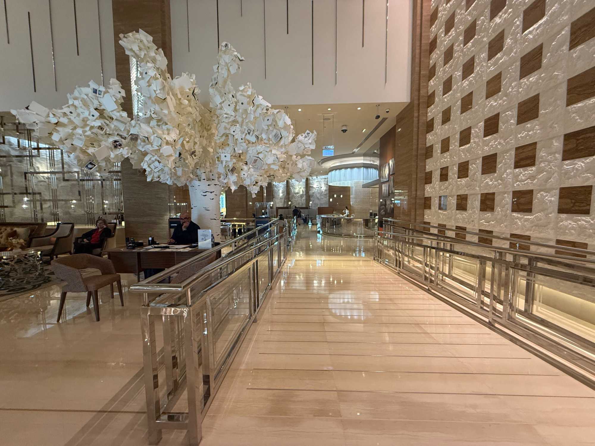 Hier soir, nous avons enfin accueilli Lek et Denis, et tout le reste du groupe. Le vol s’est parfaitement déroulé, sans turbulence, et tout le monde est arrivé souriant et heureux à notre superbe hôtel, le Kempinski Hôtel, un établissement 5 étoiles situé dans le Mall of the Emirates, l’un des plus prestigieux centres commerciaux de Dubaï.