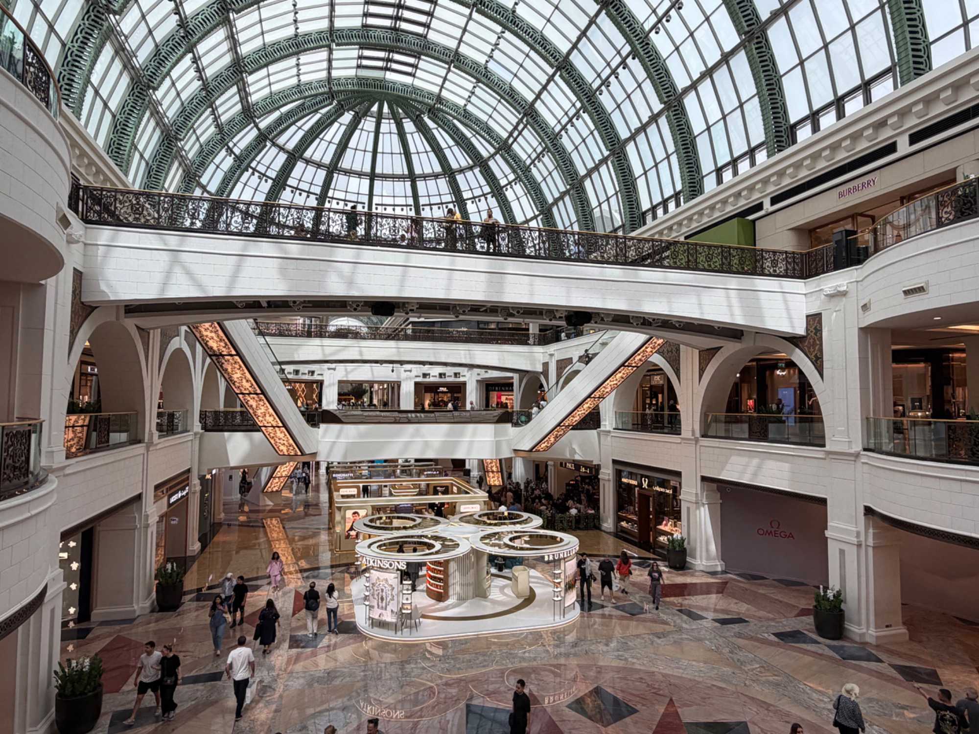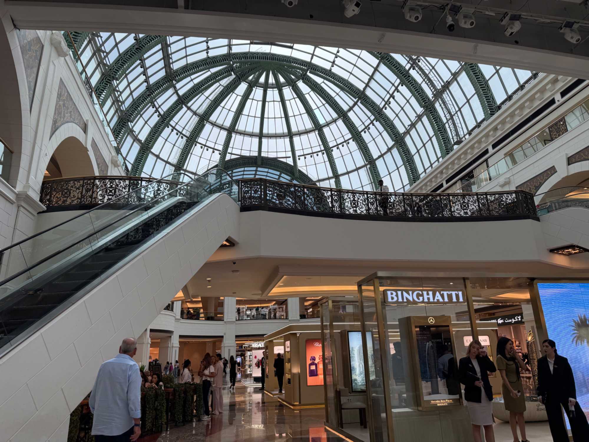 - Architecture : Inspirée des galeries européennes, combinant fer forgé, dômes de verre et marbre pour une atmosphère élégante et lumineuse.
