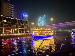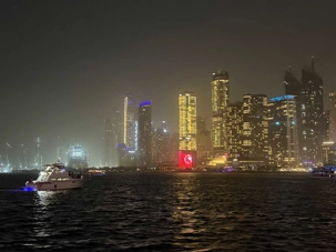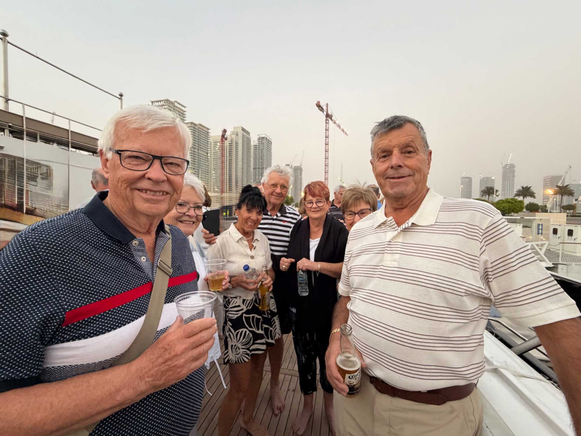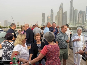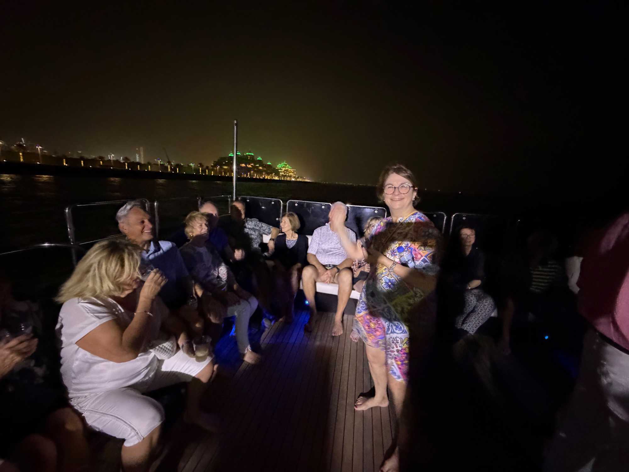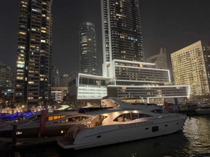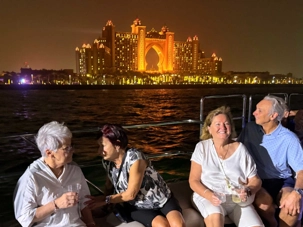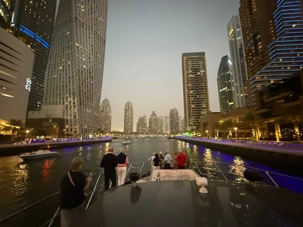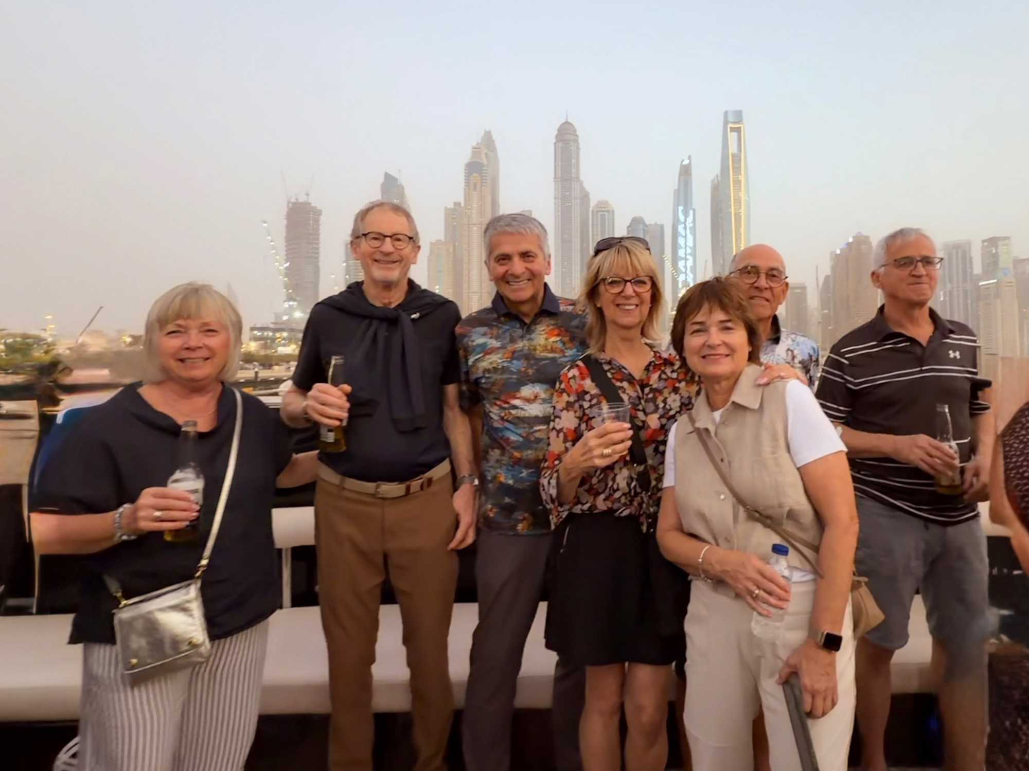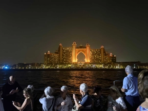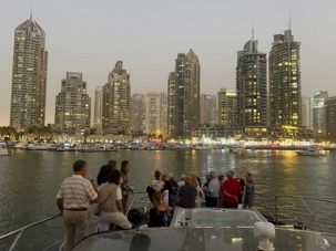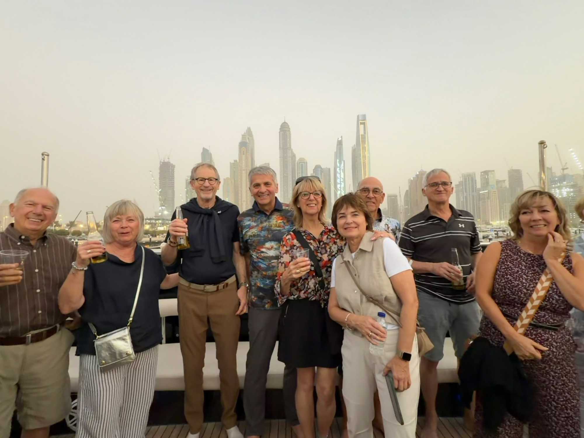 En fin d’après-midi, un transfert privé nous attendait pour rejoindre la Marina de Dubaï et embarquer sur notre yacht privatisé. Ce bateau de 65 pieds offrait tout le confort imaginable : salon lumineux, coin repas convivial, terrasse ombragée et espace de détente en plein air. Nous avons levé l’ancre pour une croisière au coucher du soleil, admirant tour à tour les emblèmes de Dubaï : Ain Dubaï, la plus grande roue du monde, l’île Bluewaters, le Palm Jumeirah et le mythique Burj Al Arab. Un cocktail au soleil couchant, un souper à bord et une ambiance festive ont fait de cette soirée un moment d’exception. De retour à l’hôtel, les sourires sur les visages témoignaient de l’émerveillement de tous. Une journée parfaite, alliant détente, découvertes et magie — un avant-goût du rêve que promet ce voyage inoubliable aux Émirats arabes unis. 🌟