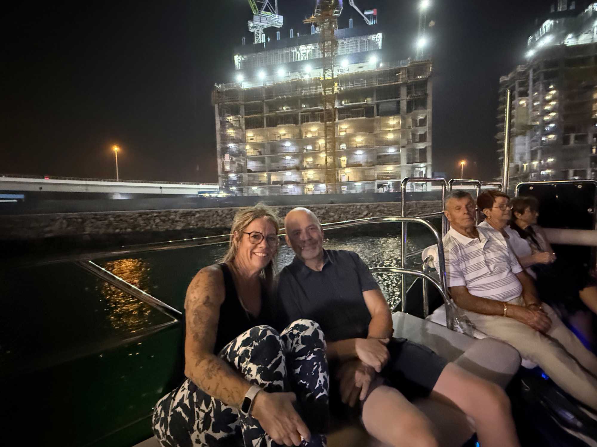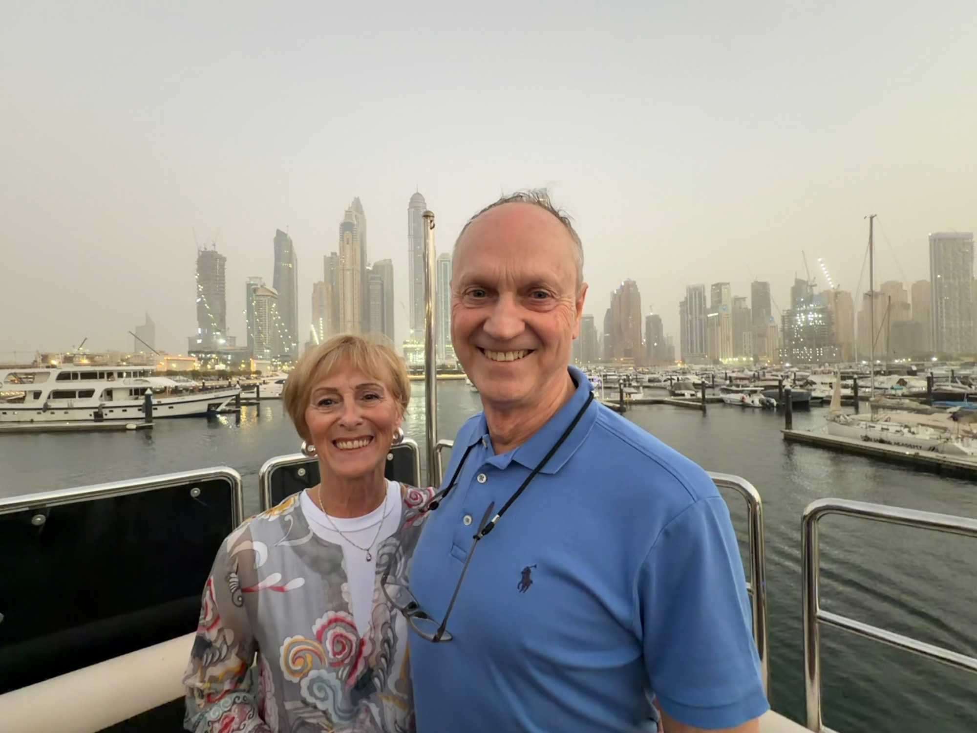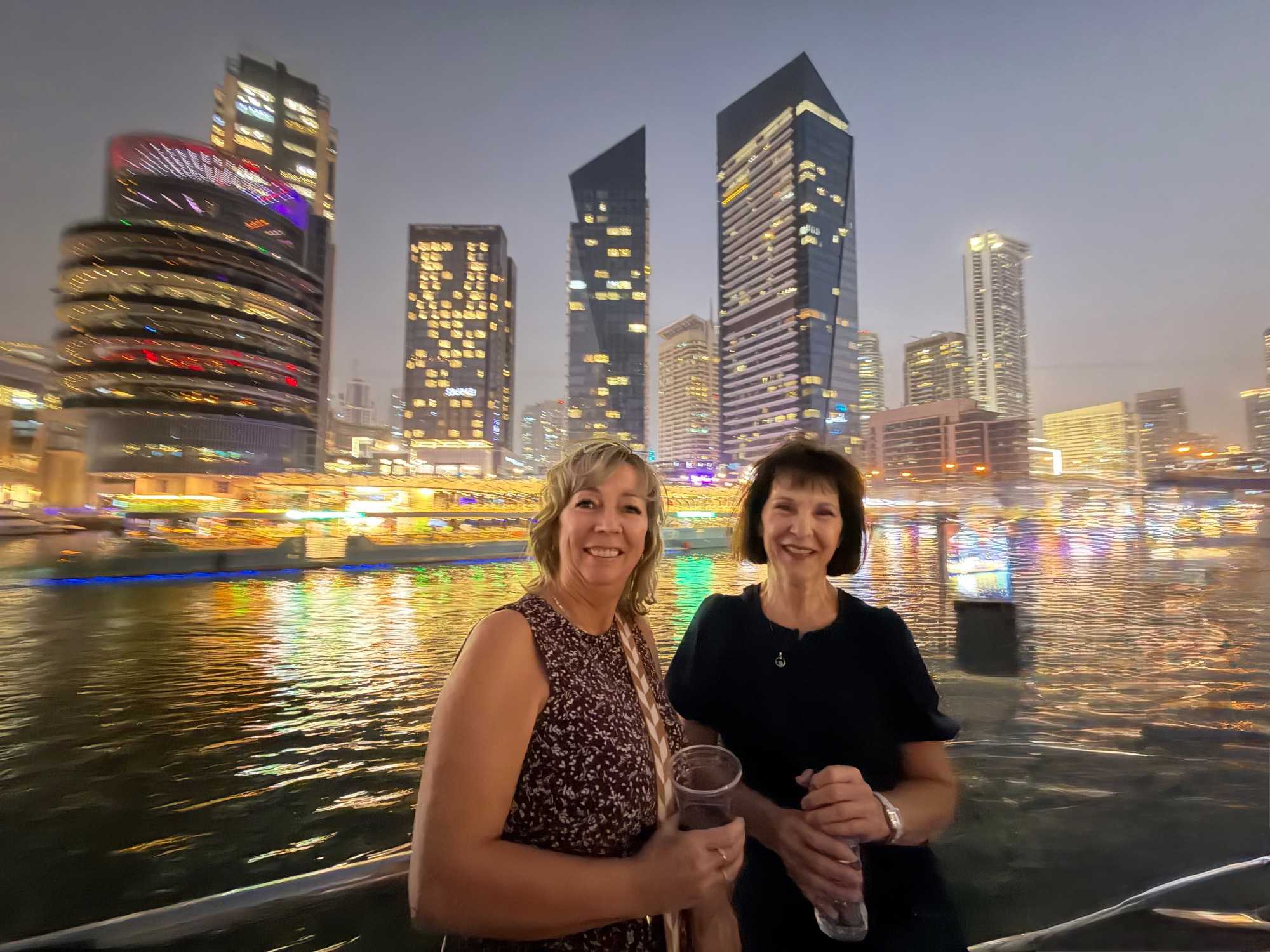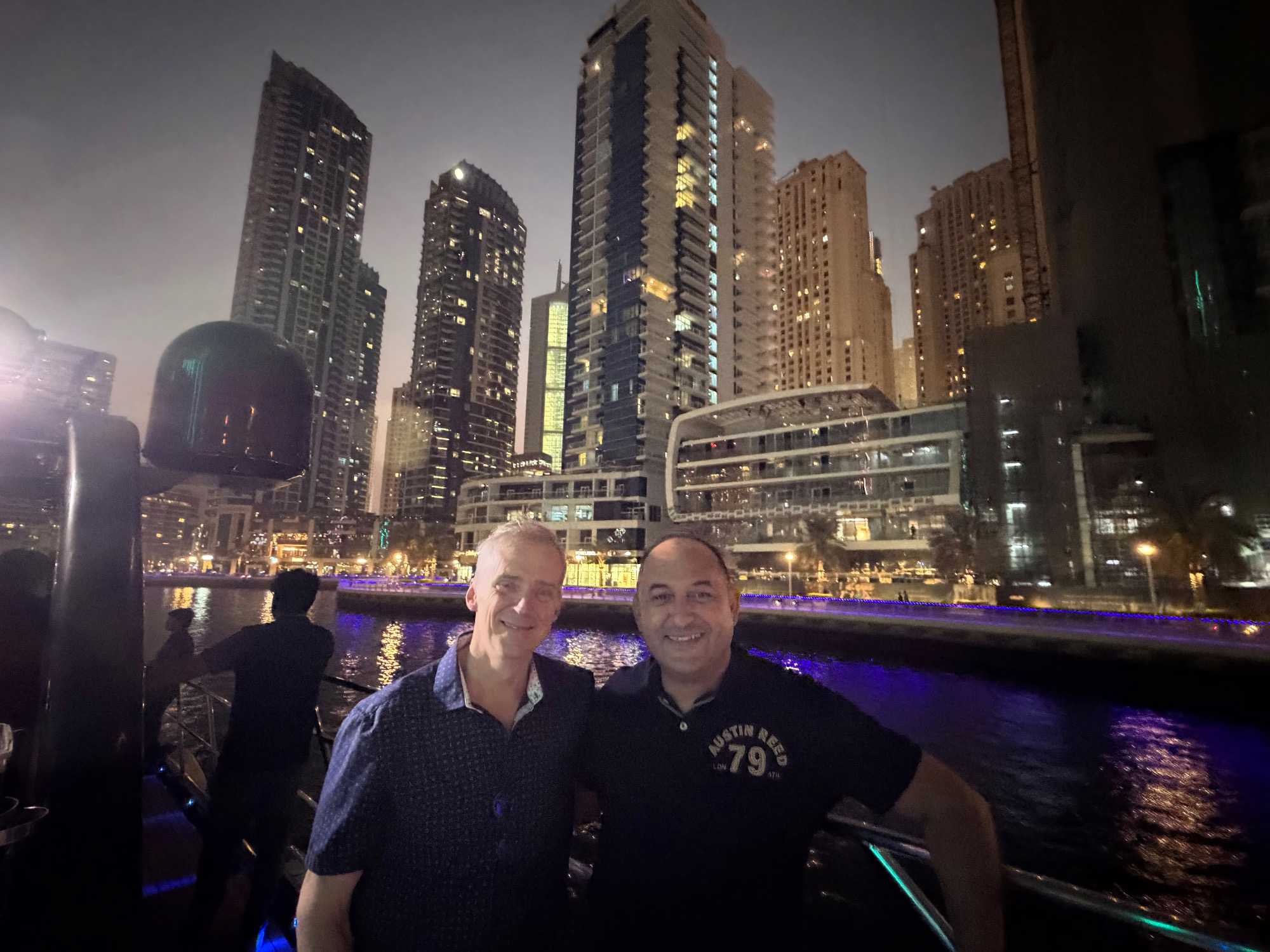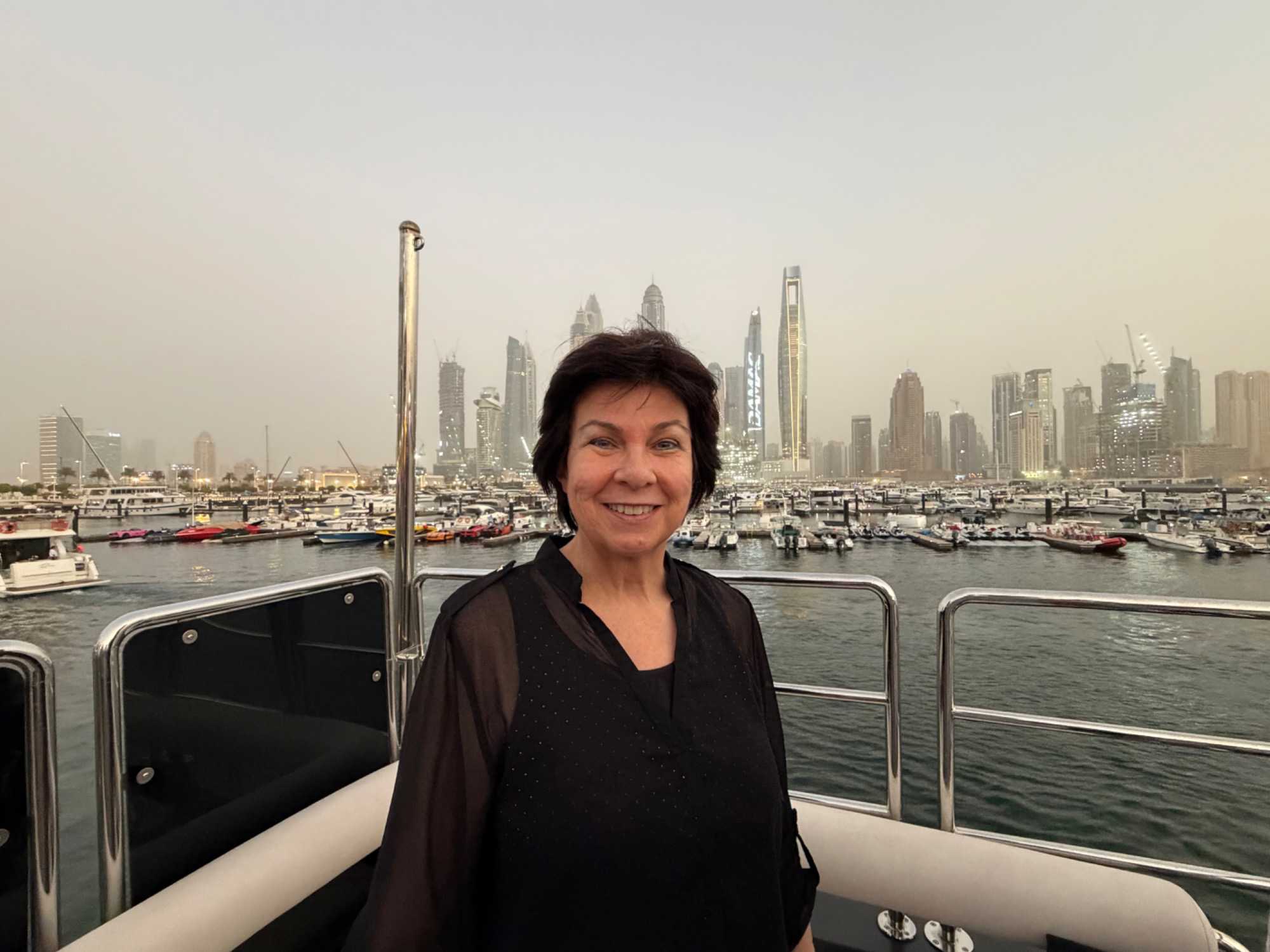 En fin d’après-midi, un transfert privé nous attendait pour rejoindre la Marina de Dubaï et embarquer sur notre yacht privatisé. Ce bateau de 65 pieds offrait tout le confort imaginable : salon lumineux, coin repas convivial, terrasse ombragée et espace de détente en plein air. Nous avons levé l’ancre pour une croisière au coucher du soleil, admirant tour à tour les emblèmes de Dubaï : Ain Dubaï, la plus grande roue du monde, l’île Bluewaters, le Palm Jumeirah et le mythique Burj Al Arab. Un cocktail au soleil couchant, un souper à bord et une ambiance festive ont fait de cette soirée un moment d’exception. De retour à l’hôtel, les sourires sur les visages témoignaient de l’émerveillement de tous. Une journée parfaite, alliant détente, découvertes et magie — un avant-goût du rêve que promet ce voyage inoubliable aux Émirats arabes unis. 🌟