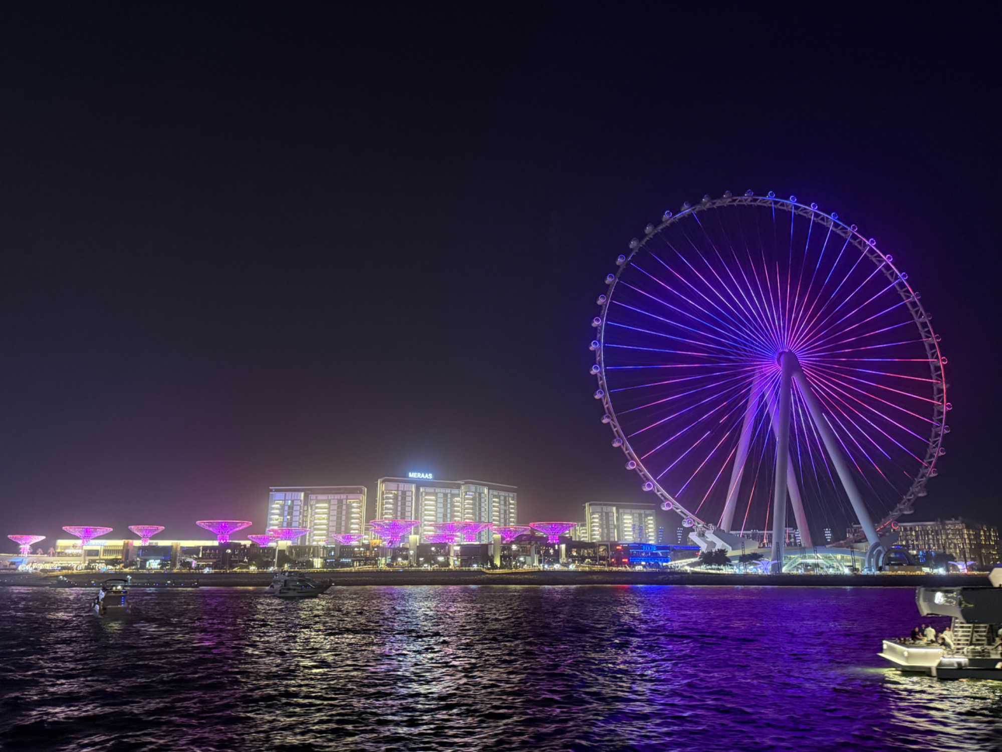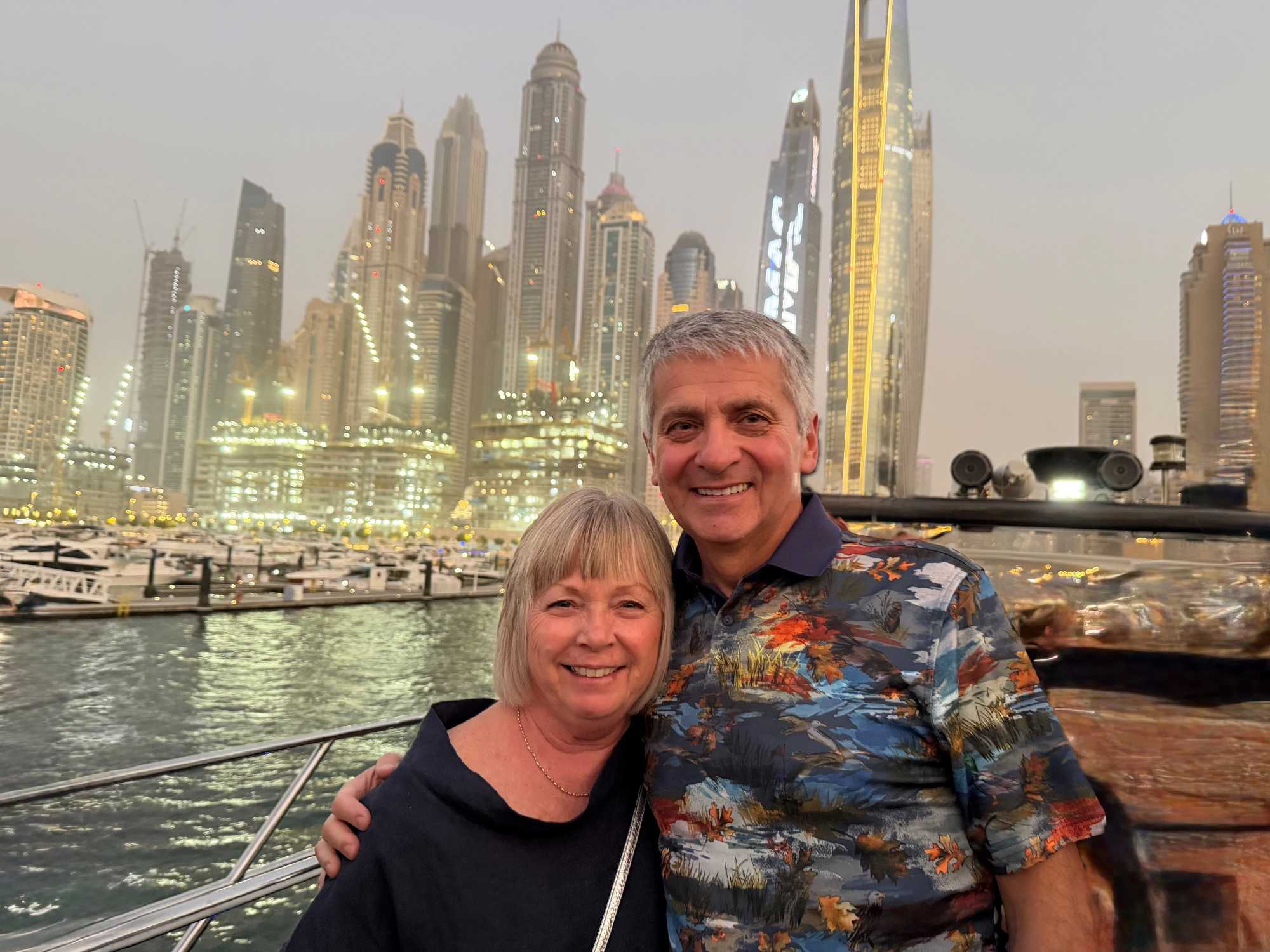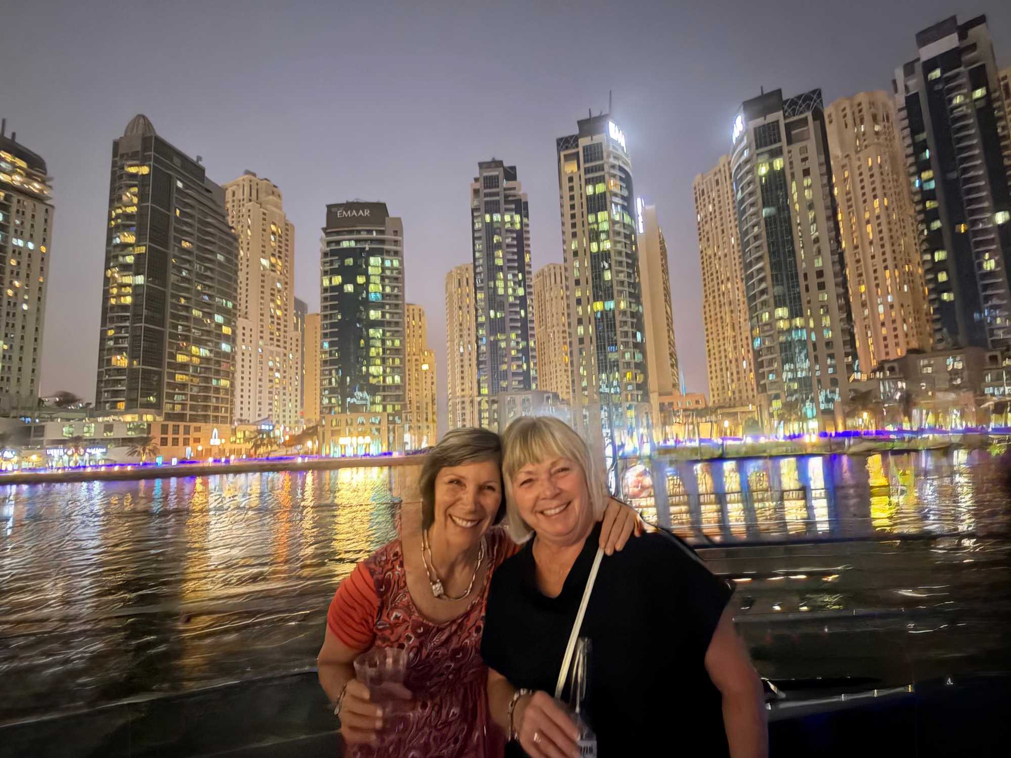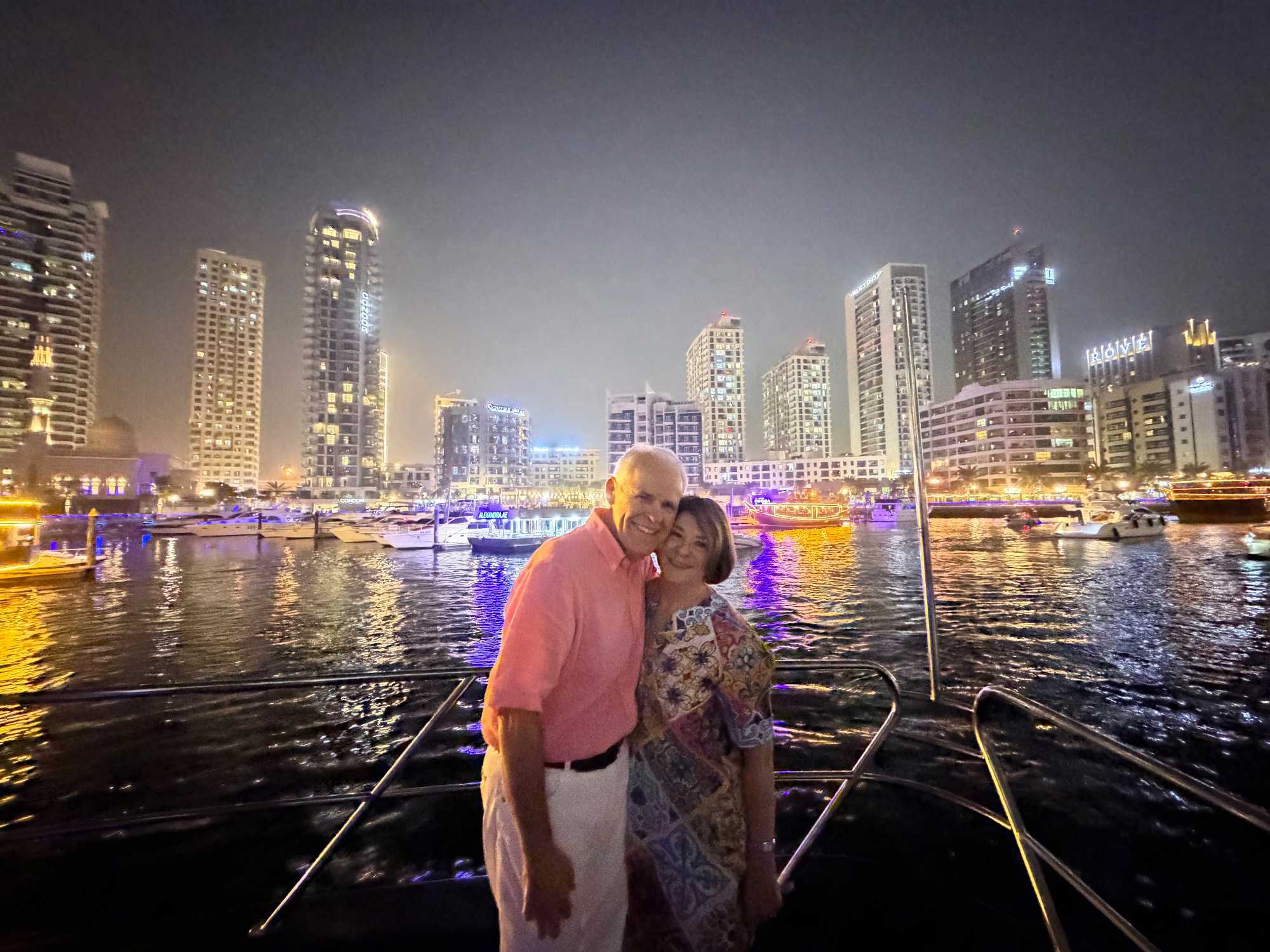 En fin d’après-midi, un transfert privé nous attendait pour rejoindre la Marina de Dubaï et embarquer sur notre yacht privatisé. Ce bateau de 65 pieds offrait tout le confort imaginable : salon lumineux, coin repas convivial, terrasse ombragée et espace de détente en plein air. Nous avons levé l’ancre pour une croisière au coucher du soleil, admirant tour à tour les emblèmes de Dubaï : Ain Dubaï, la plus grande roue du monde, l’île Bluewaters, le Palm Jumeirah et le mythique Burj Al Arab. Un cocktail au soleil couchant, un souper à bord et une ambiance festive ont fait de cette soirée un moment d’exception. De retour à l’hôtel, les sourires sur les visages témoignaient de l’émerveillement de tous. Une journée parfaite, alliant détente, découvertes et magie — un avant-goût du rêve que promet ce voyage inoubliable aux Émirats arabes unis. 🌟