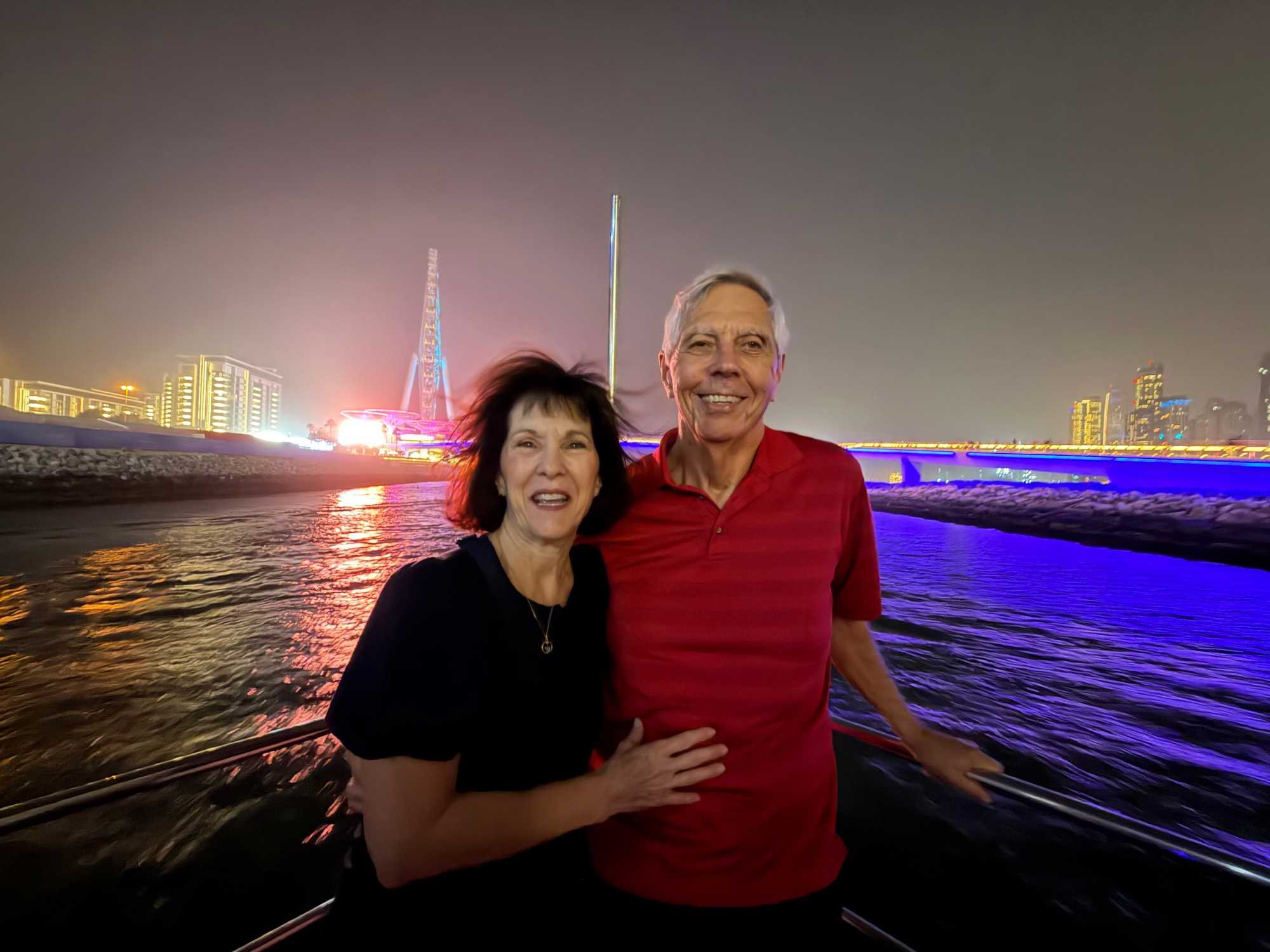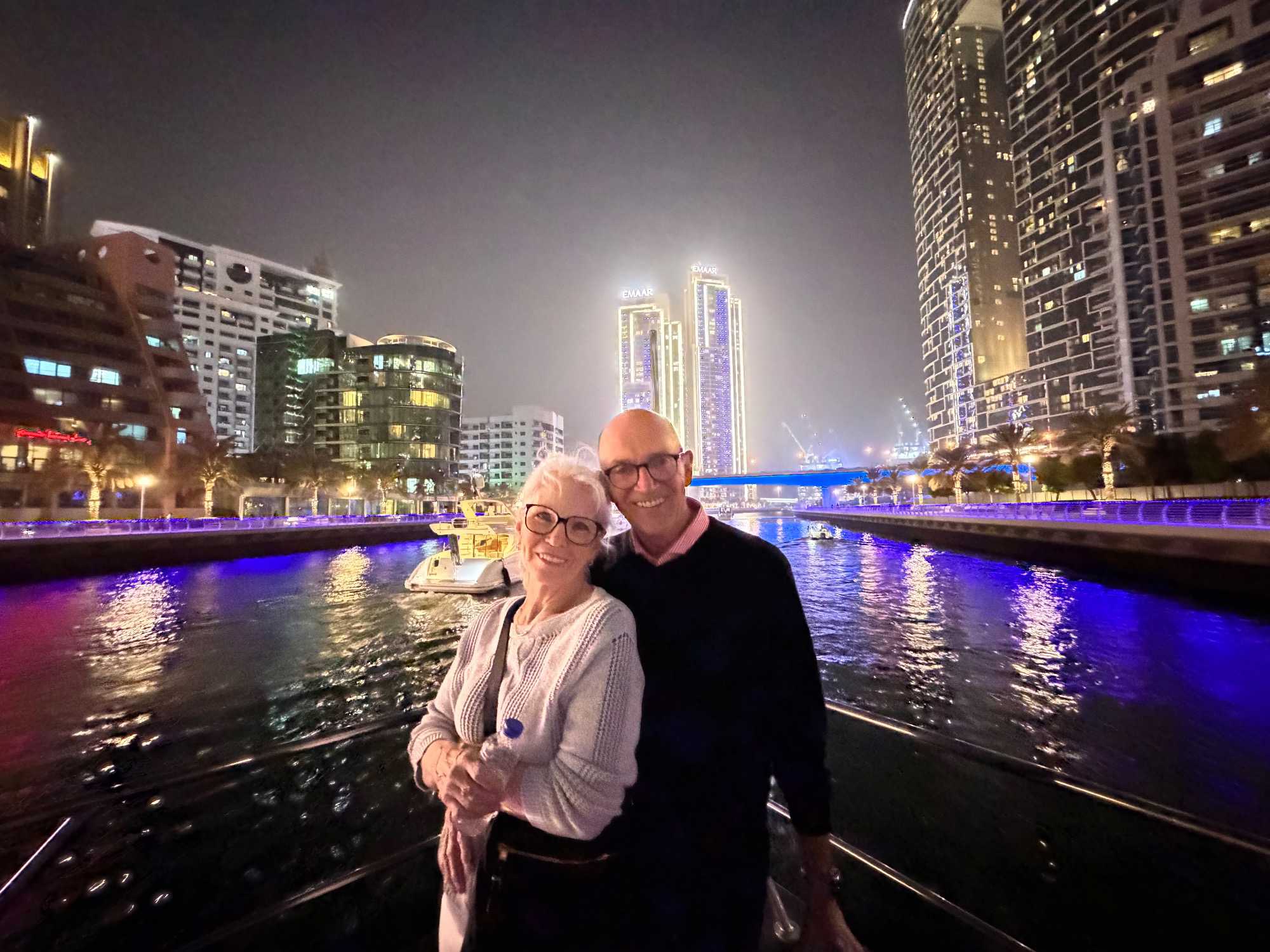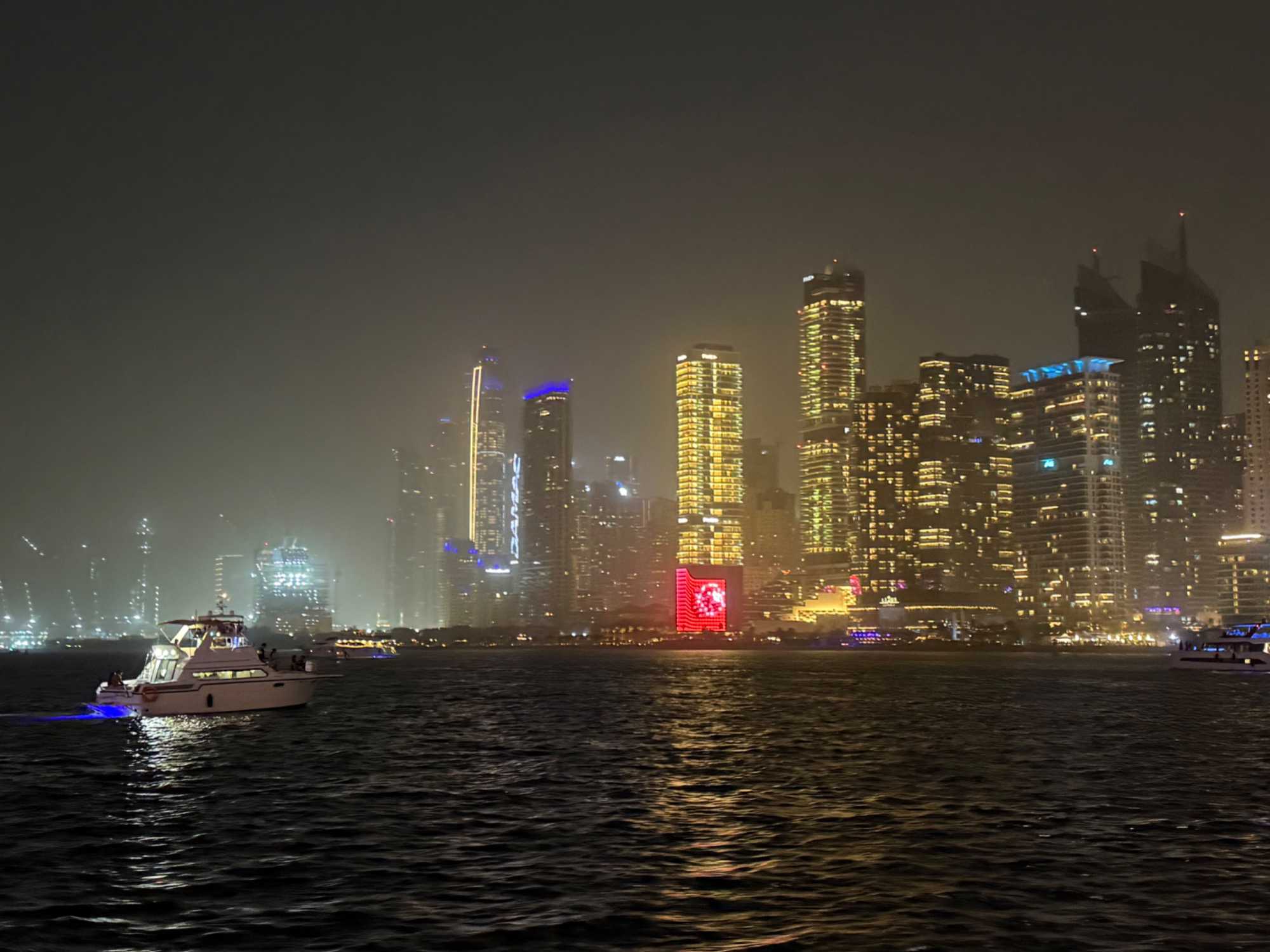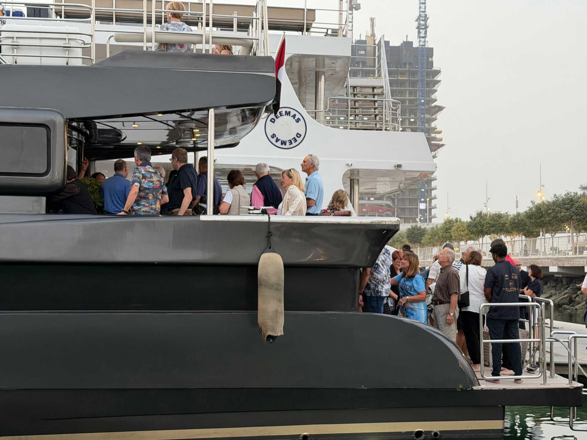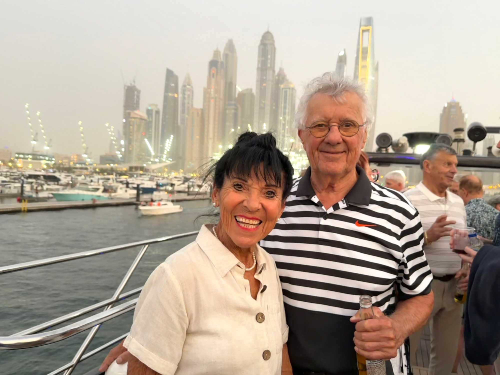 En fin d’après-midi, un transfert privé nous attendait pour rejoindre la Marina de Dubaï et embarquer sur notre yacht privatisé. Ce bateau de 65 pieds offrait tout le confort imaginable : salon lumineux, coin repas convivial, terrasse ombragée et espace de détente en plein air. Nous avons levé l’ancre pour une croisière au coucher du soleil, admirant tour à tour les emblèmes de Dubaï : Ain Dubaï, la plus grande roue du monde, l’île Bluewaters, le Palm Jumeirah et le mythique Burj Al Arab. Un cocktail au soleil couchant, un souper à bord et une ambiance festive ont fait de cette soirée un moment d’exception. De retour à l’hôtel, les sourires sur les visages témoignaient de l’émerveillement de tous. Une journée parfaite, alliant détente, découvertes et magie — un avant-goût du rêve que promet ce voyage inoubliable aux Émirats arabes unis. 🌟