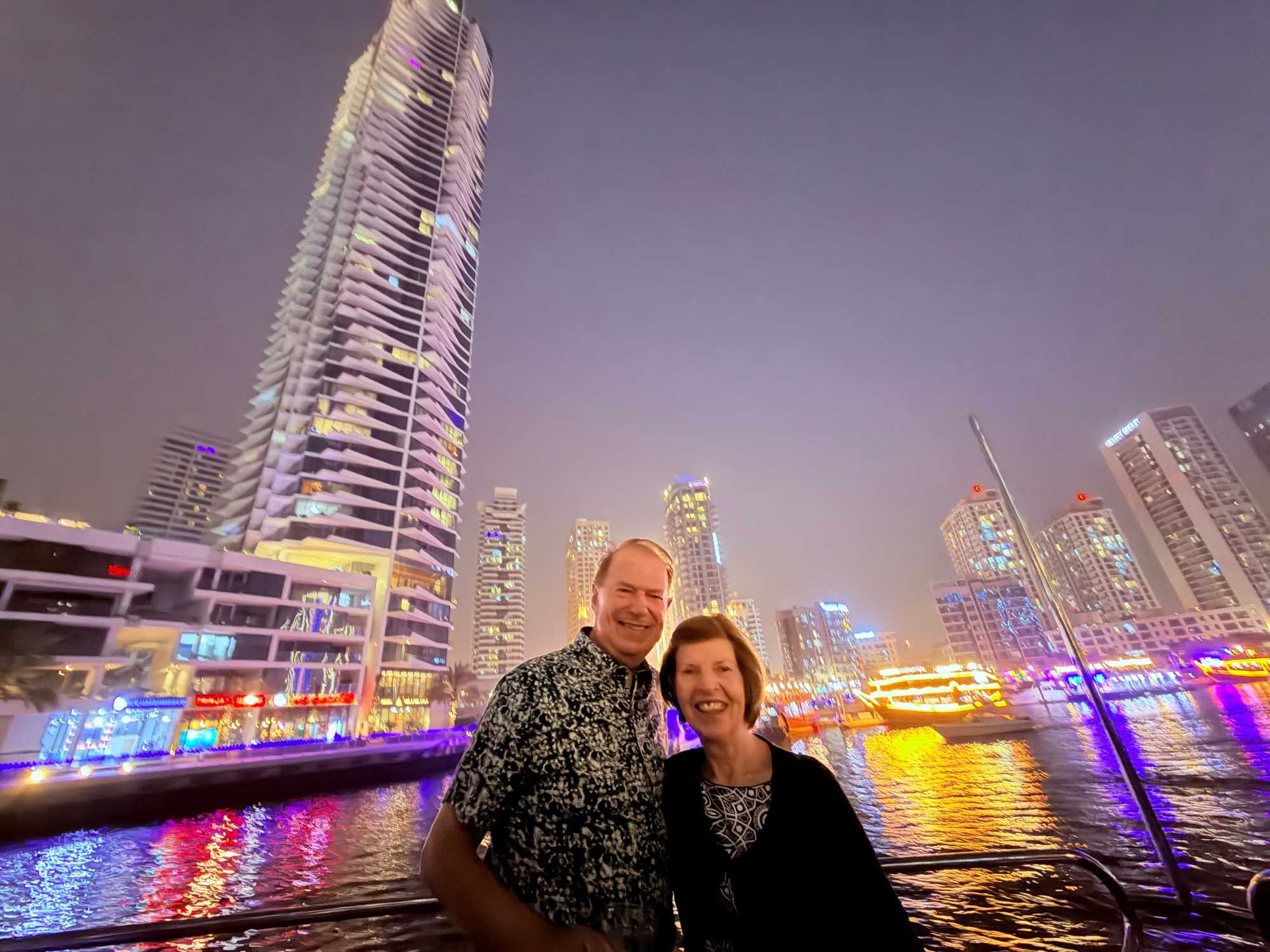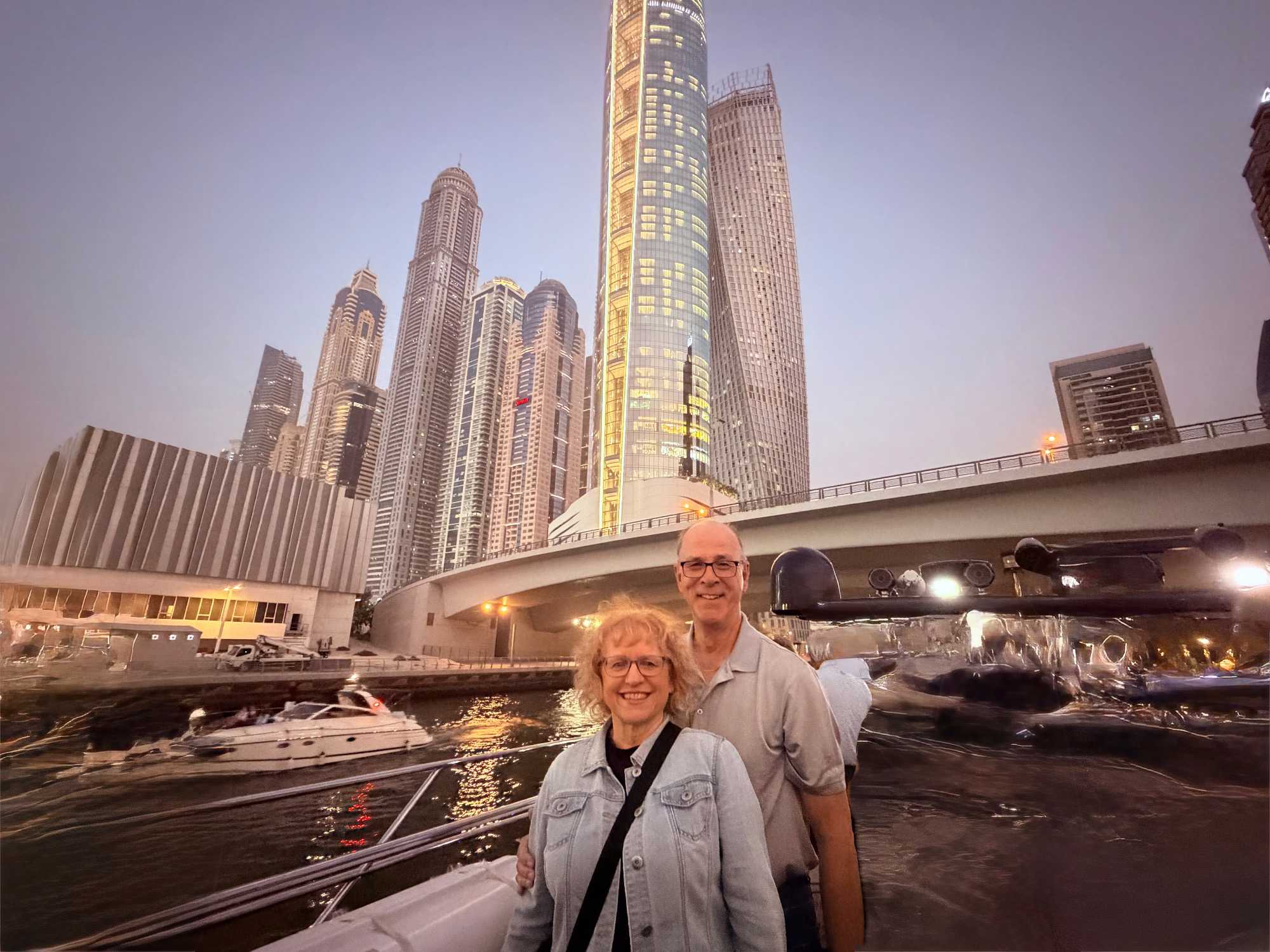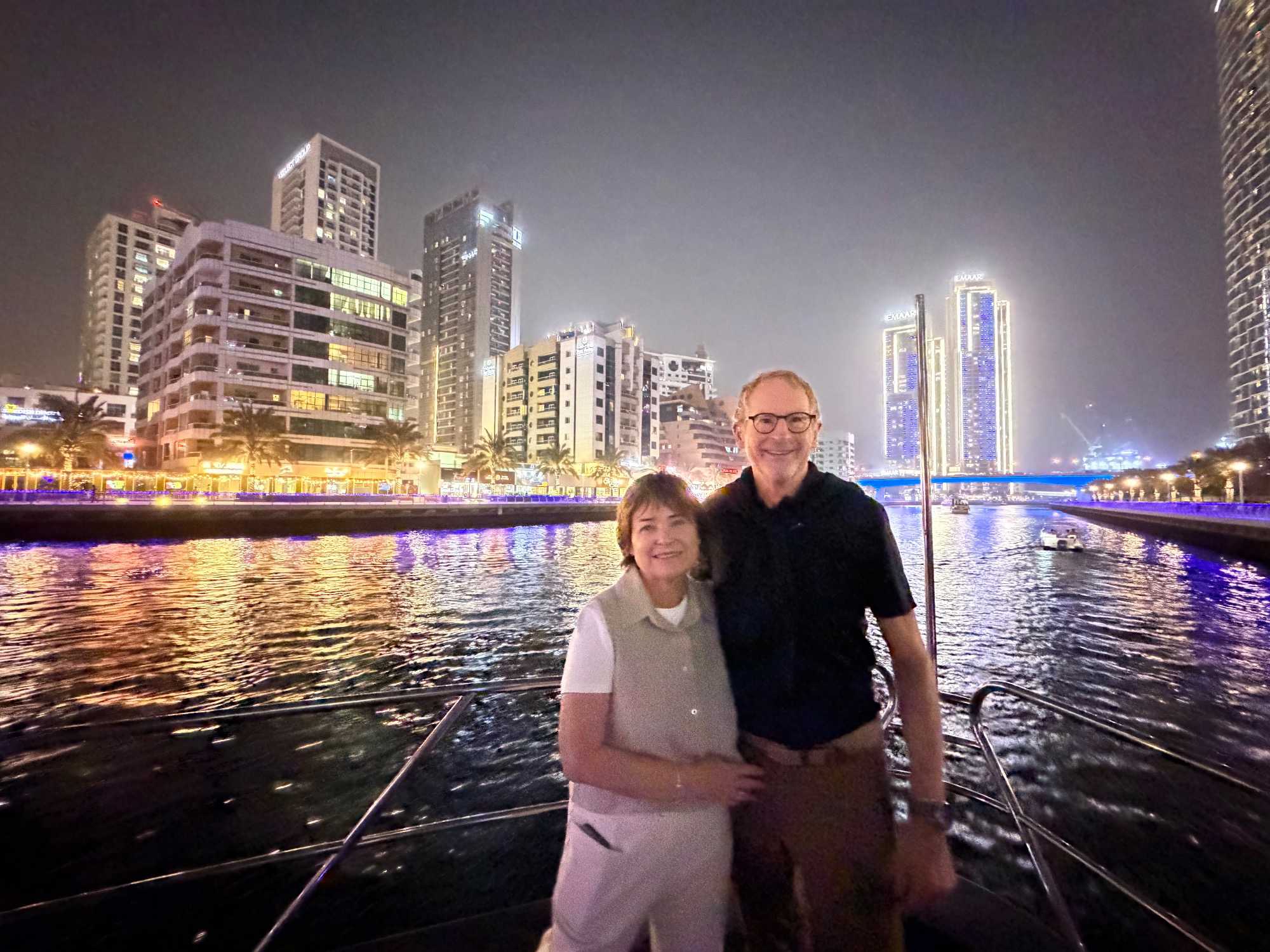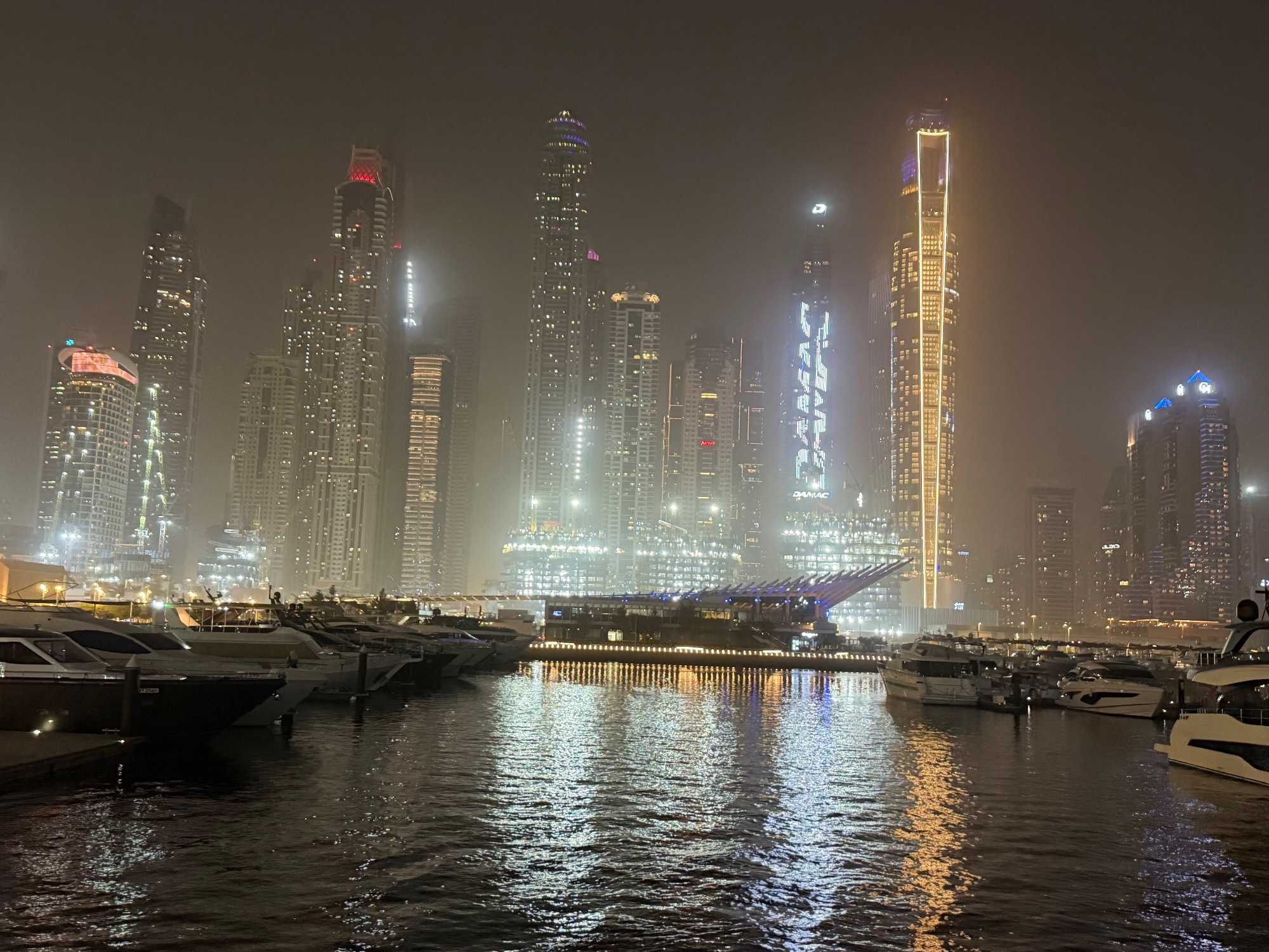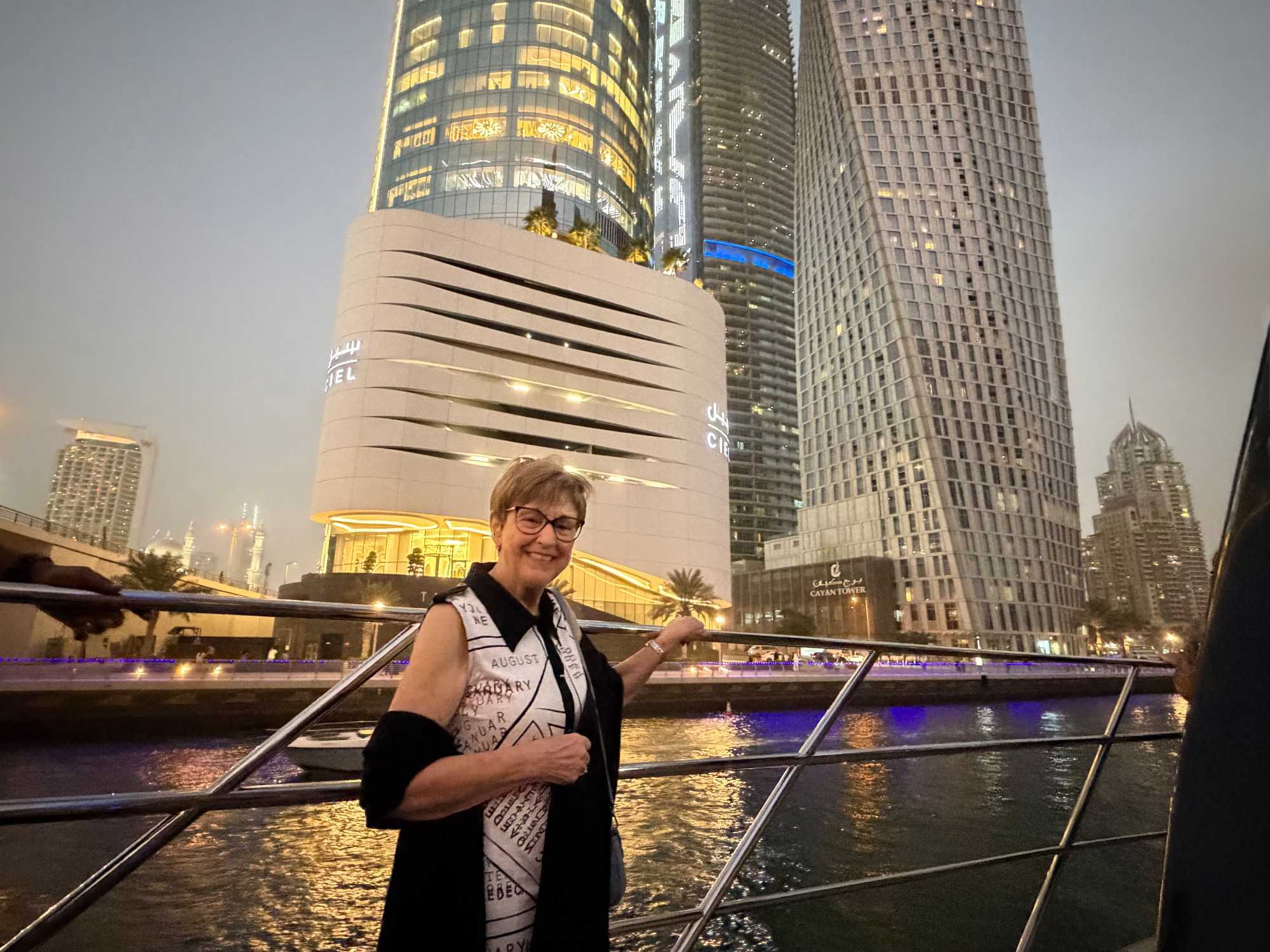 En fin d’après-midi, un transfert privé nous attendait pour rejoindre la Marina de Dubaï et embarquer sur notre yacht privatisé. Ce bateau de 65 pieds offrait tout le confort imaginable : salon lumineux, coin repas convivial, terrasse ombragée et espace de détente en plein air. Nous avons levé l’ancre pour une croisière au coucher du soleil, admirant tour à tour les emblèmes de Dubaï : Ain Dubaï, la plus grande roue du monde, l’île Bluewaters, le Palm Jumeirah et le mythique Burj Al Arab. Un cocktail au soleil couchant, un souper à bord et une ambiance festive ont fait de cette soirée un moment d’exception. De retour à l’hôtel, les sourires sur les visages témoignaient de l’émerveillement de tous. Une journée parfaite, alliant détente, découvertes et magie — un avant-goût du rêve que promet ce voyage inoubliable aux Émirats arabes unis. 🌟