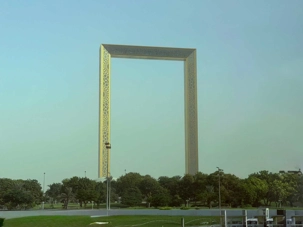 Sur la route, nos yeux s’écarquillent devant le Dubai Frame 🖼️, immense cadre doré haut de 150 mètres.