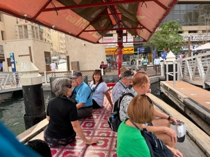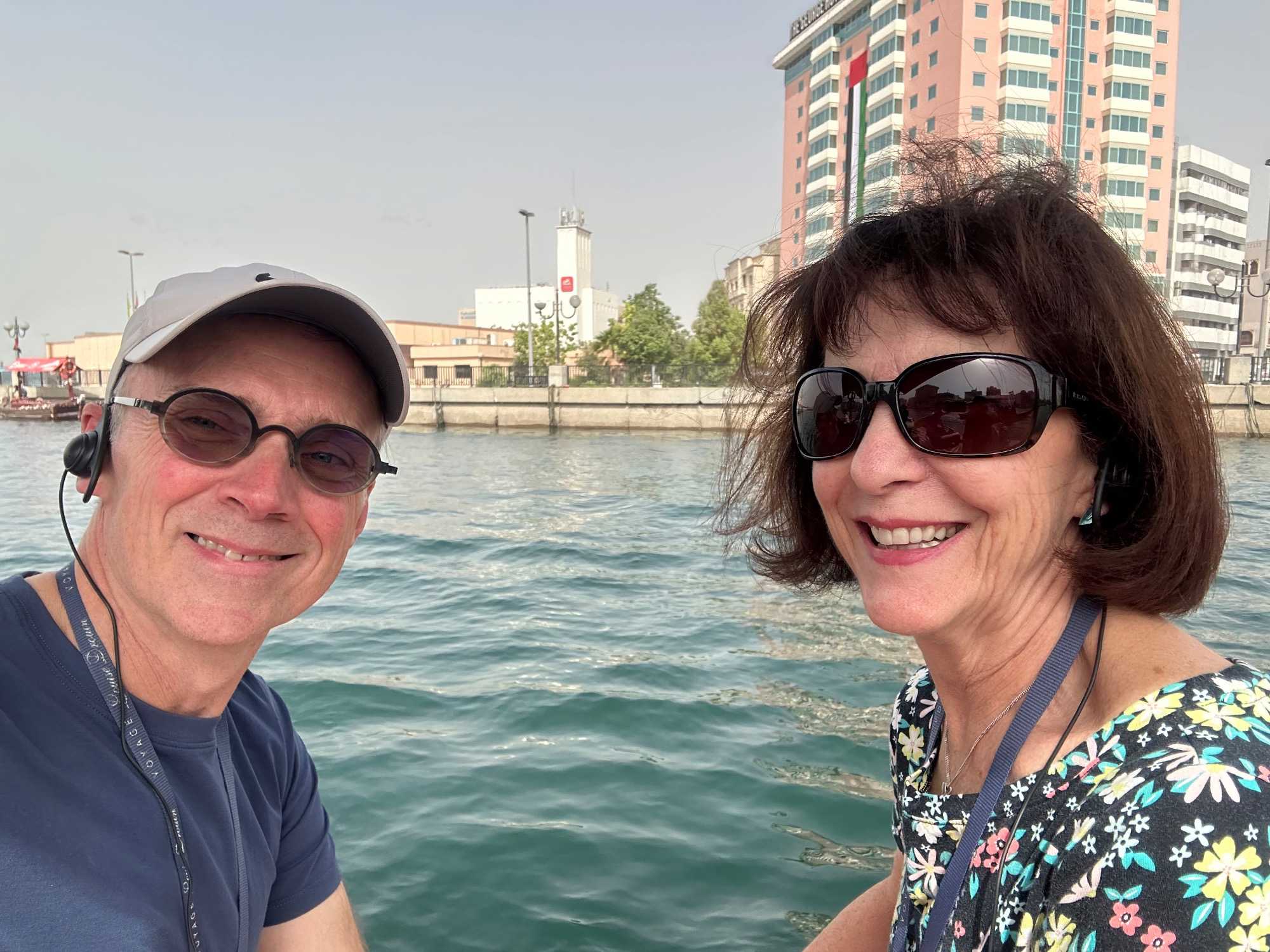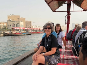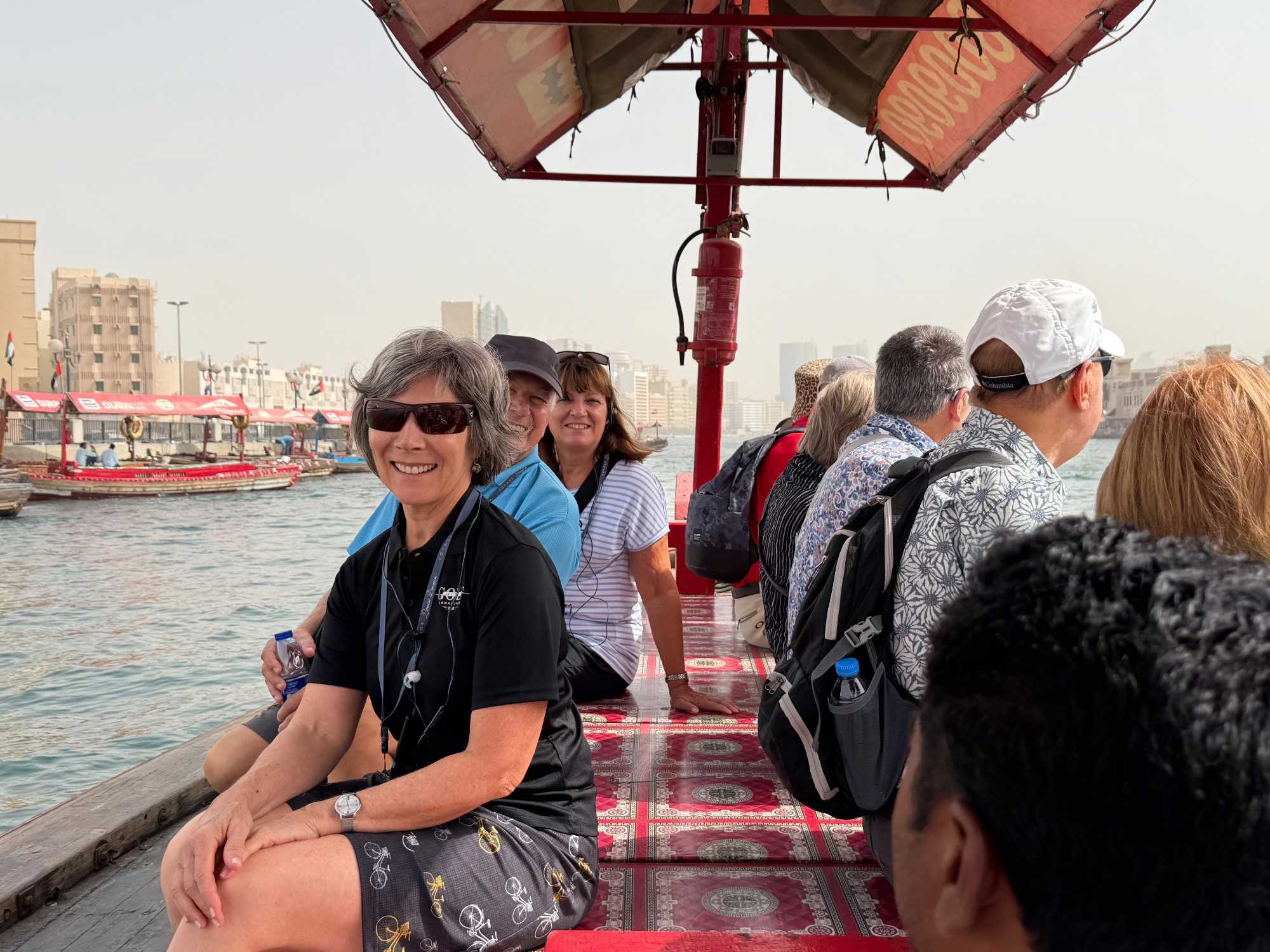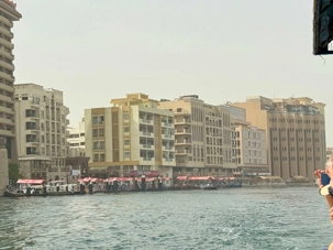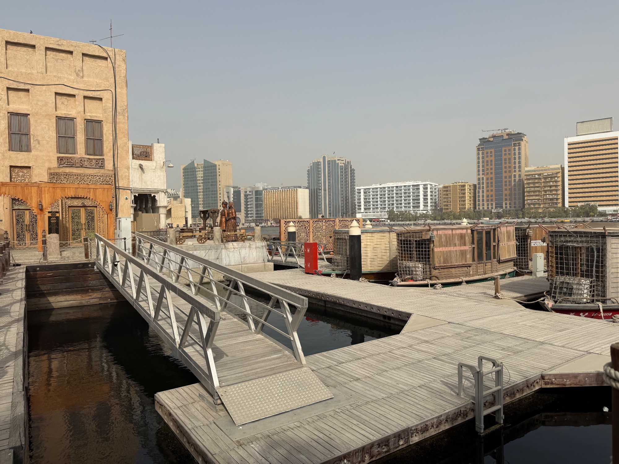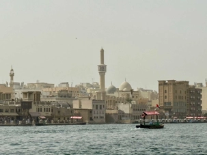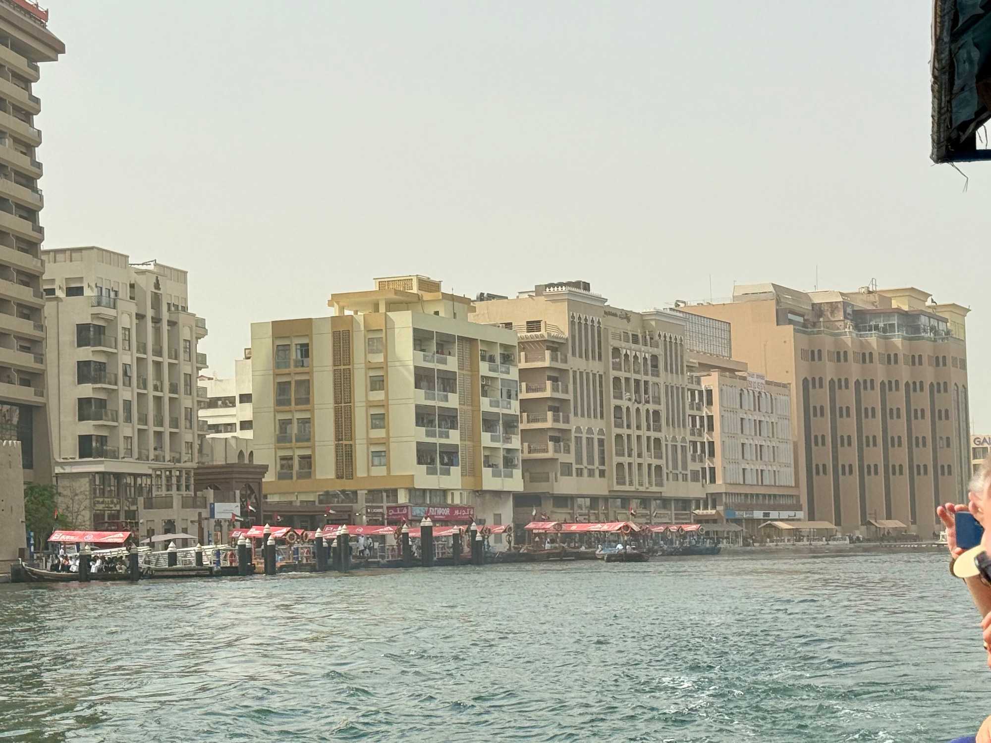 Pour rejoindre l’autre rive du Dubai Creek, nous embarquons à bord d’une abra, une petite embarcation traditionnelle en bois 🚤. Le clapotis de l’eau, la brise tiède et les reflets du soleil sur les flots créent une atmosphère paisible. Devant nous défilent les boutres chargés de marchandises, les maisons anciennes et les silhouettes des minarets. C’est un instant suspendu, une remontée dans le temps.