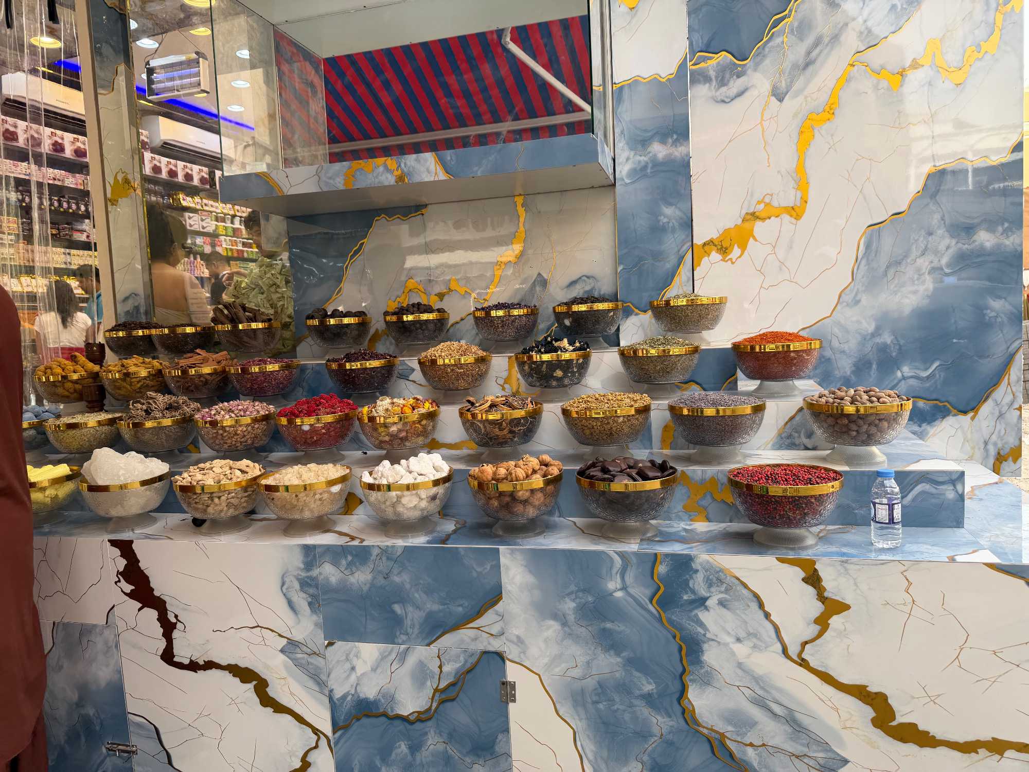 Puis, surprise gourmande : le chocolat de Dubaï 🍫 ! Fabriqué à base de lait de chamelle, de dattes et parfumé à la rose ou à la cardamome, il fond en bouche et laisse un goût floral exquis.