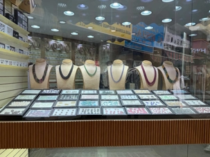 Les vitrines brillent de mille feux : colliers somptueux, bracelets ciselés, montres incrustées de diamants.