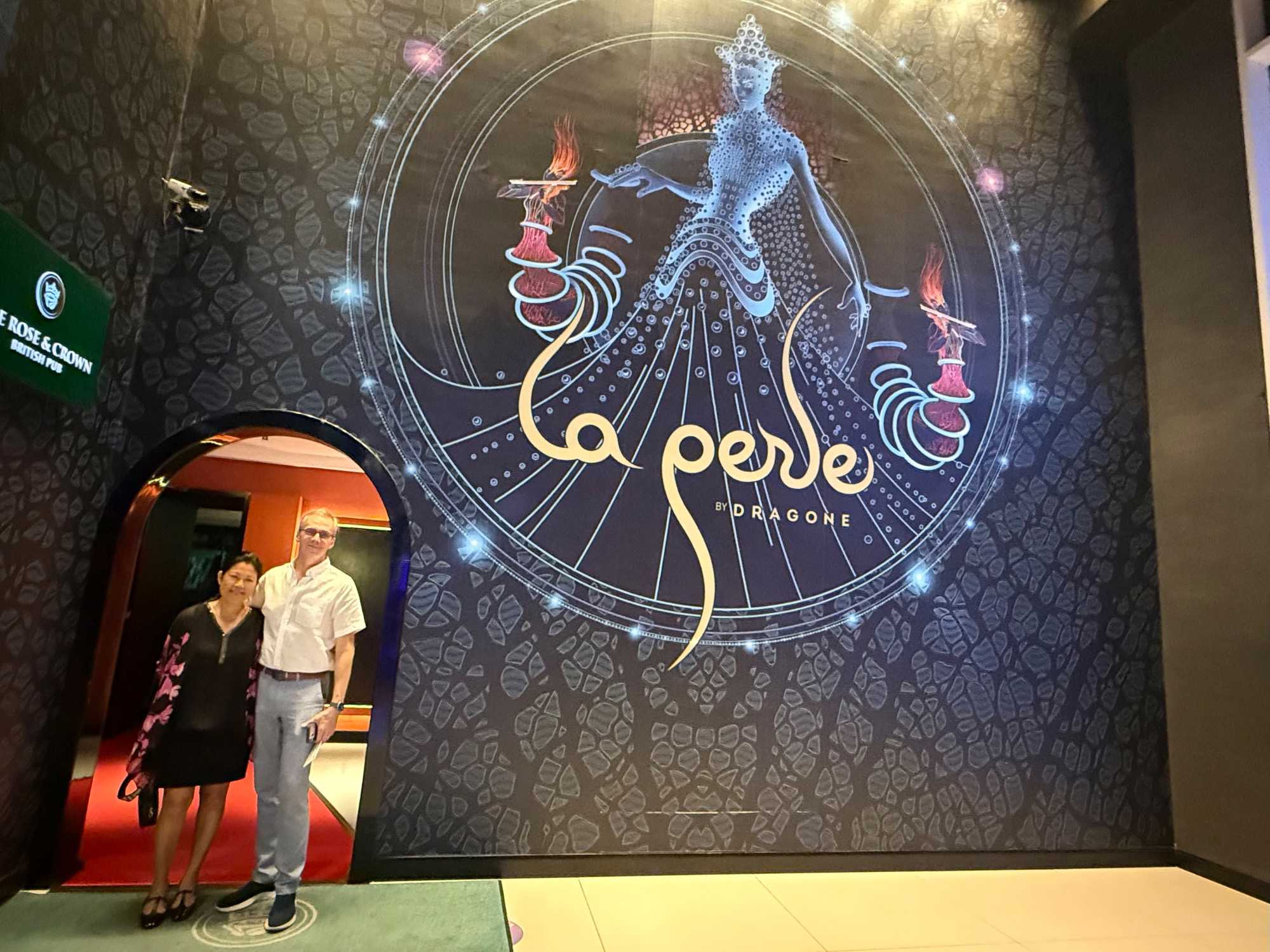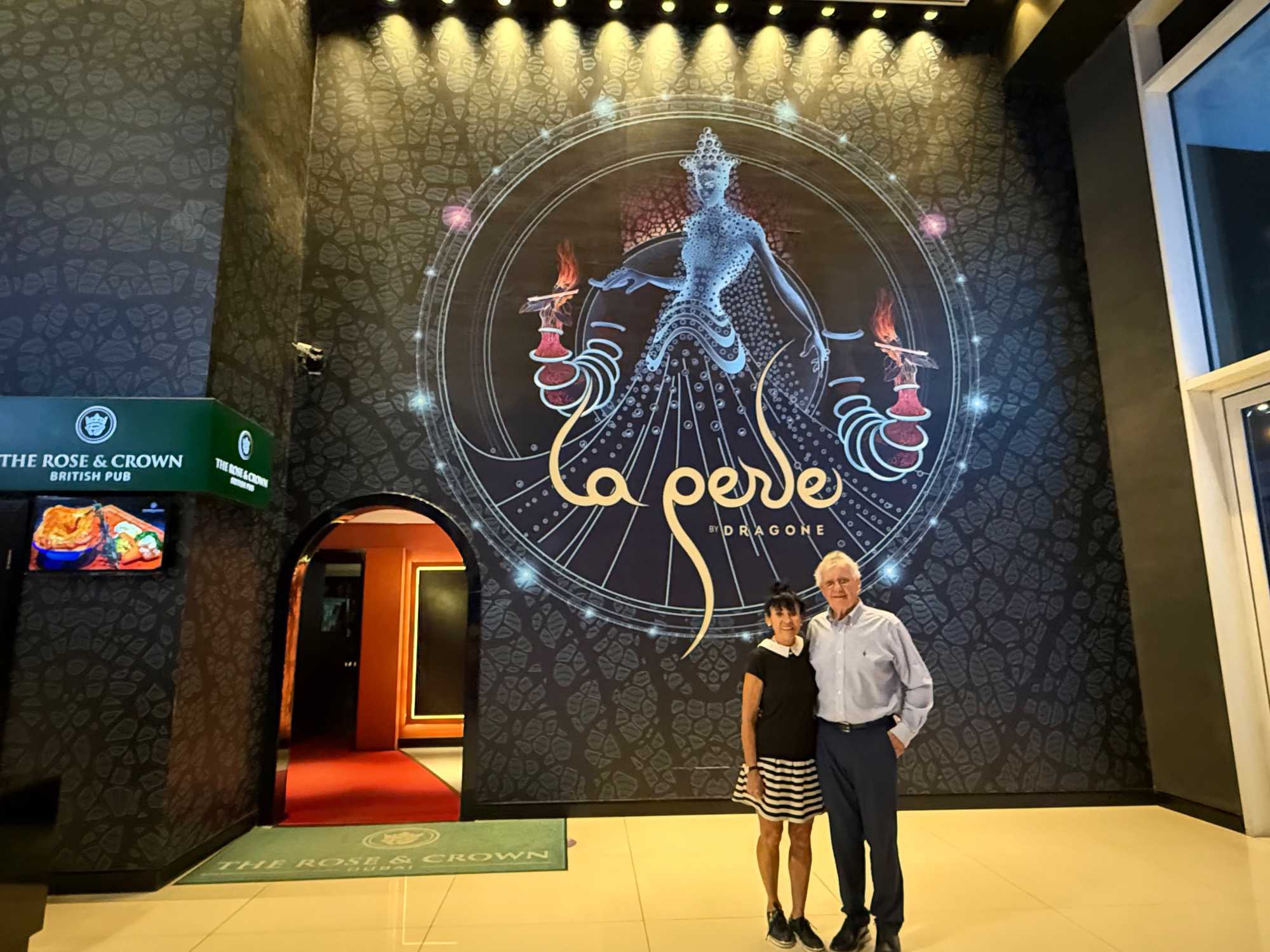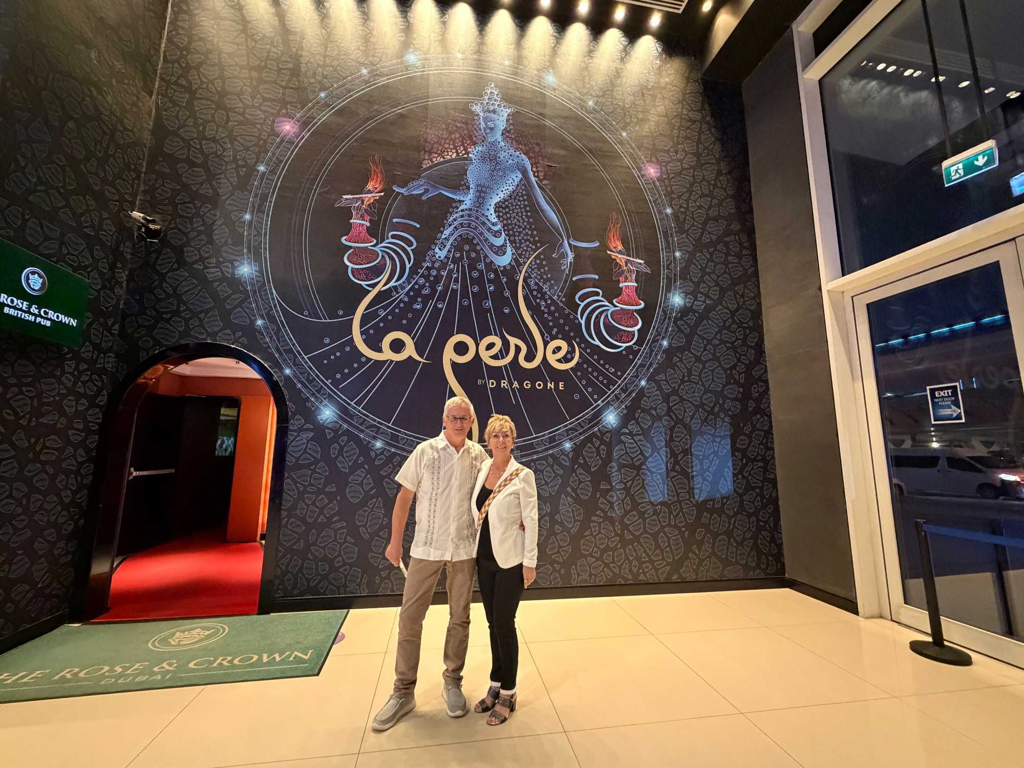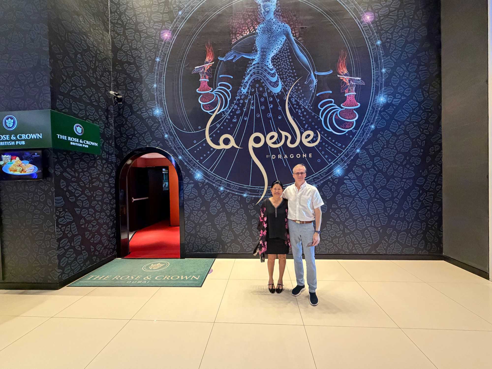 En fin d’après-midi, nous repartons, tous bien vêtus et souriants, pour assister au spectacle “La Perle” 💫, une création du célèbre Franco Dragone, metteur en scène belge mondialement reconnu pour ses chefs-d’œuvre “O” au Bellagio et “Le Rêve” au Wynn de Las Vegas. Quel spectacle grandiose, nous avons tous adoré!