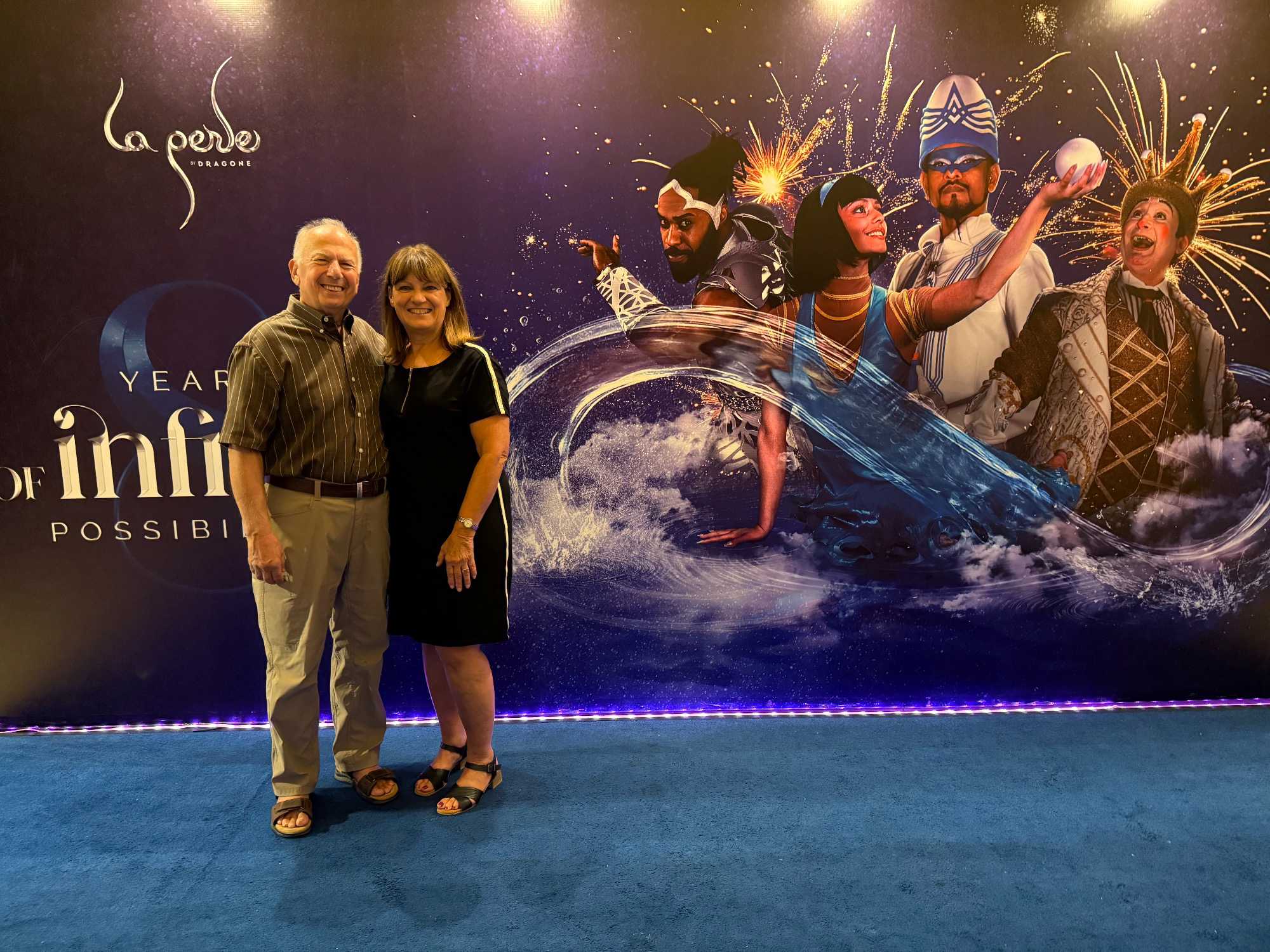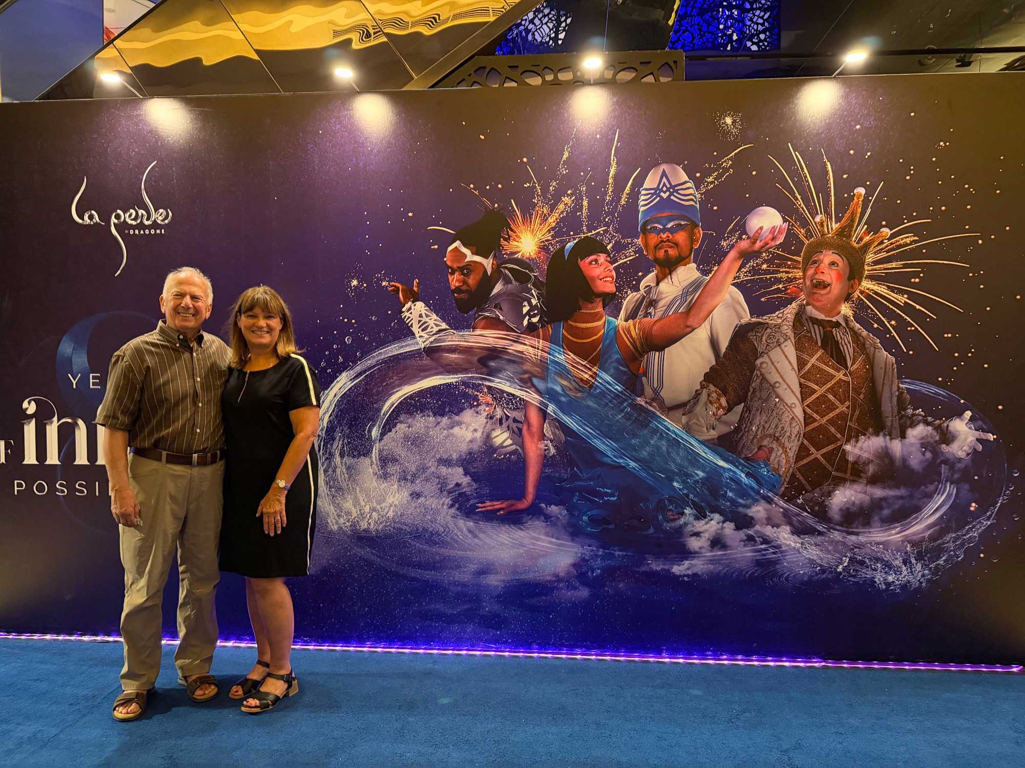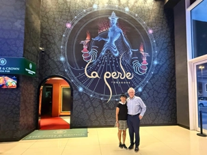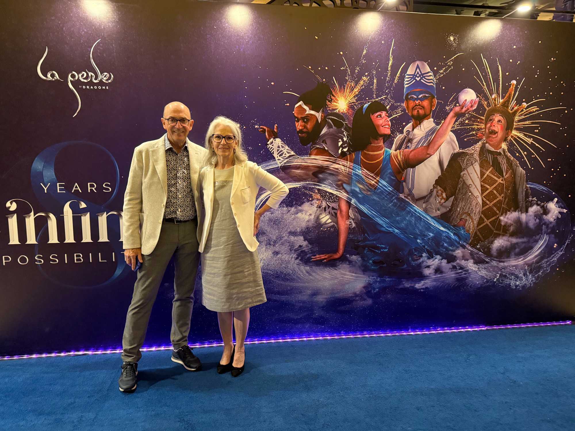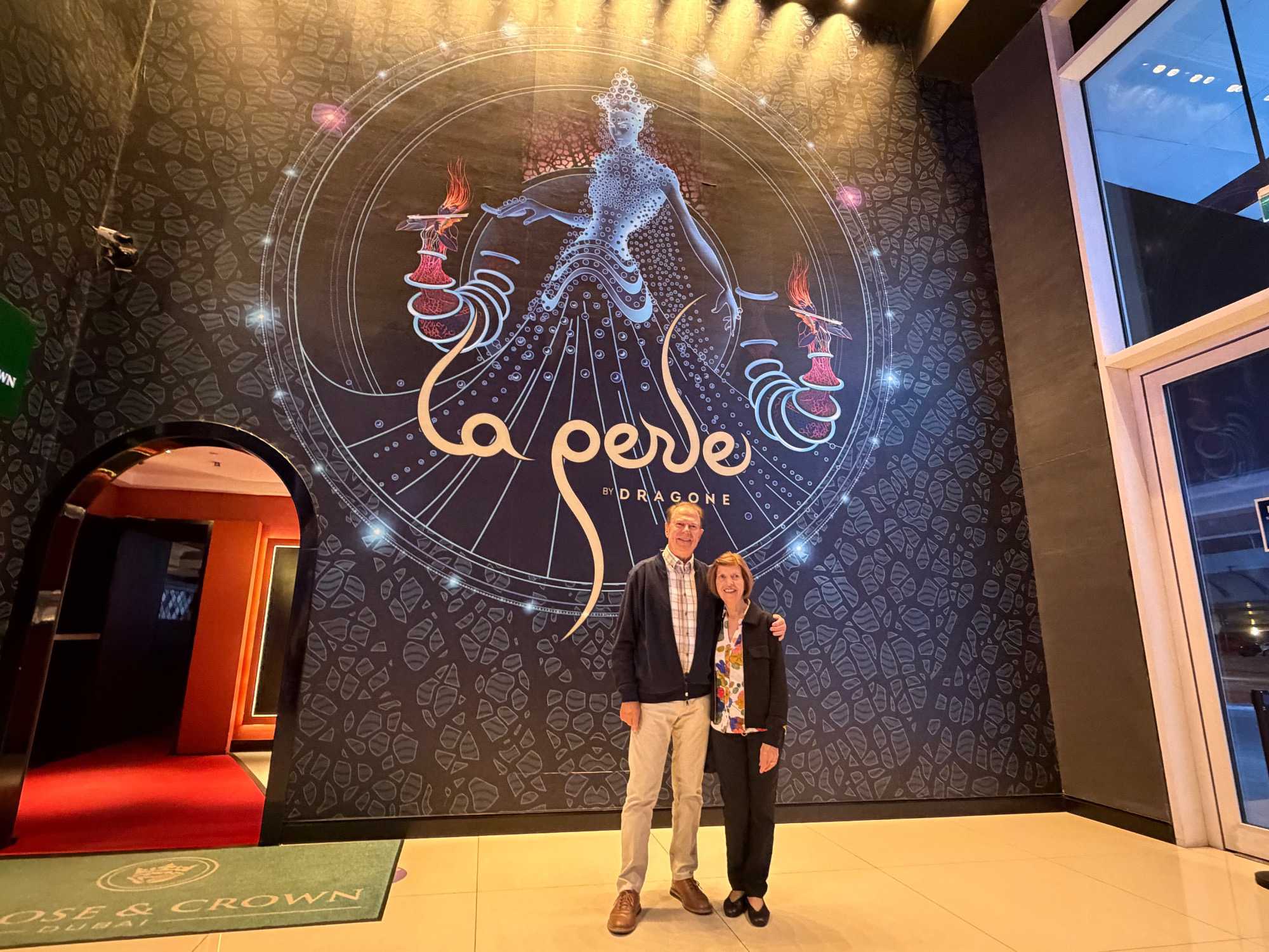 En fin d’après-midi, nous repartons, tous bien vêtus et souriants, pour assister au spectacle “La Perle” 💫, une création du célèbre Franco Dragone, metteur en scène belge mondialement reconnu pour ses chefs-d’œuvre “O” au Bellagio et “Le Rêve” au Wynn de Las Vegas. Quel spectacle grandiose, nous avons tous adoré!