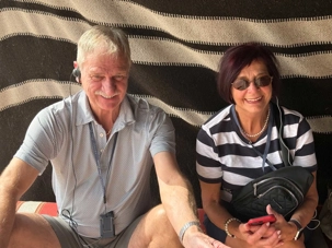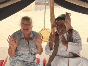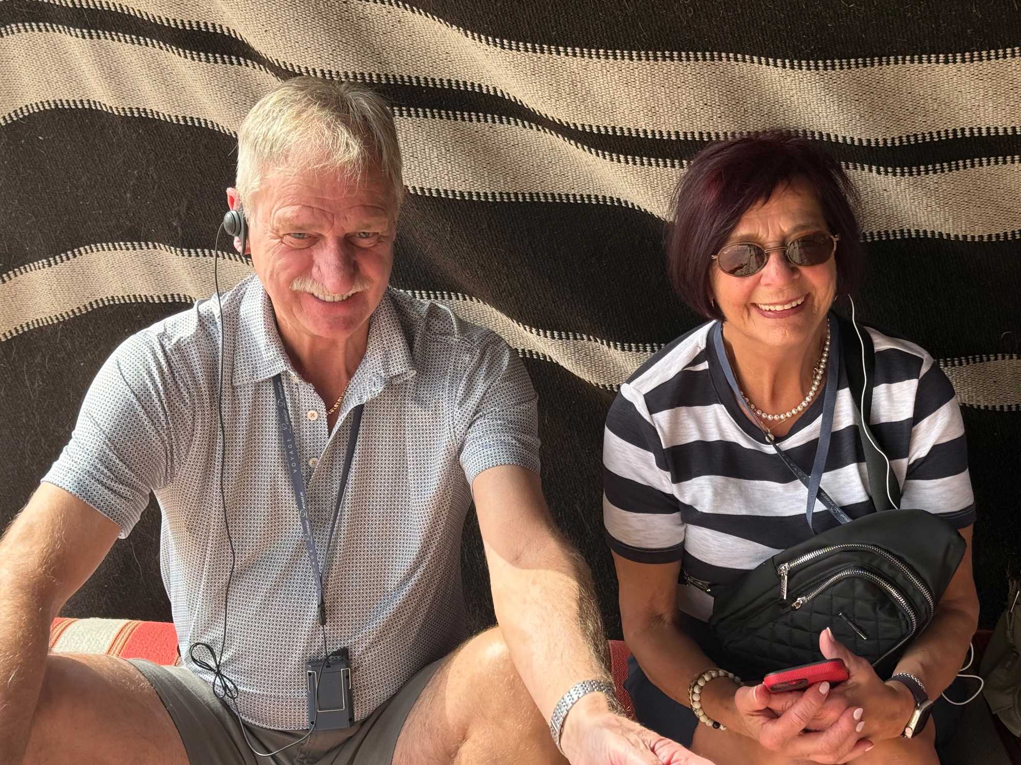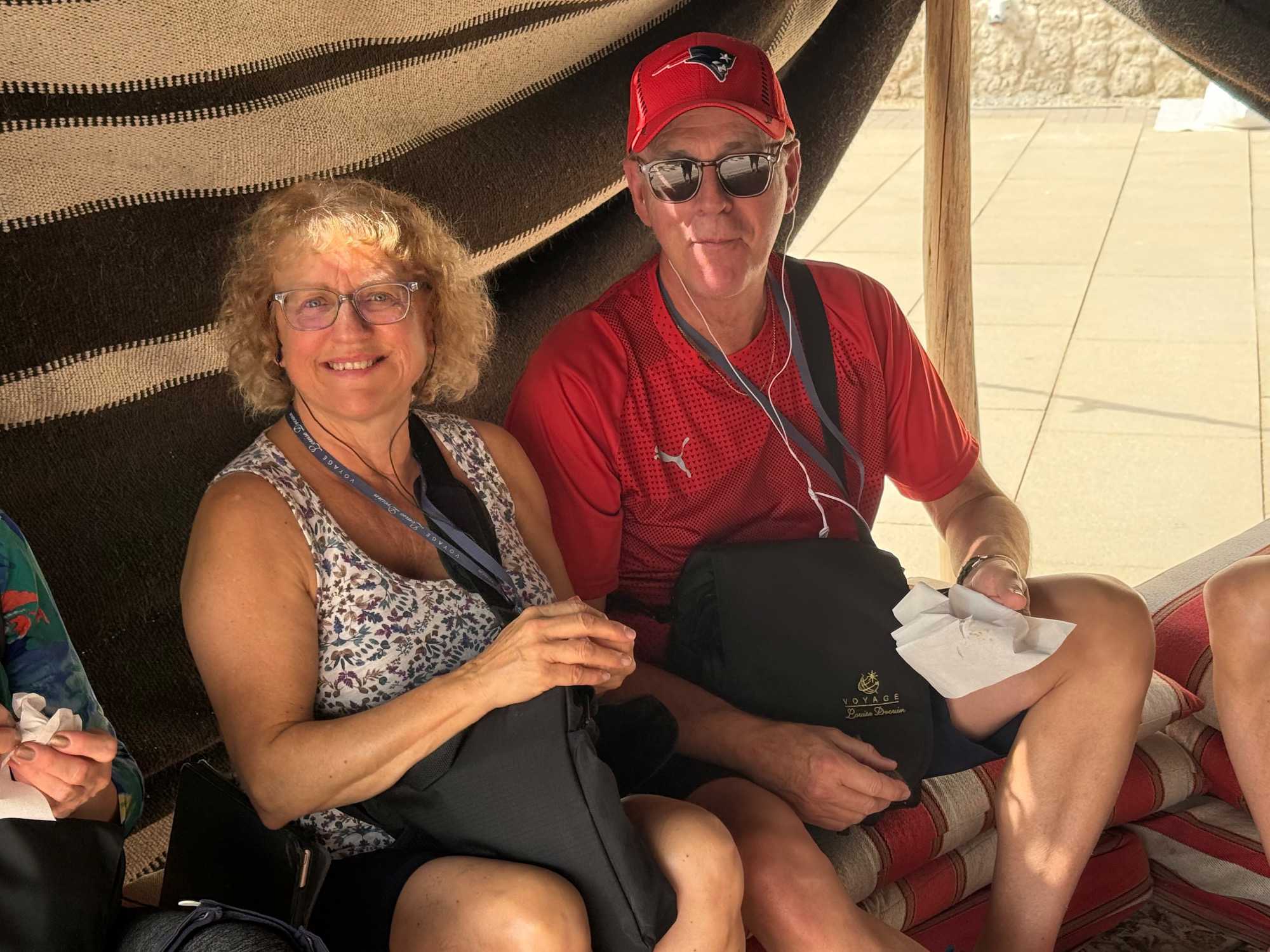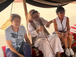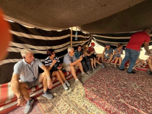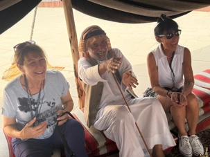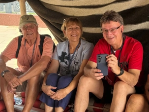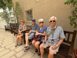 Le ciel est encore un peu voilé par une fine tempête de sable venue du désert 🌬️, mais le soleil perce doucement à travers ce léger brouillard doré. La température est d’environ 24 °C en ce début de matinée, mais elle atteindra sans doute un bon 30 °C vers midi 🌡️ — un bonheur comparé aux 50 °C écrasants de l’été, que nos guides évoquent avec humour 😅.