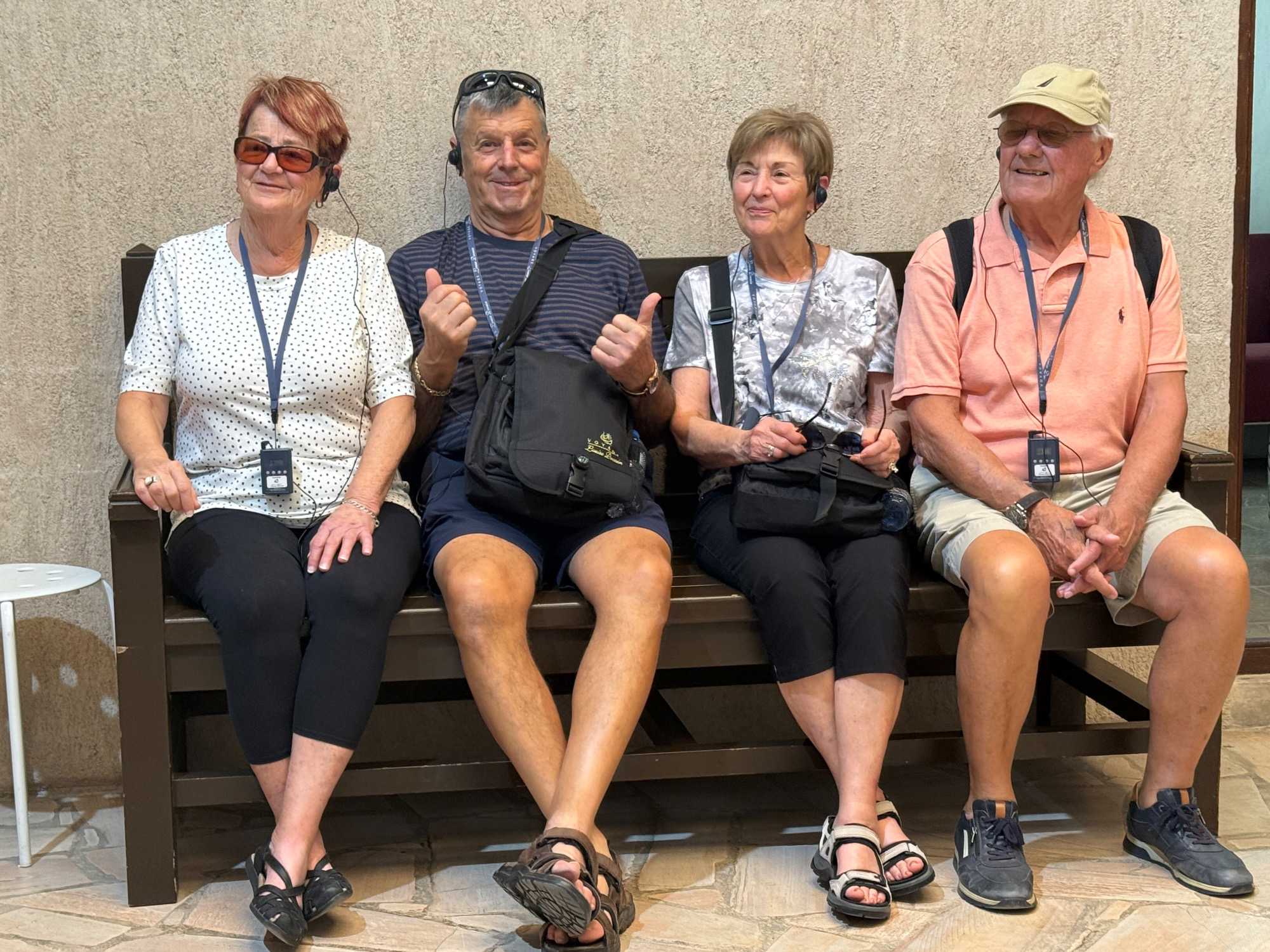 Le premier groupe monte à bord de son autobus 🚌, suivi du second avec un léger décalage de 15 minutes pour un départ fluide. Les véhicules sont confortables, climatisés, et l’ambiance à bord est déjà joyeuse et détendue. Dès que le moteur ronronne, nos guides prennent la parole 🎤 :