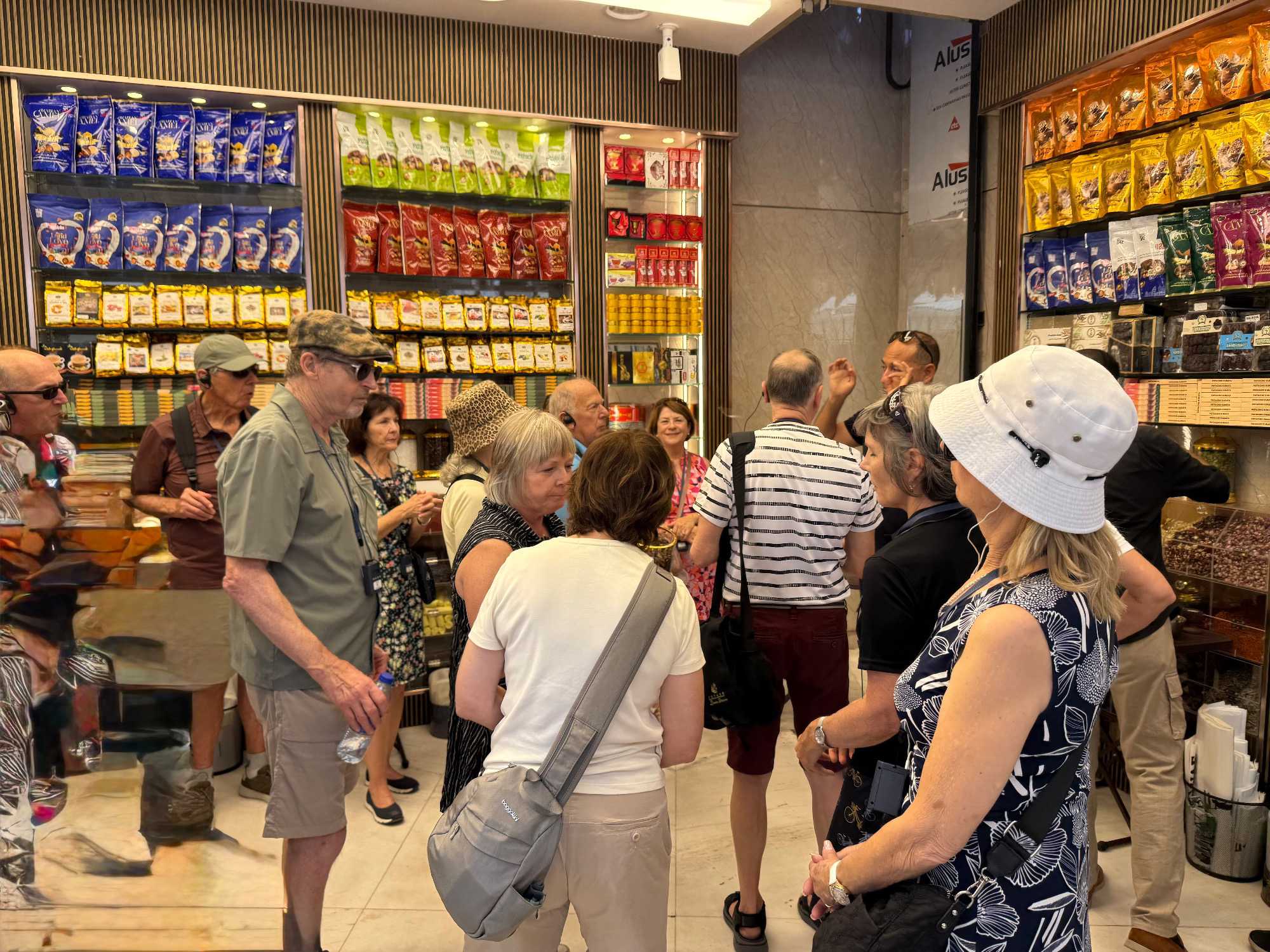 Nous sommes accueillis dans une boutique chaleureuse où le commerçant nous invite à découvrir ses trésors.