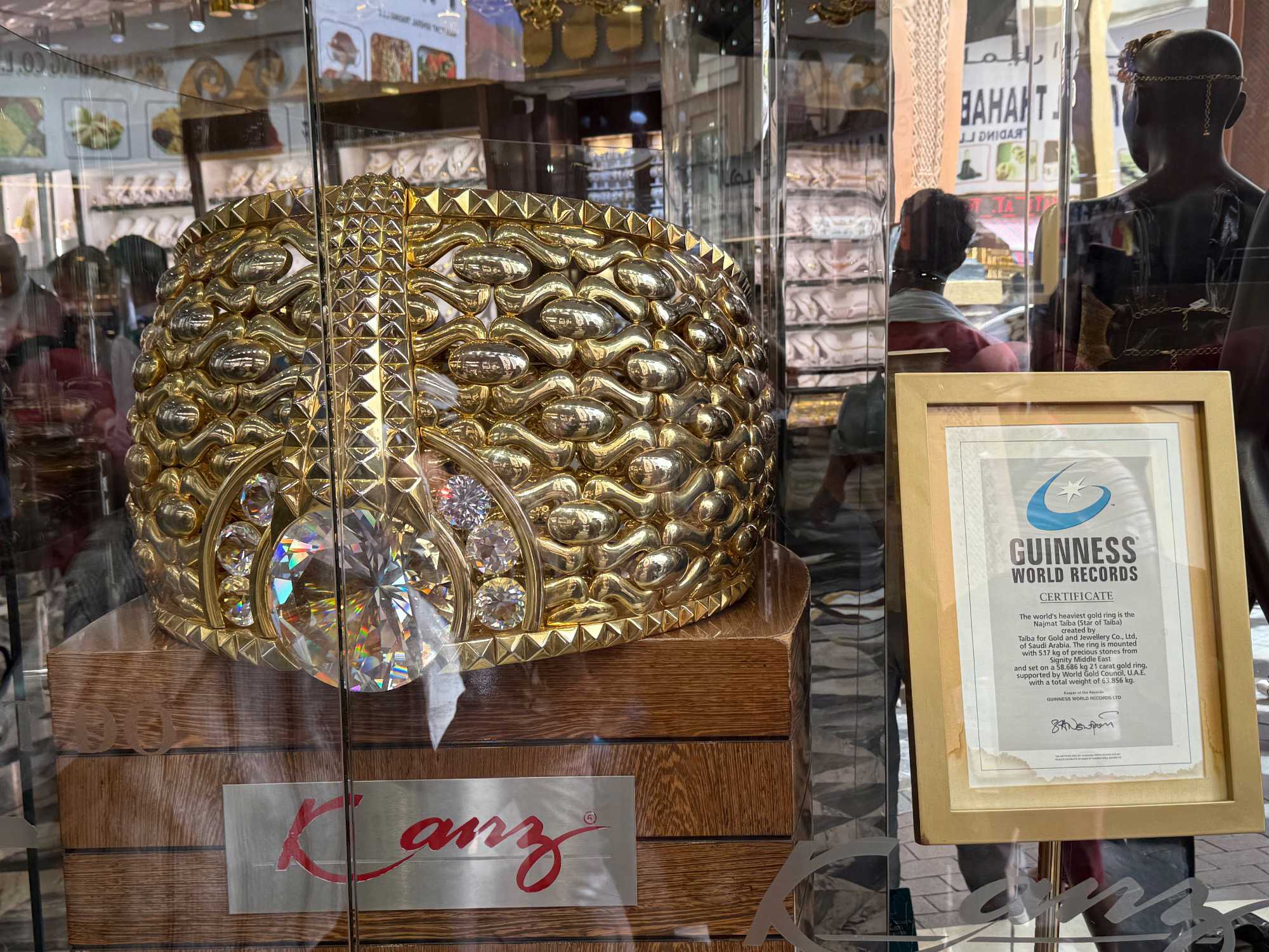 Nos guides nous montrent la plus grande bague en or du monde, inscrite au Guinness des records, pesant plus de 60 kg d’or pur 🤯. Un lieu fascinant où la démesure rencontre l’élégance.