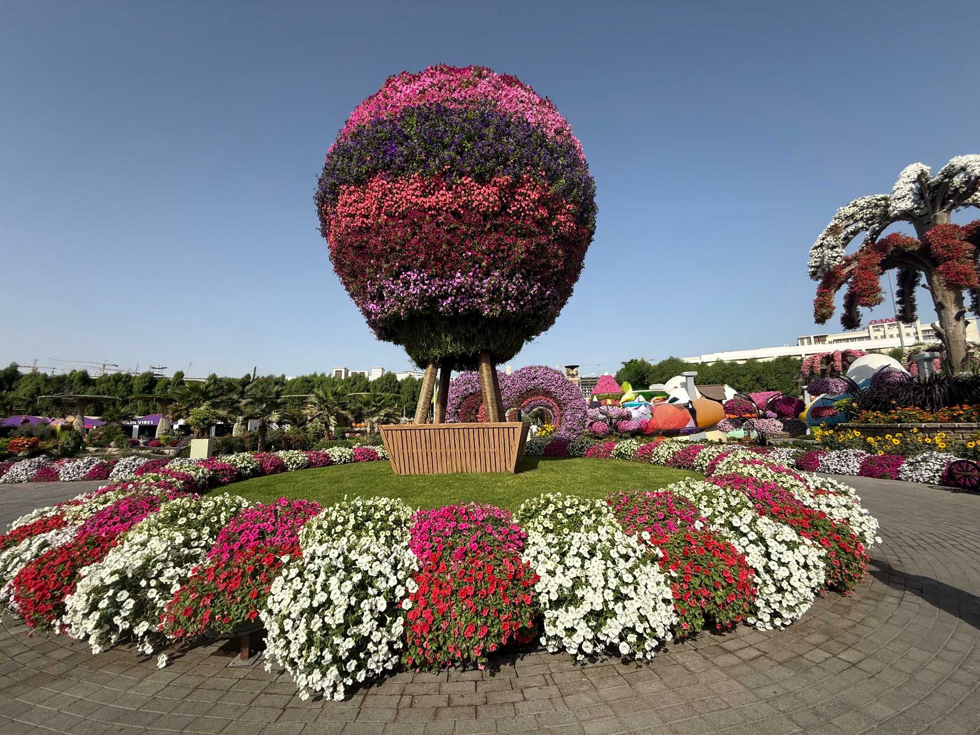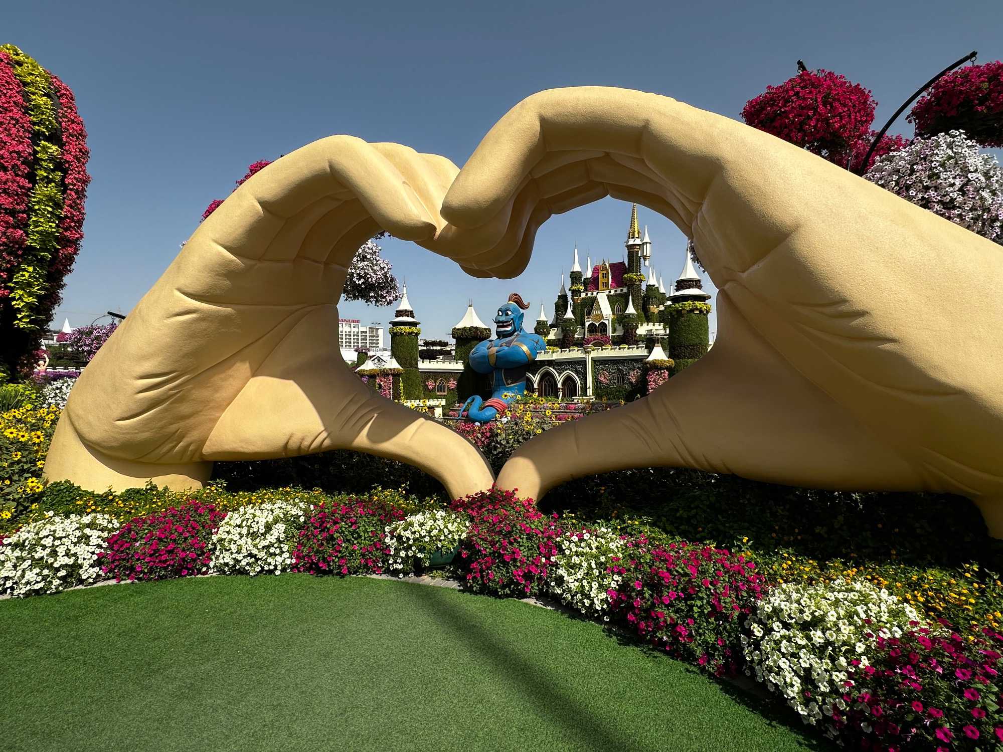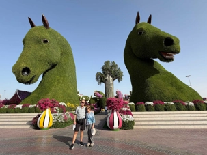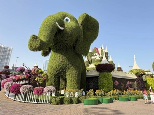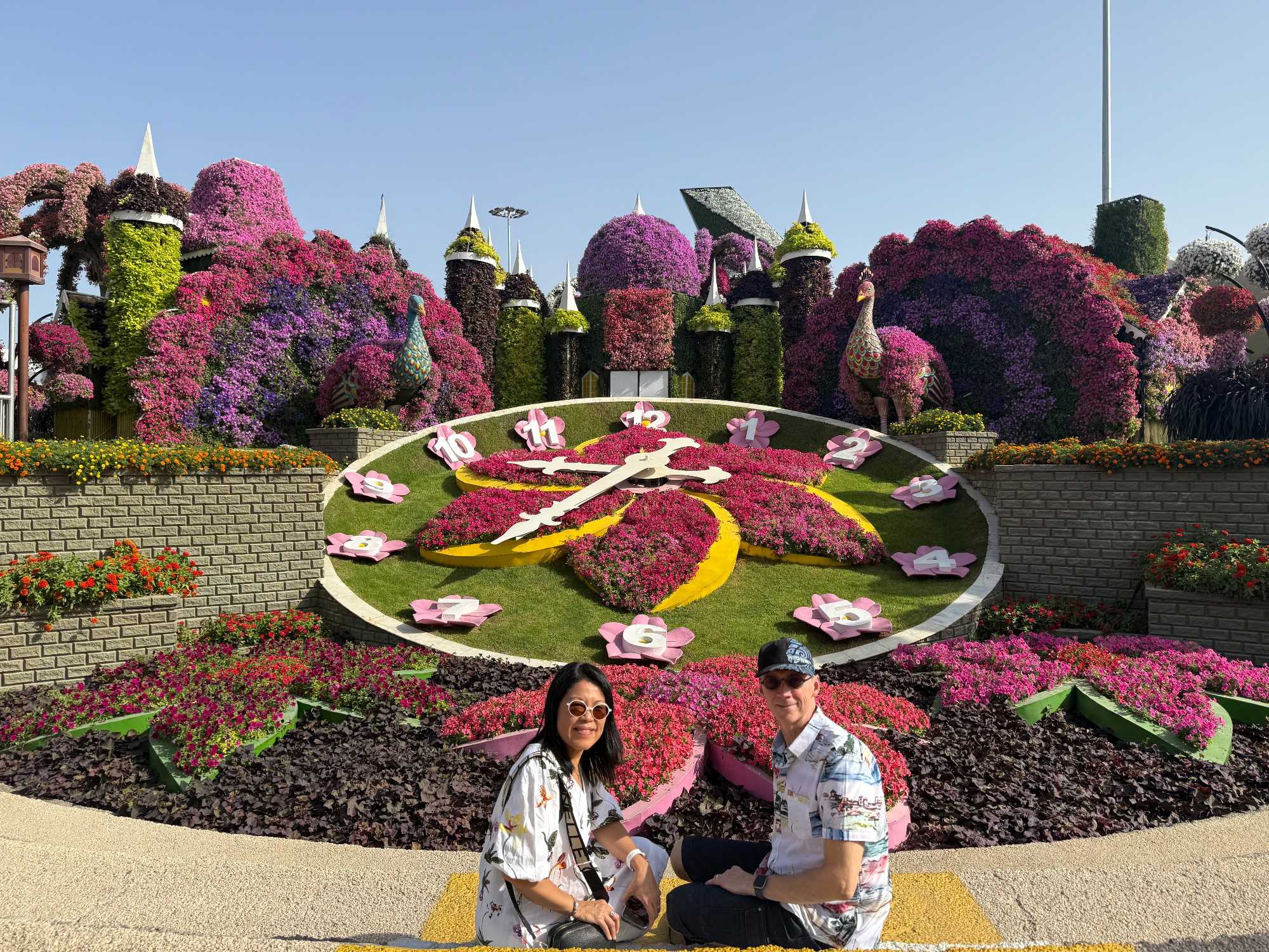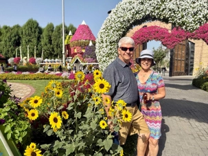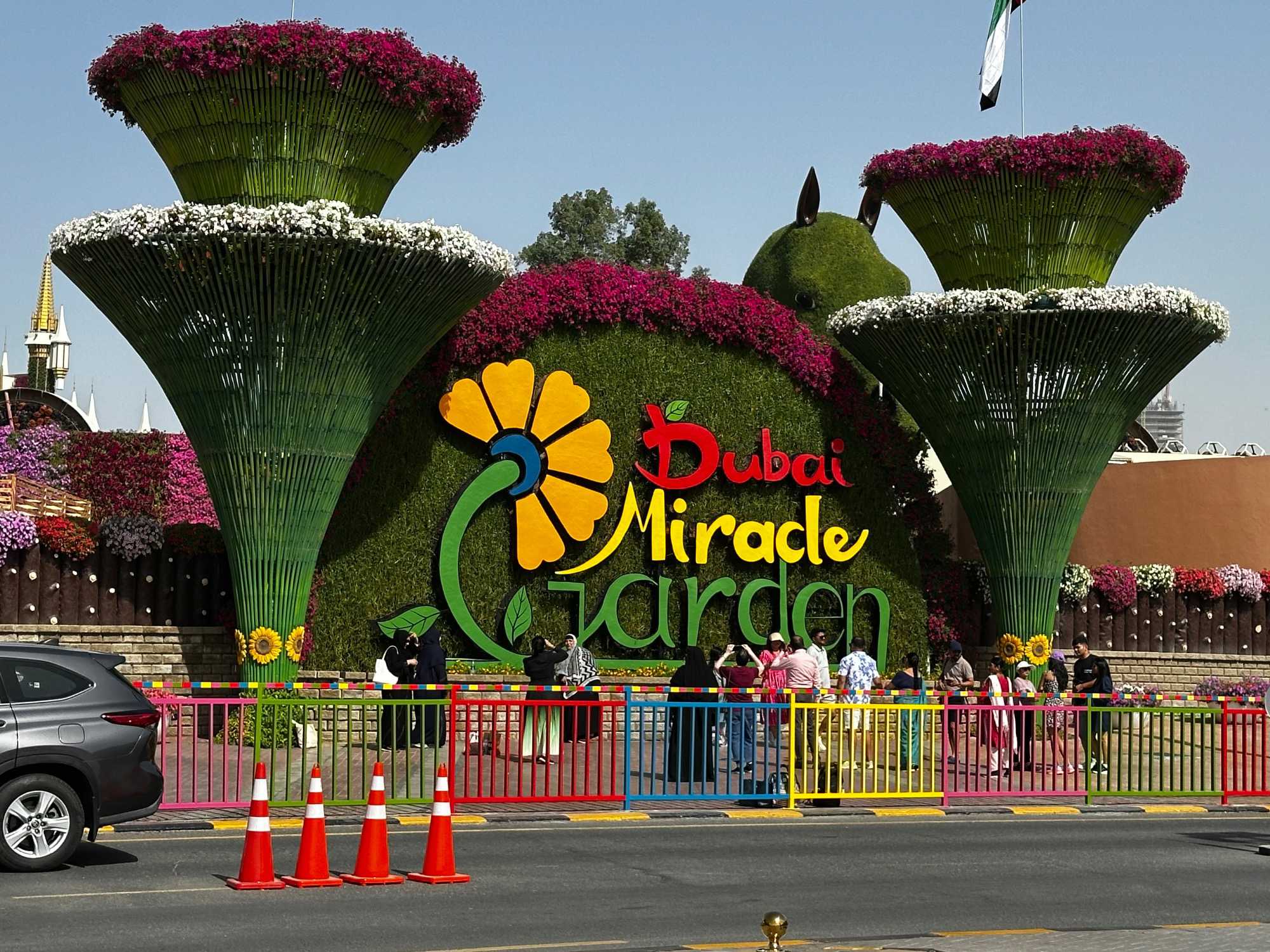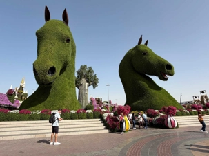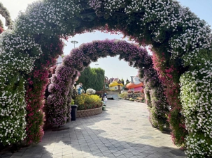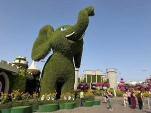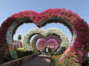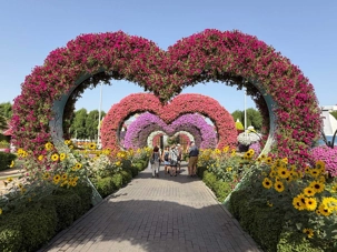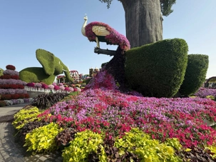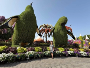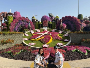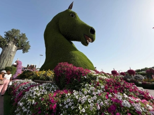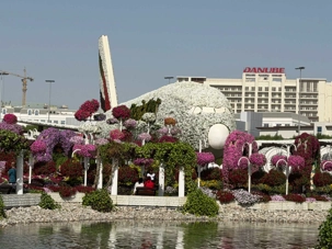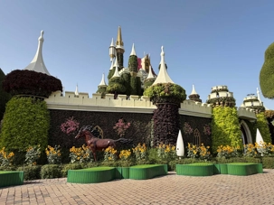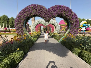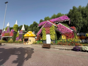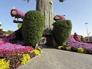 Nous prenons la route vers le Dubaï Miracle Garden, un lieu absolument féérique situé dans le quartier de Dubailand. Dès notre arrivée, c’est l’émerveillement total : une explosion de couleurs et de parfums nous enveloppe aussitôt 🌸💫.