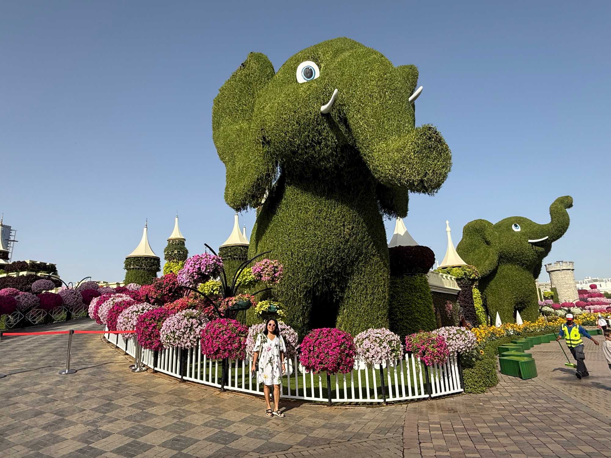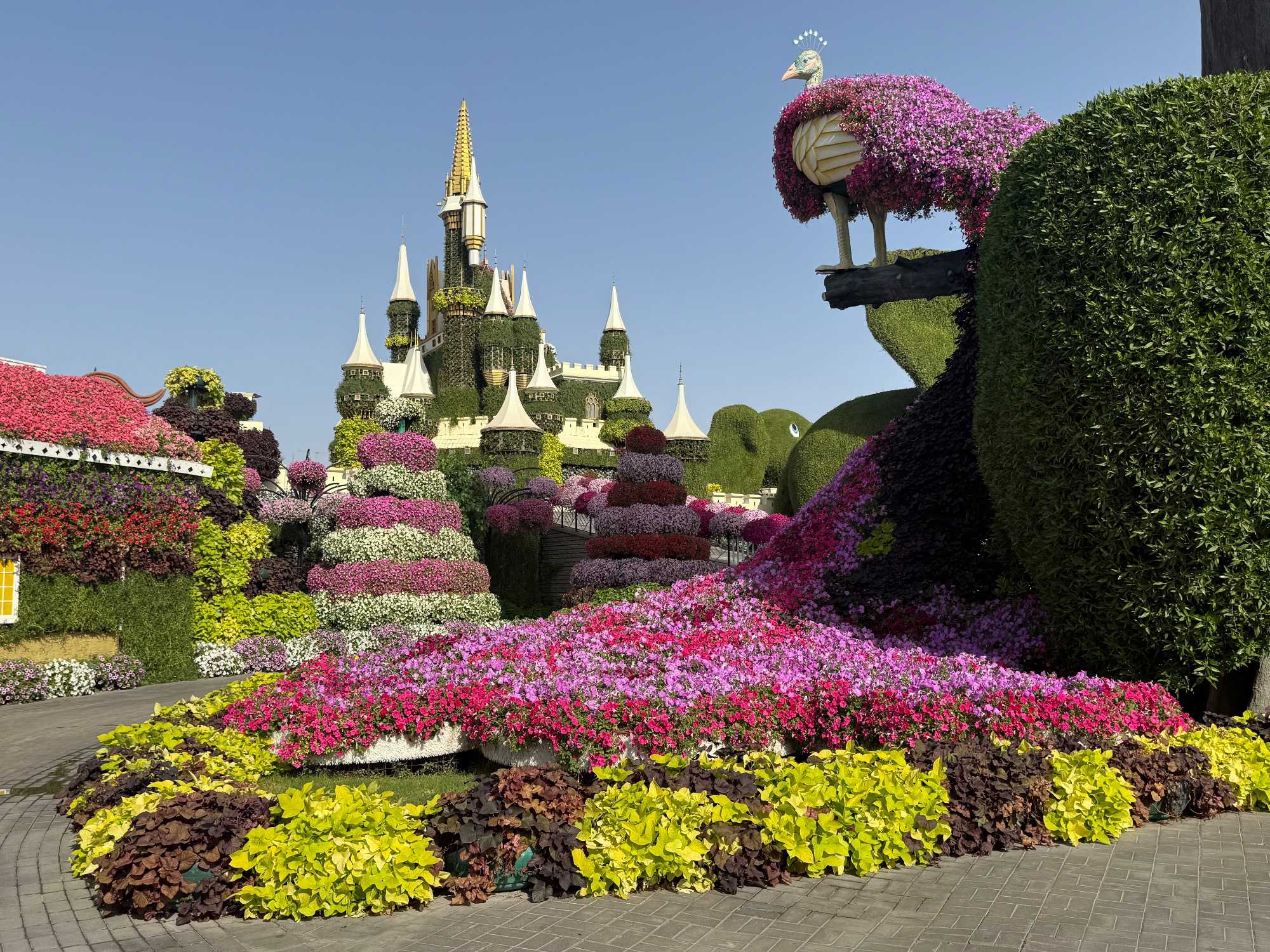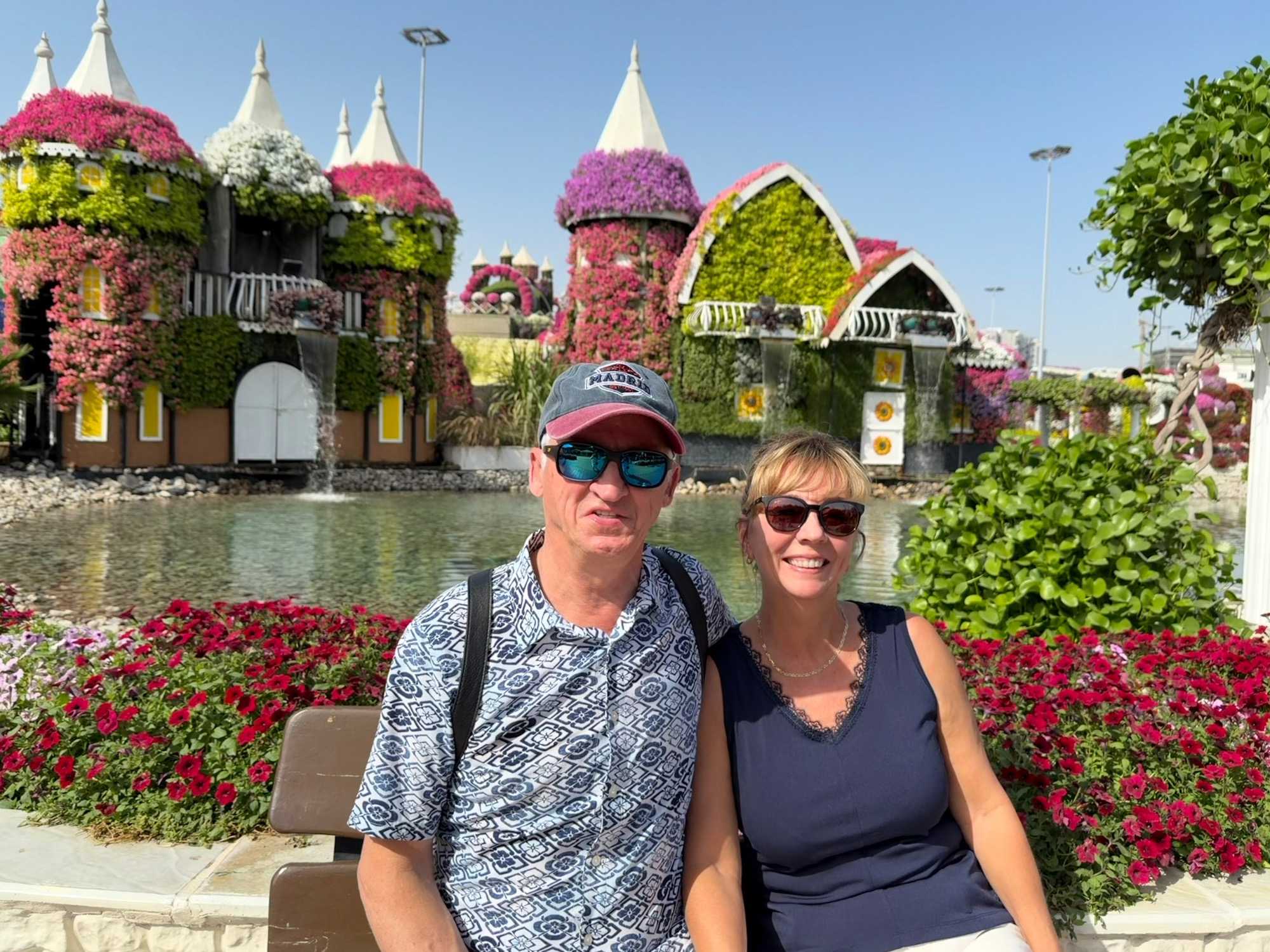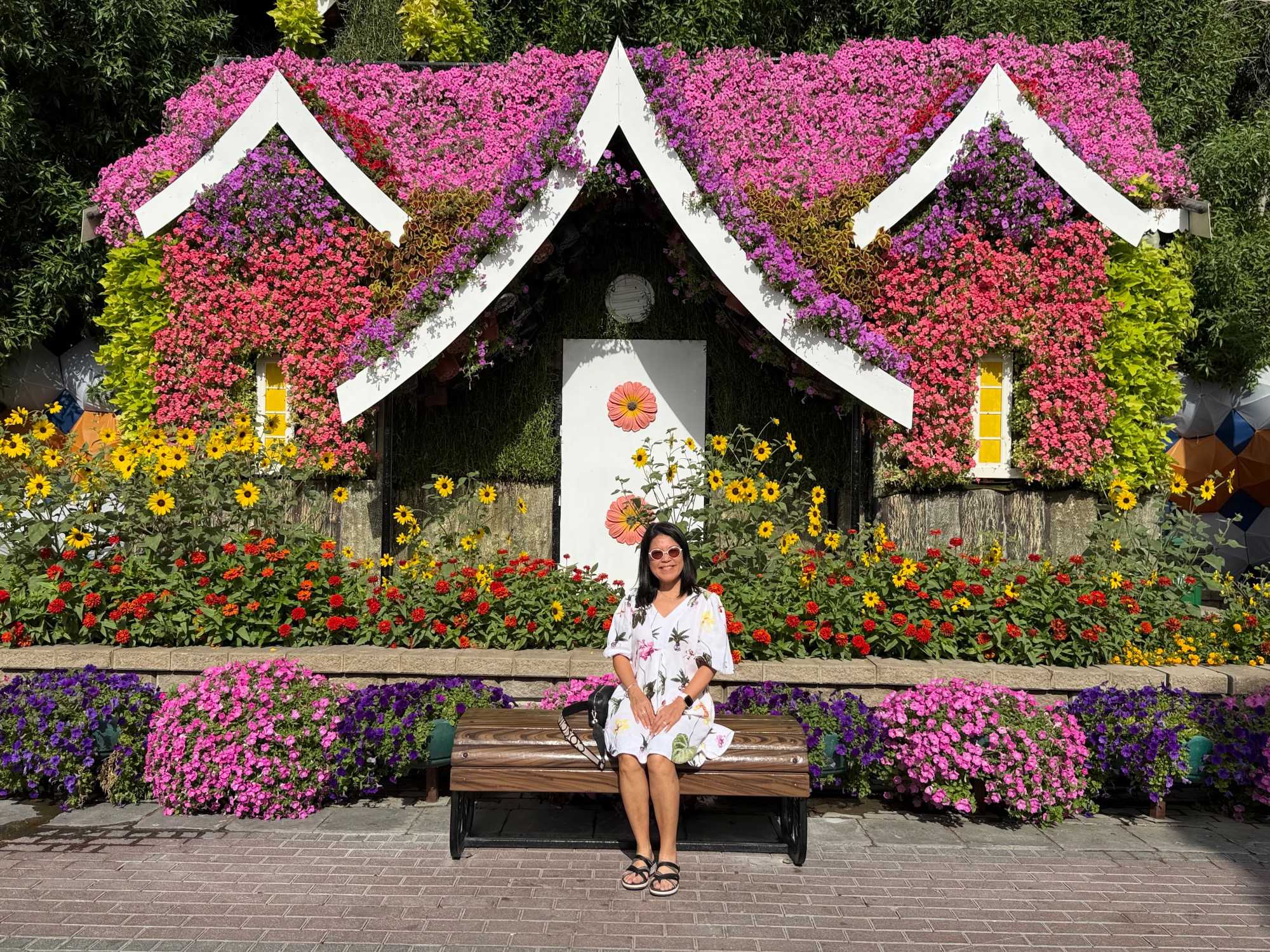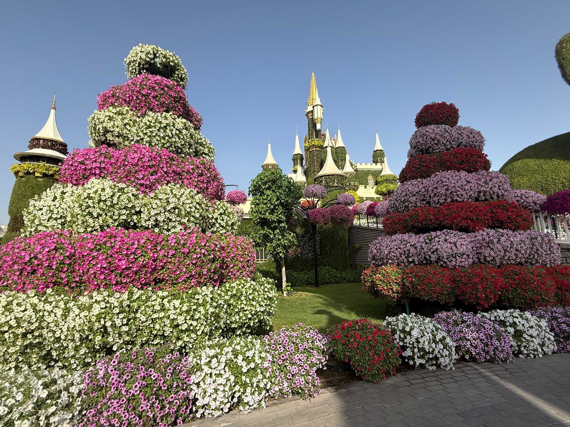 Nous prenons la route vers le Dubaï Miracle Garden, un lieu absolument féérique situé dans le quartier de Dubailand. Dès notre arrivée, c’est l’émerveillement total : une explosion de couleurs et de parfums nous enveloppe aussitôt 🌸💫.