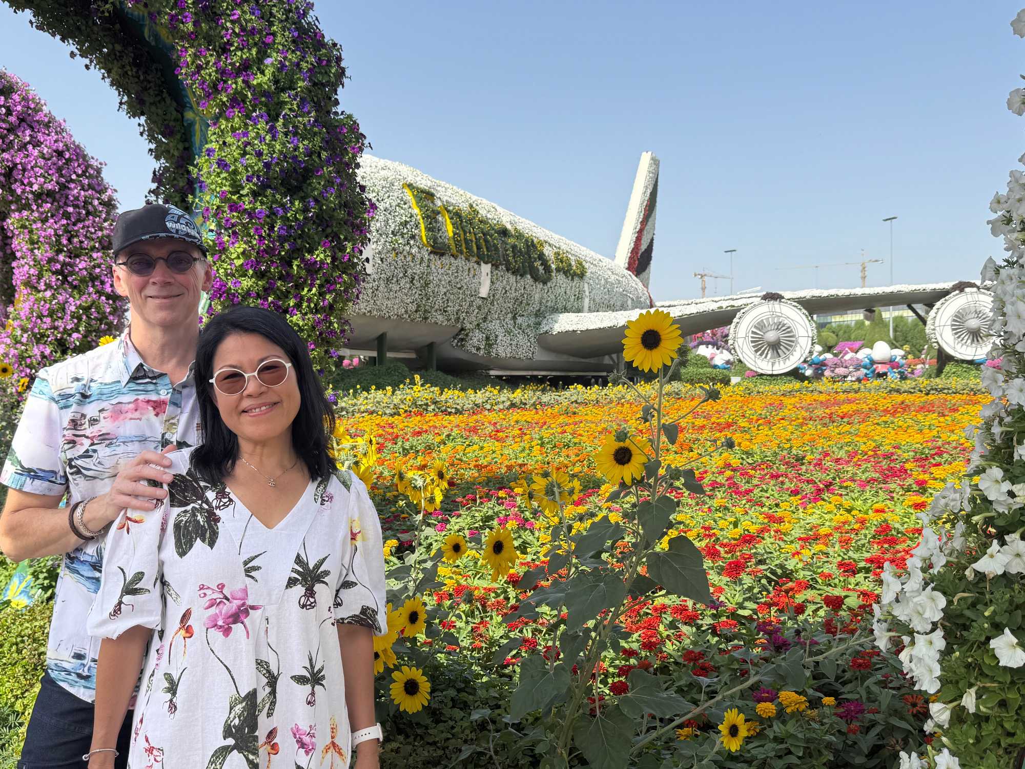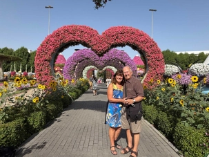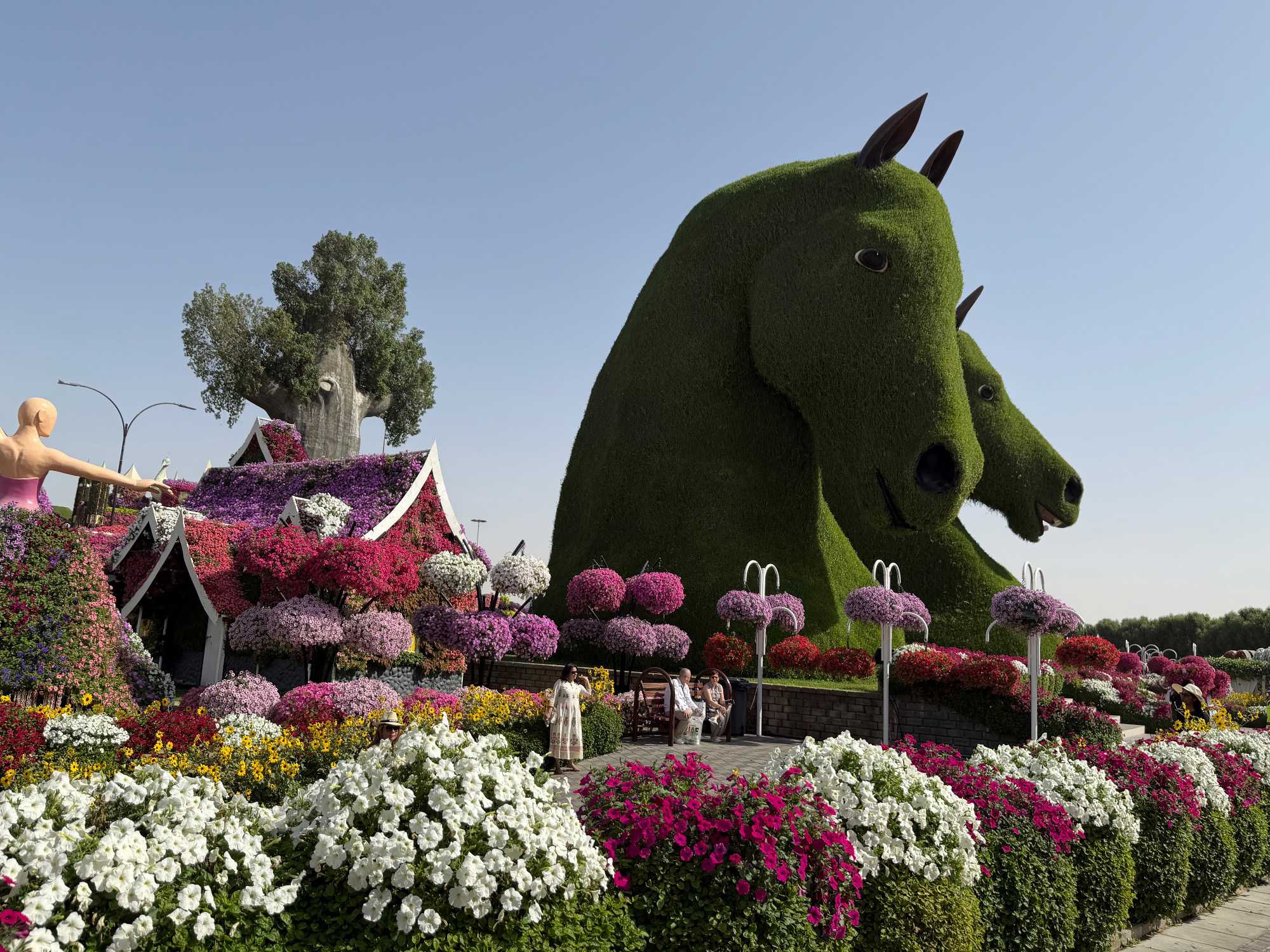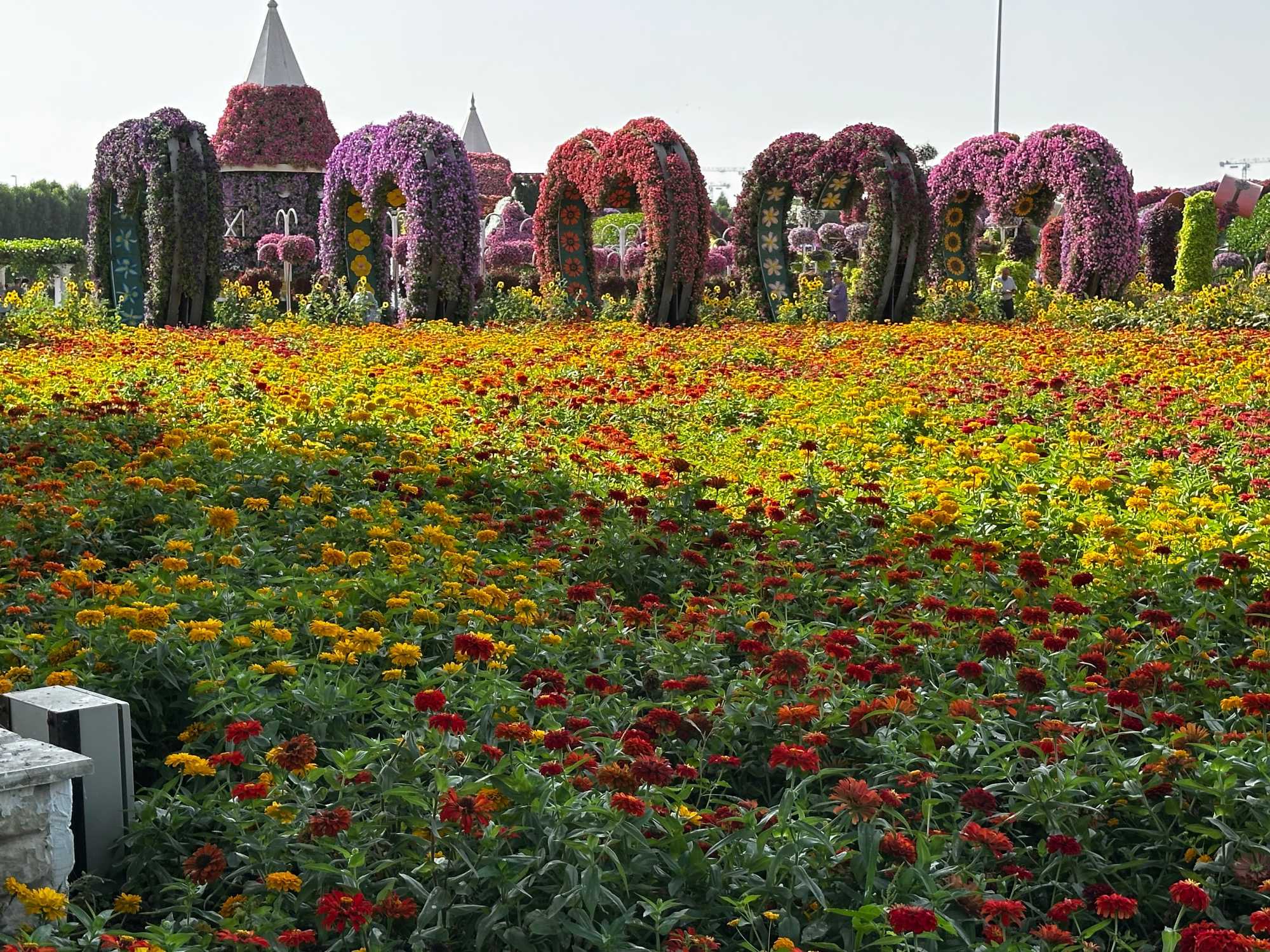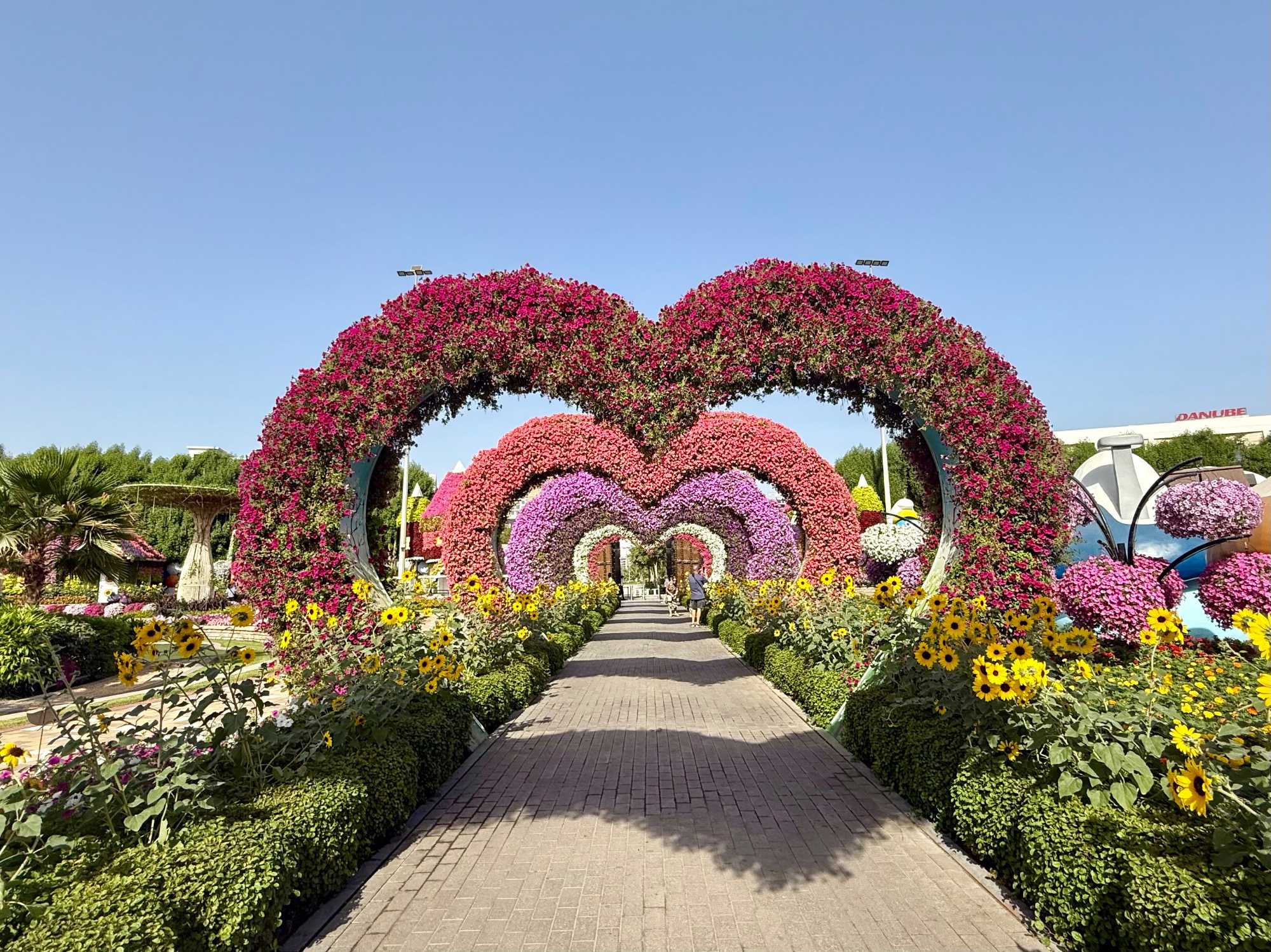 Nous prenons la route vers le Dubaï Miracle Garden, un lieu absolument féérique situé dans le quartier de Dubailand. Dès notre arrivée, c’est l’émerveillement total : une explosion de couleurs et de parfums nous enveloppe aussitôt 🌸💫.