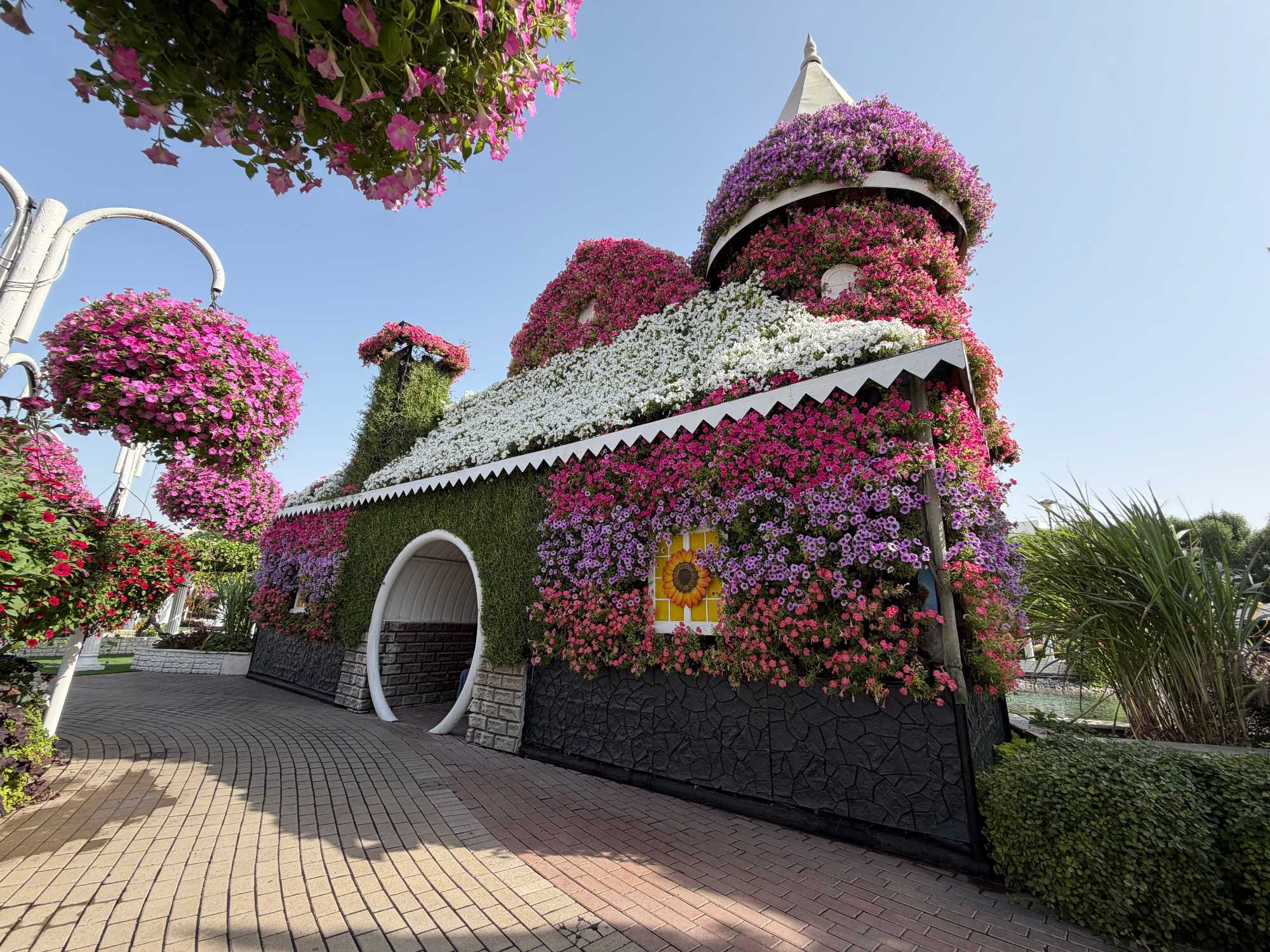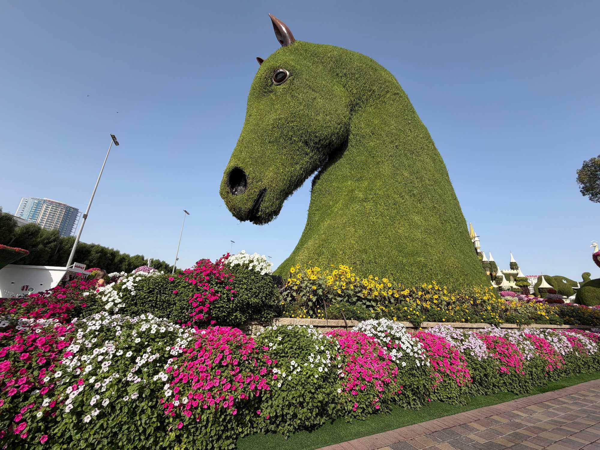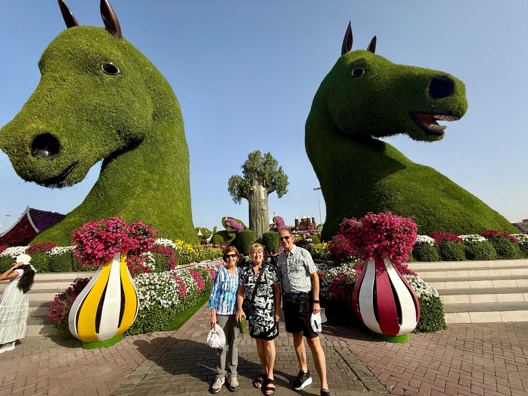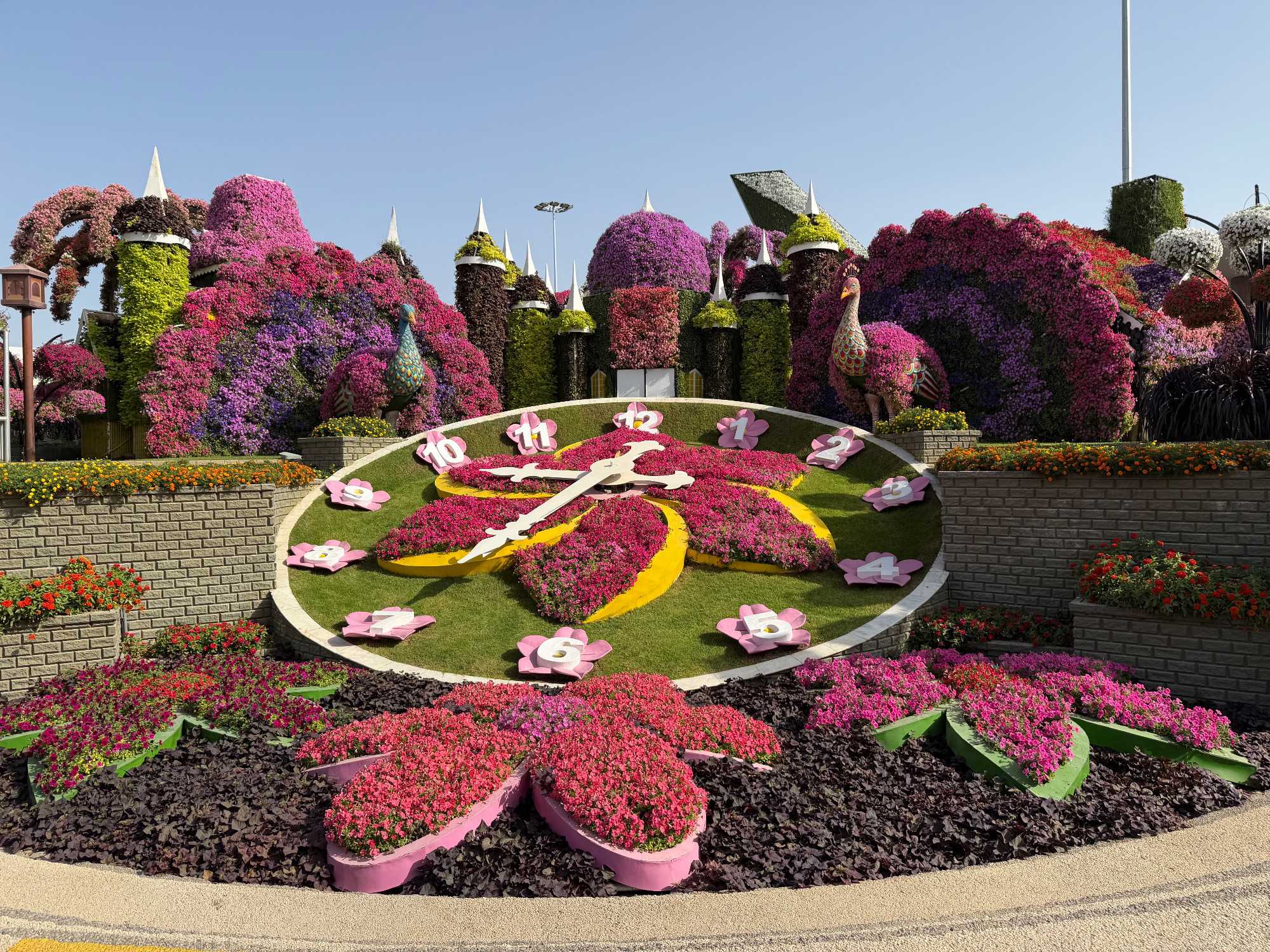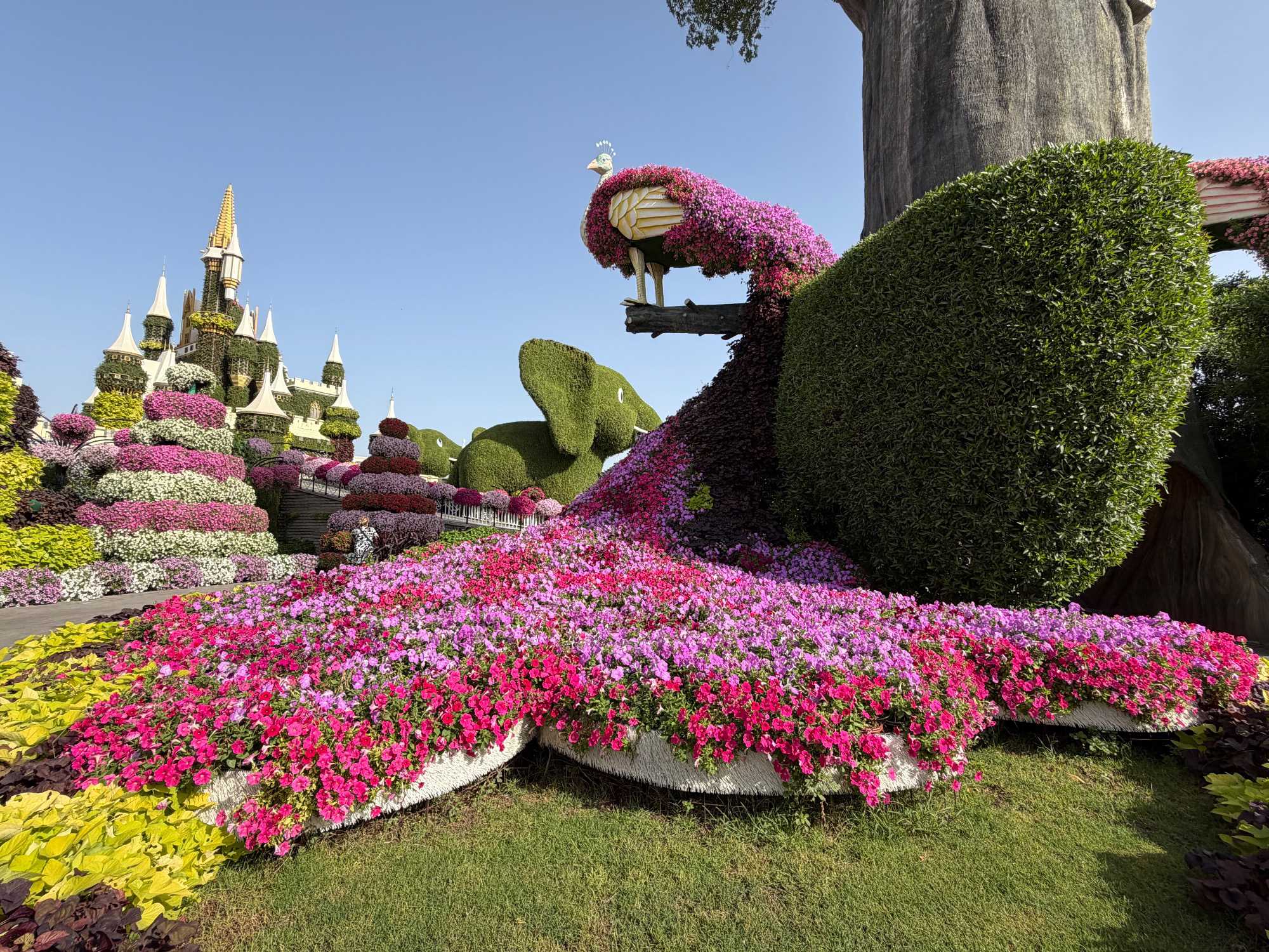 Nous prenons la route vers le Dubaï Miracle Garden, un lieu absolument féérique situé dans le quartier de Dubailand. Dès notre arrivée, c’est l’émerveillement total : une explosion de couleurs et de parfums nous enveloppe aussitôt 🌸💫.