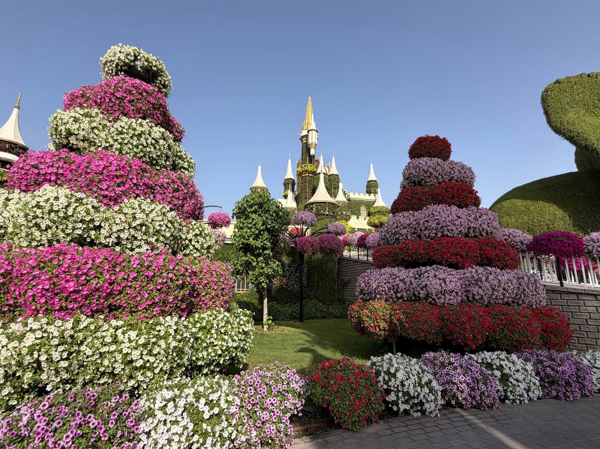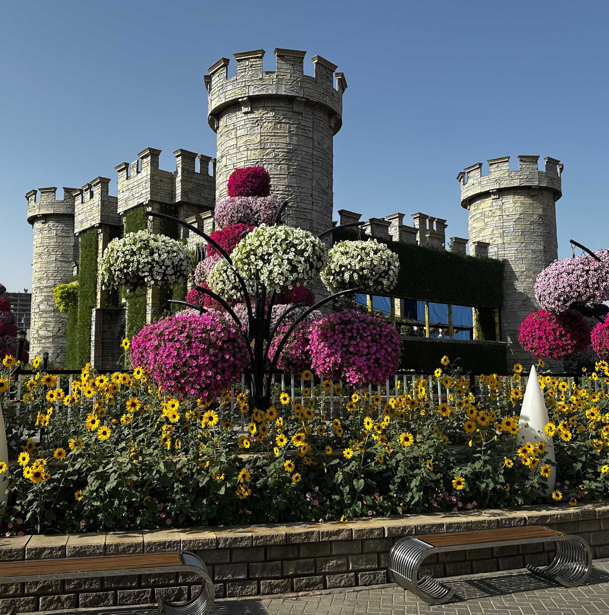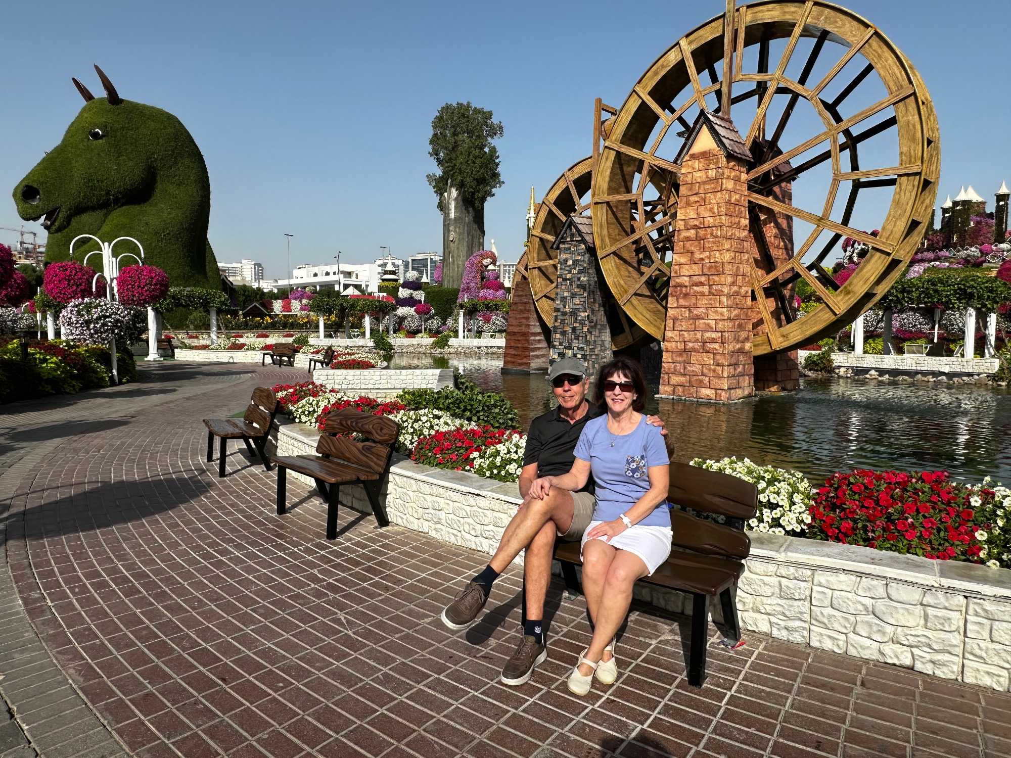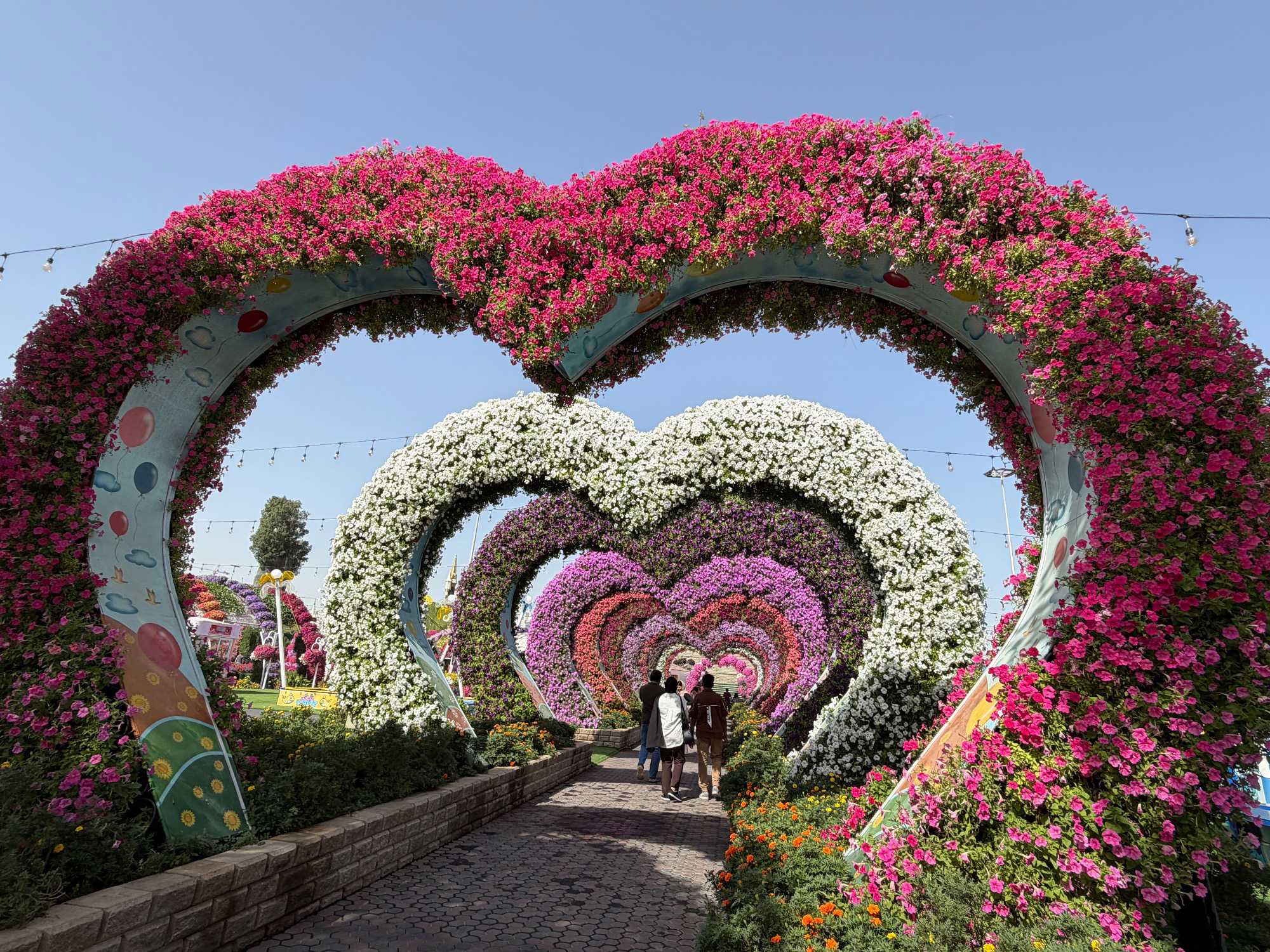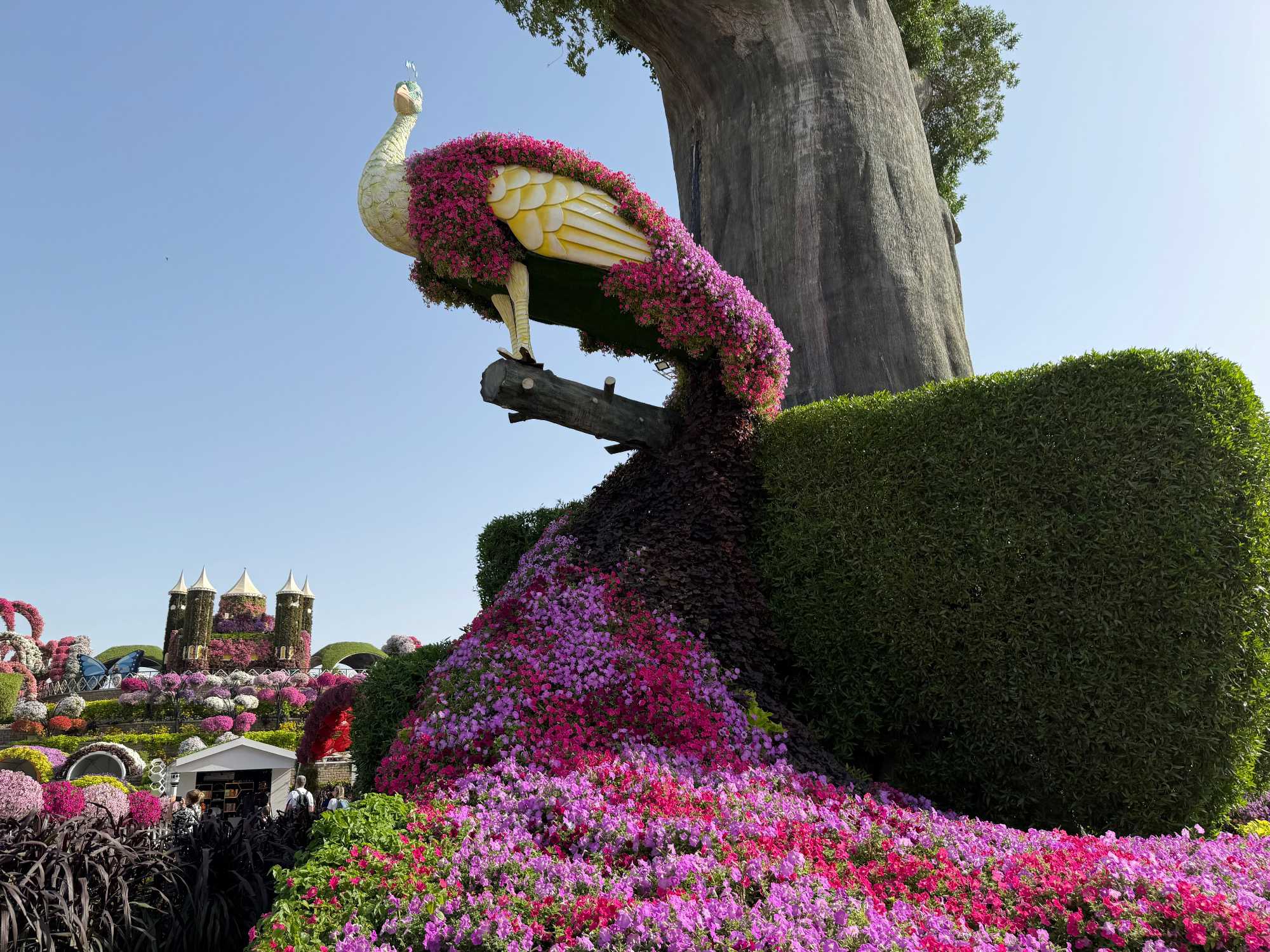 Nous prenons la route vers le Dubaï Miracle Garden, un lieu absolument féérique situé dans le quartier de Dubailand. Dès notre arrivée, c’est l’émerveillement total : une explosion de couleurs et de parfums nous enveloppe aussitôt 🌸💫.