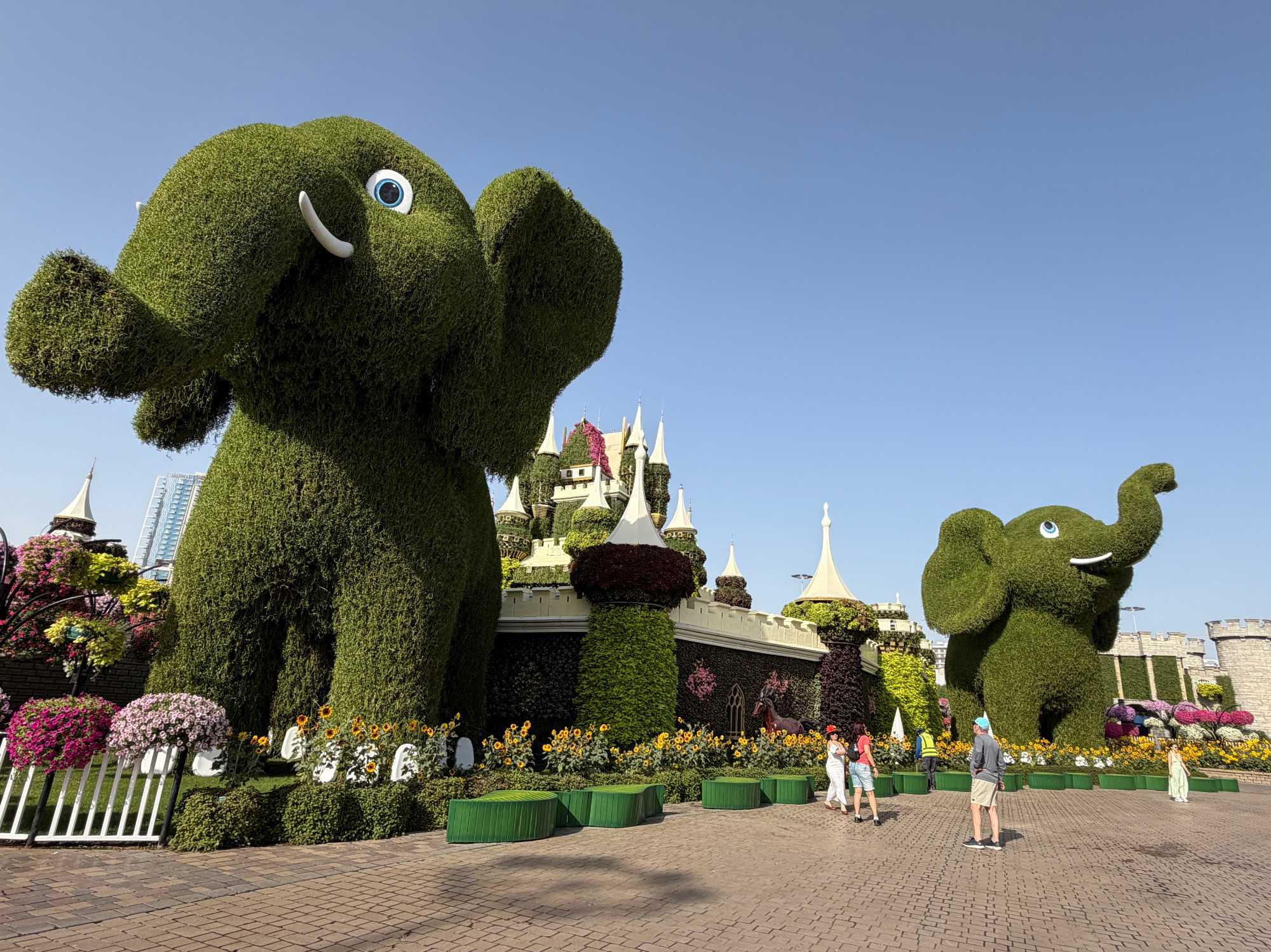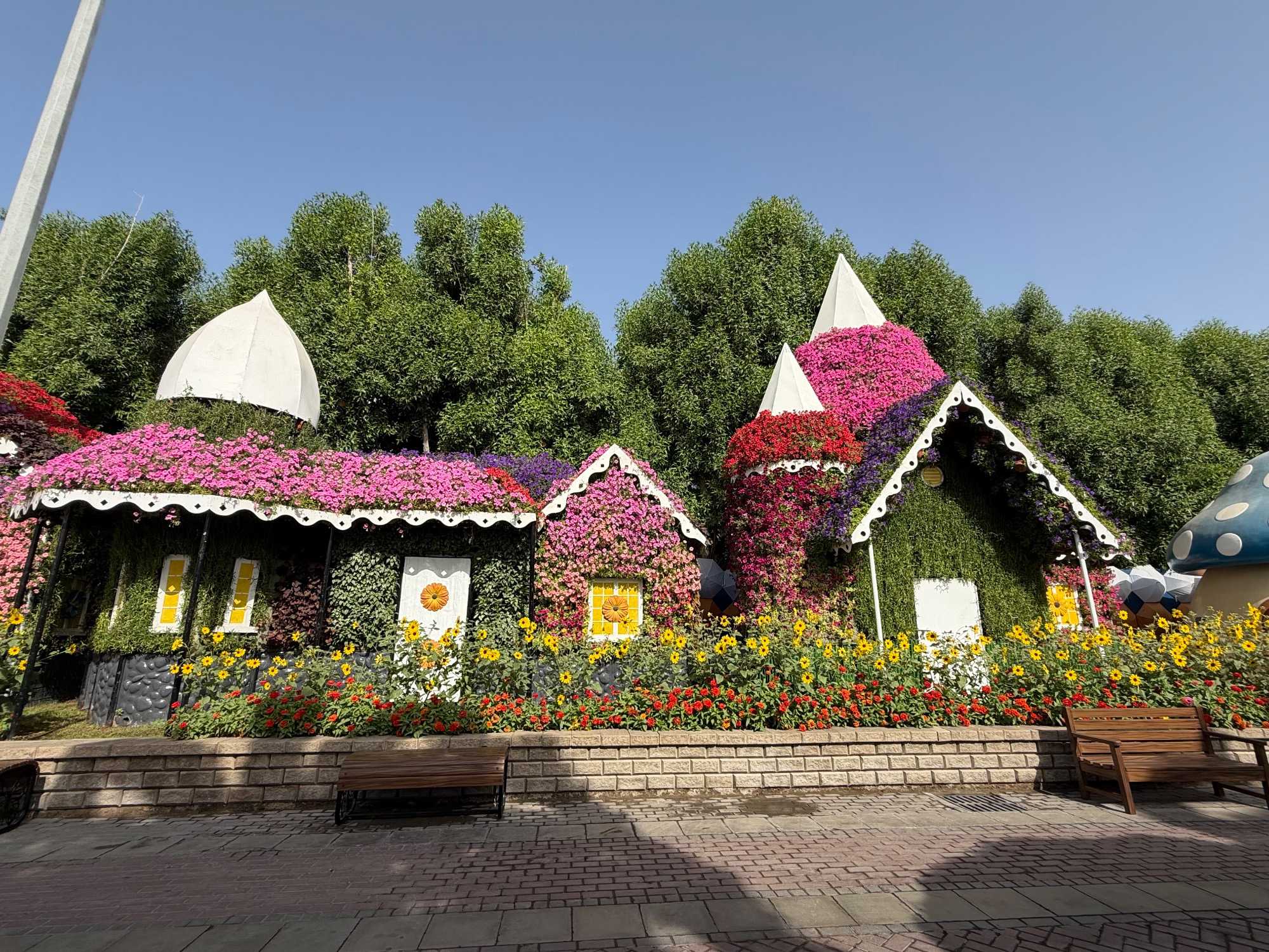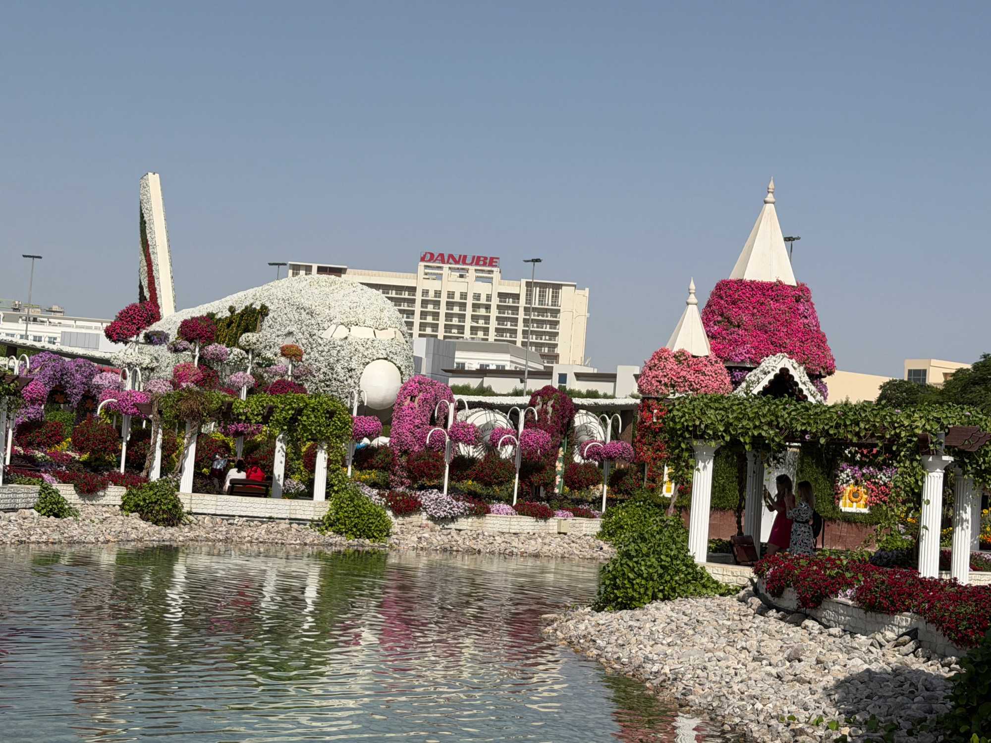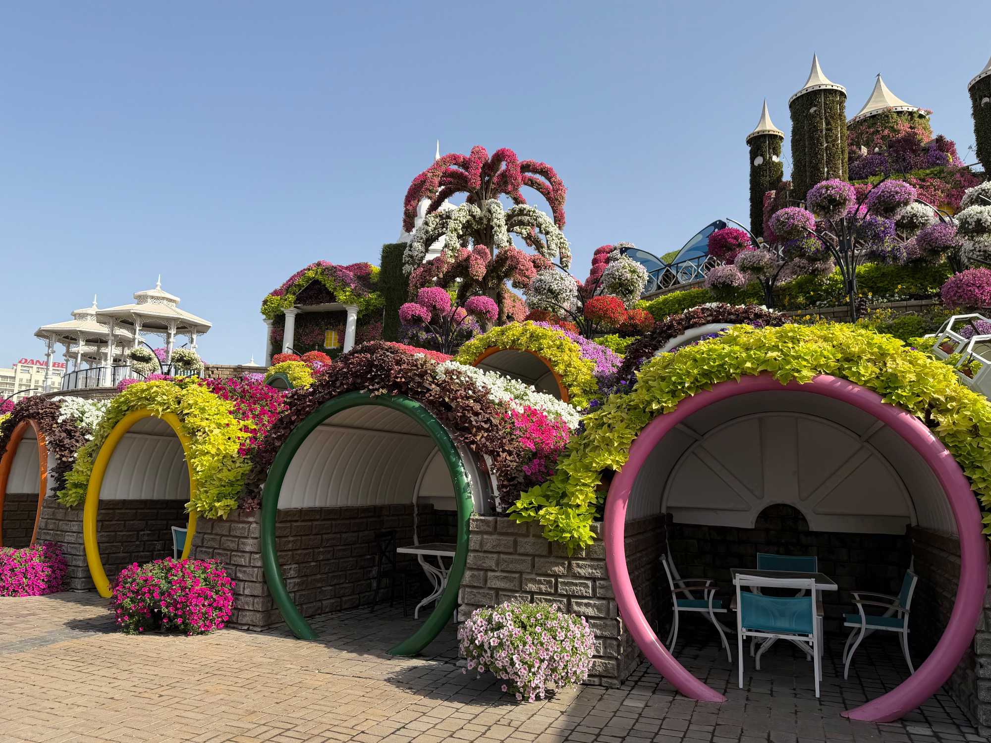 Nous prenons la route vers le Dubaï Miracle Garden, un lieu absolument féérique situé dans le quartier de Dubailand. Dès notre arrivée, c’est l’émerveillement total : une explosion de couleurs et de parfums nous enveloppe aussitôt 🌸💫.