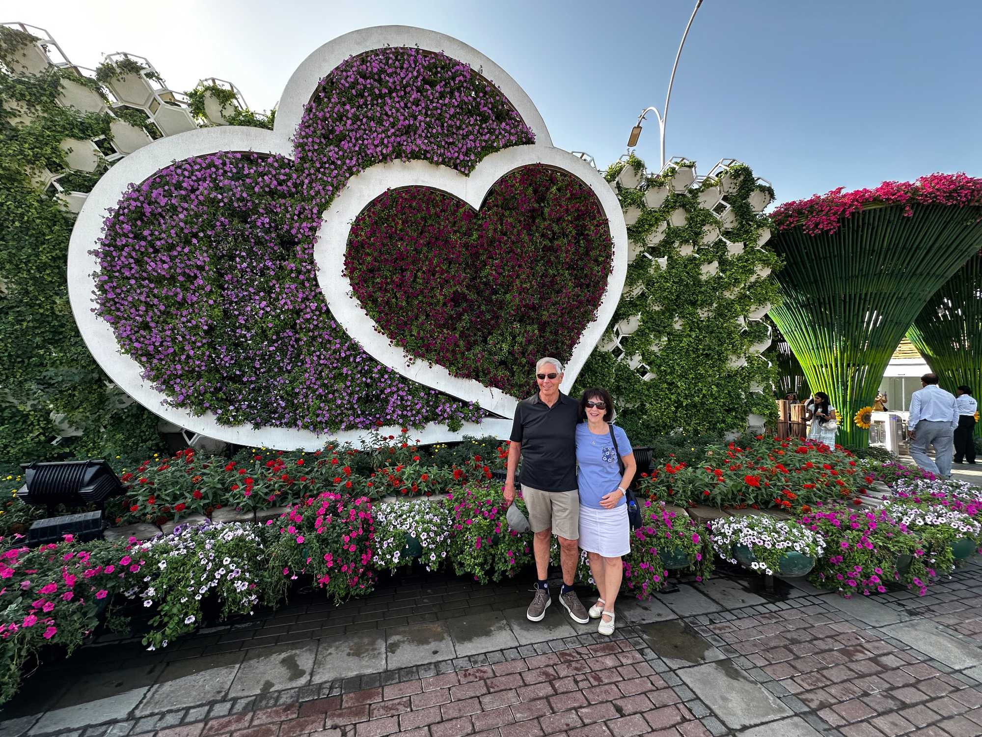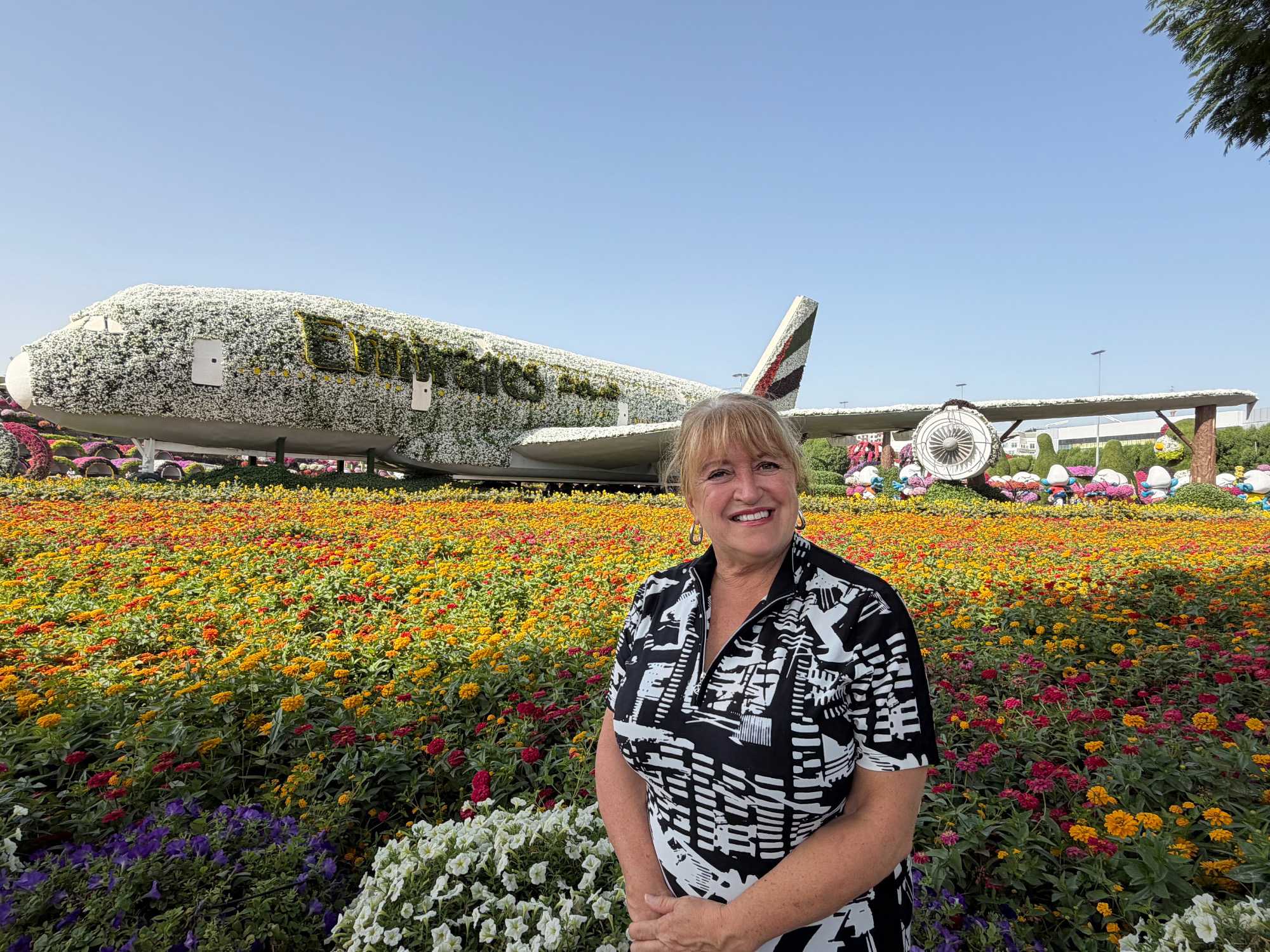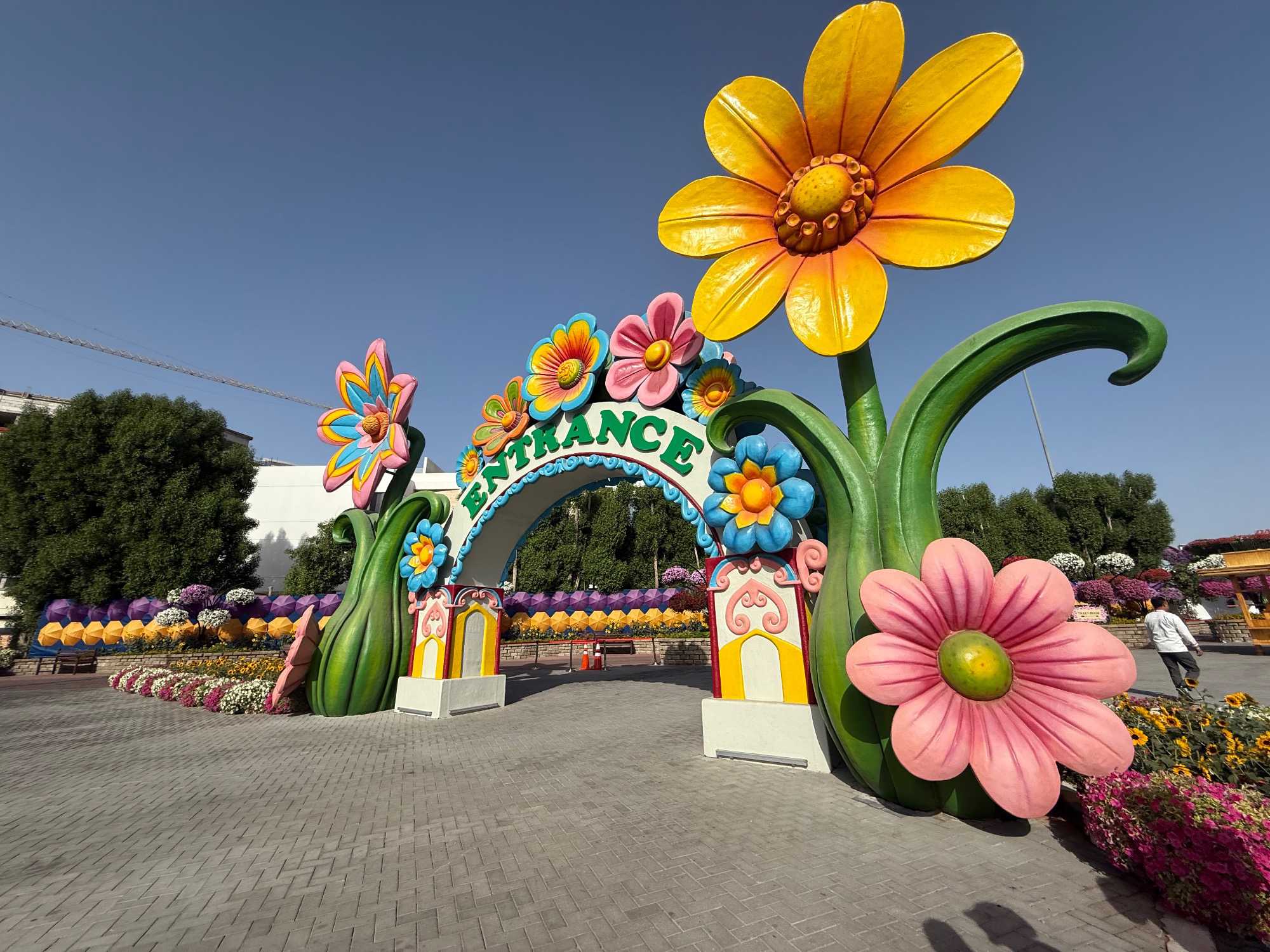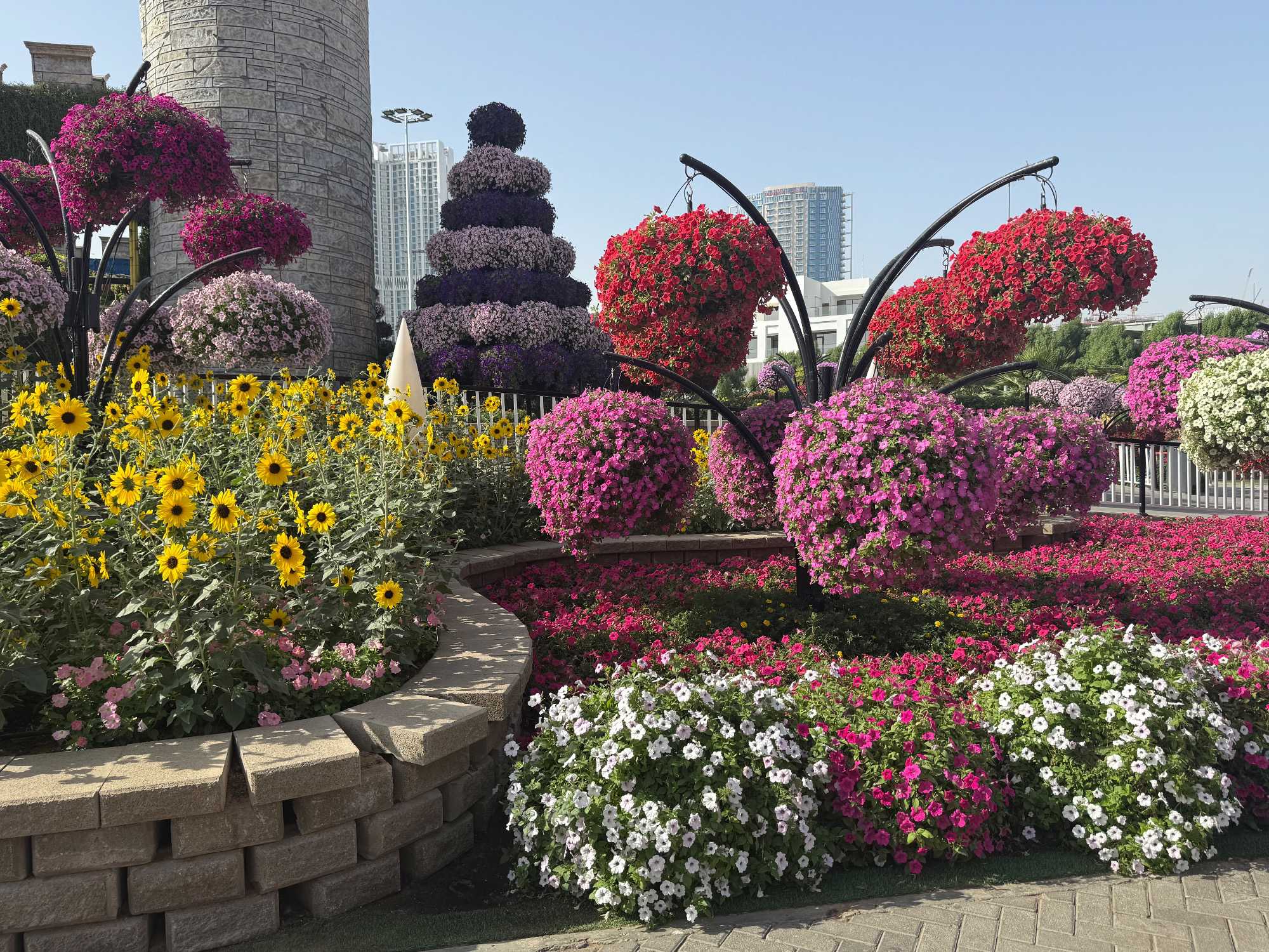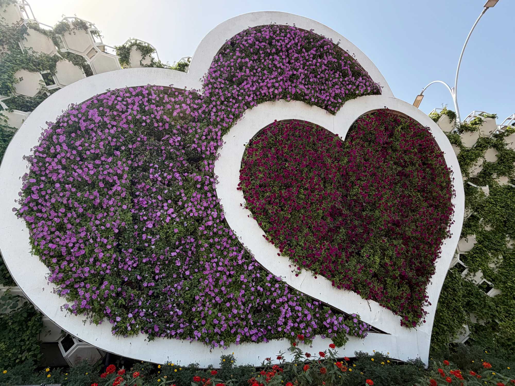 Nous prenons la route vers le Dubaï Miracle Garden, un lieu absolument féérique situé dans le quartier de Dubailand. Dès notre arrivée, c’est l’émerveillement total : une explosion de couleurs et de parfums nous enveloppe aussitôt 🌸💫.