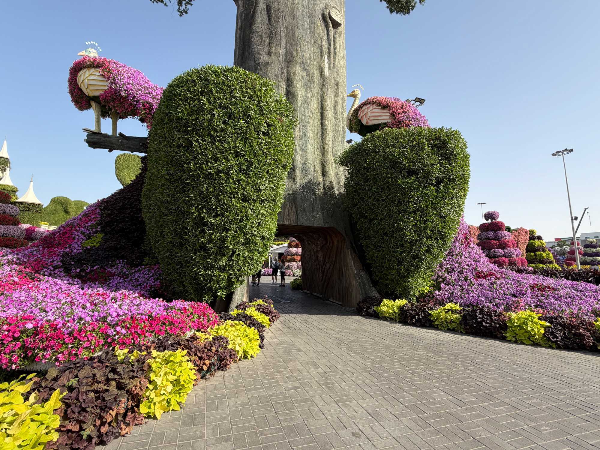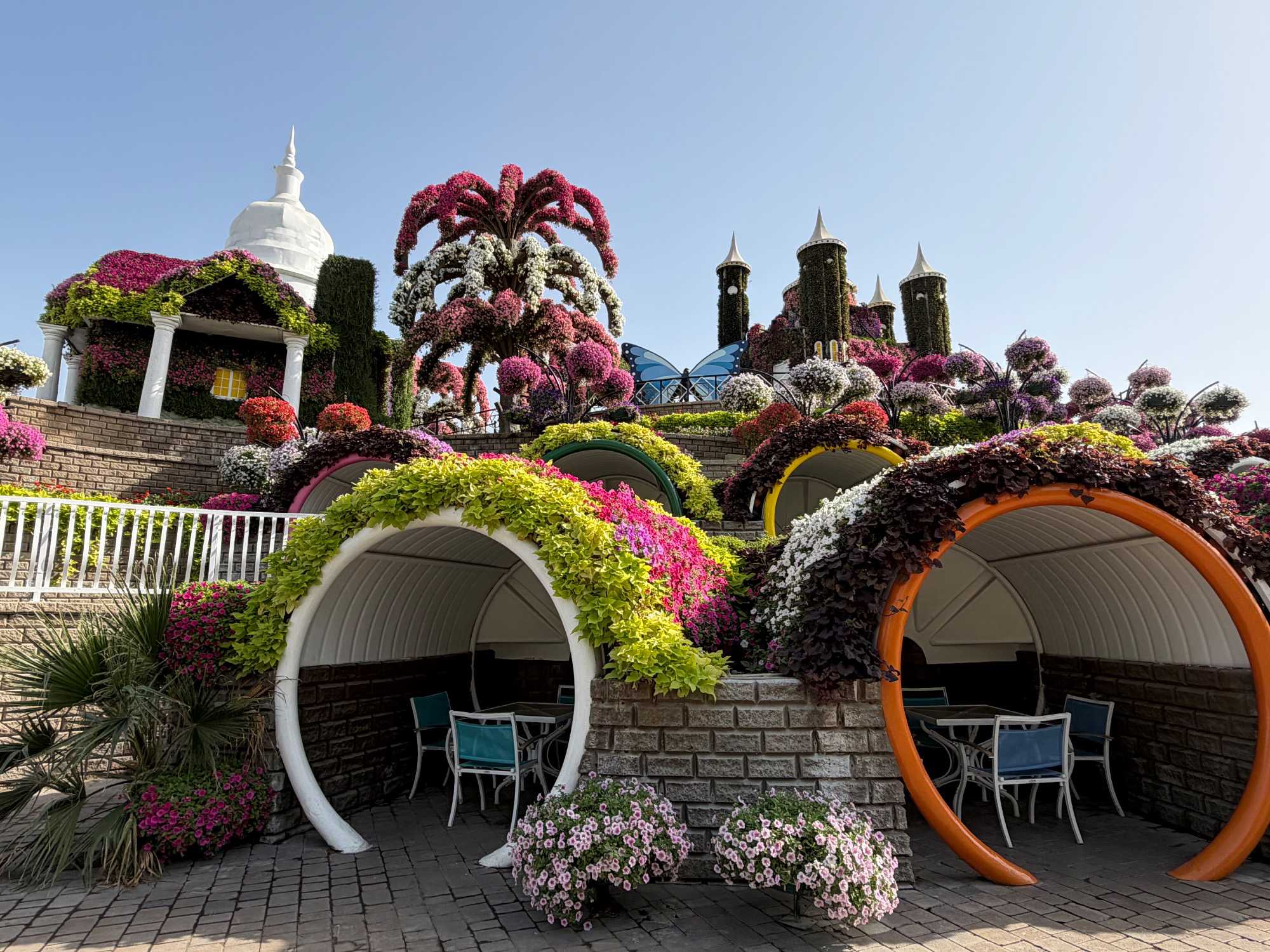 🌹 Des arches florales, des passerelles suspendues, des fontaines et des corridors de papillons offrant des points de vue magnifiques sur l’ensemble du jardin.