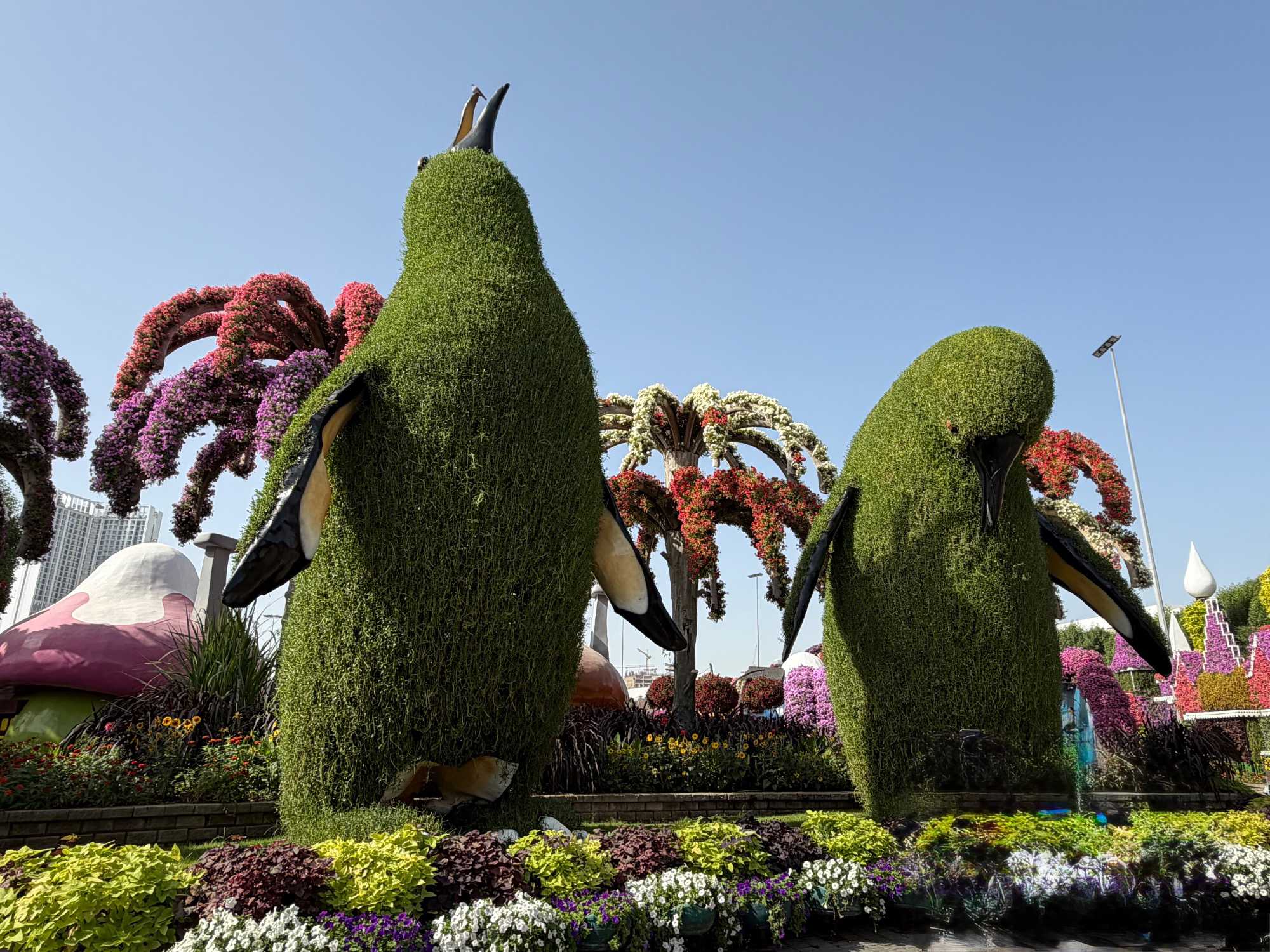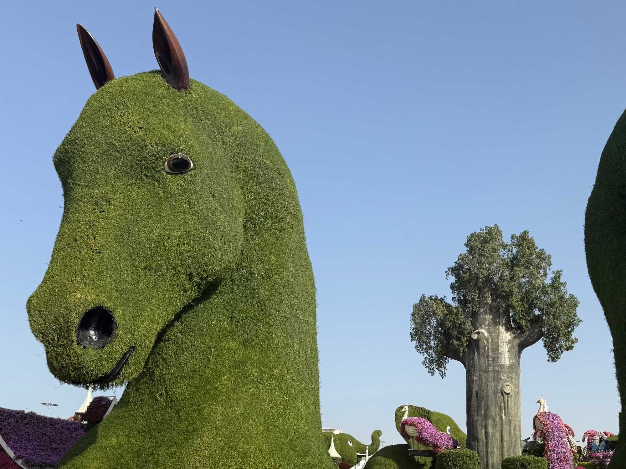 J’ai été très impressionnée par les immenses têtes de chevaux entièrement faites de plantes, véritables sculptures vivantes de verdure, mais aussi par ces manchots géants, si réalistes qu’on s’attendait presque à les voir marcher 🐧🌿. Ils m’ont rappelé, avec émotion, ceux que j’aurai le bonheur de revoir en janvier prochain lors de notre croisière en Antarctique ❄️🛳️.