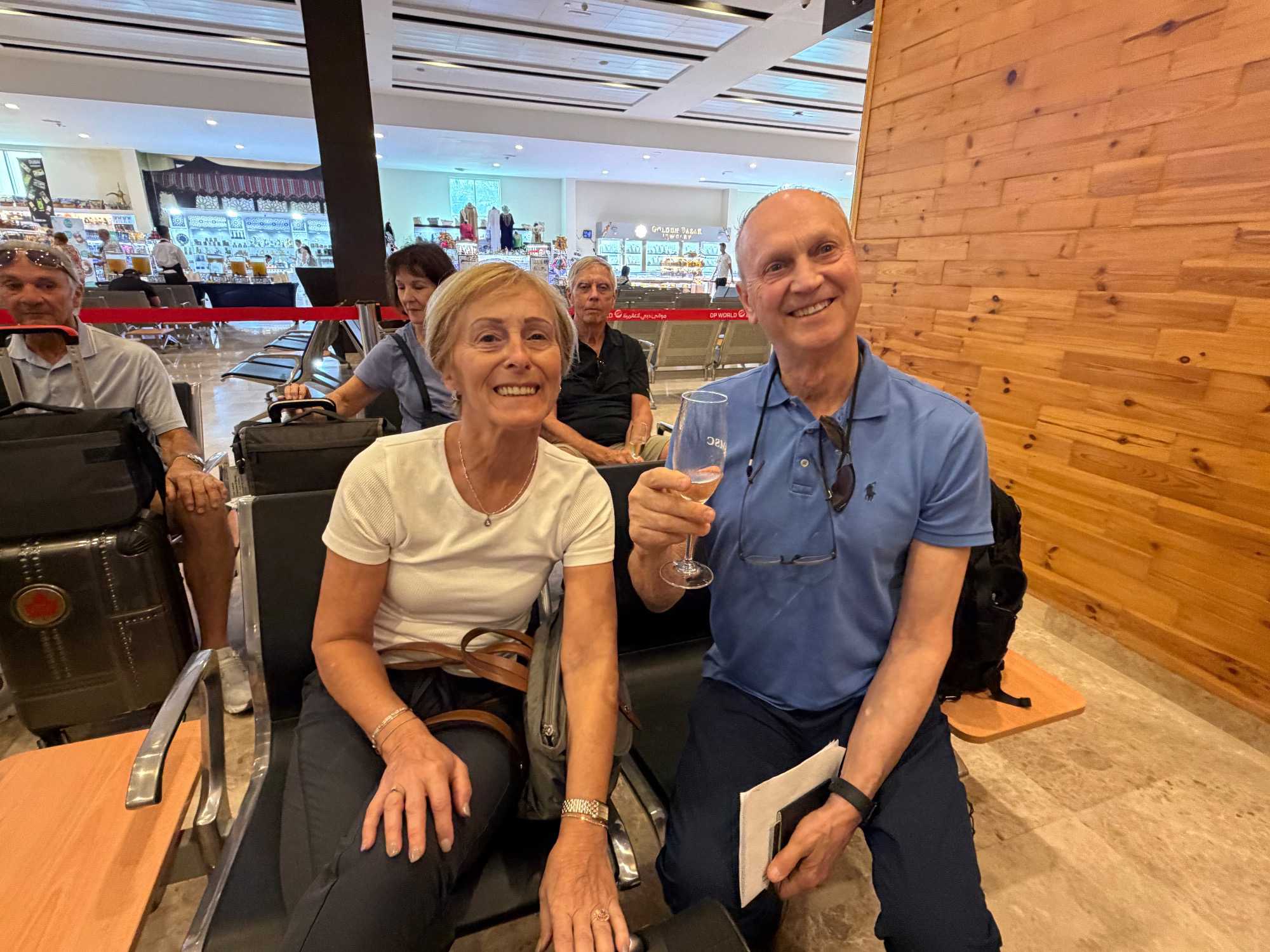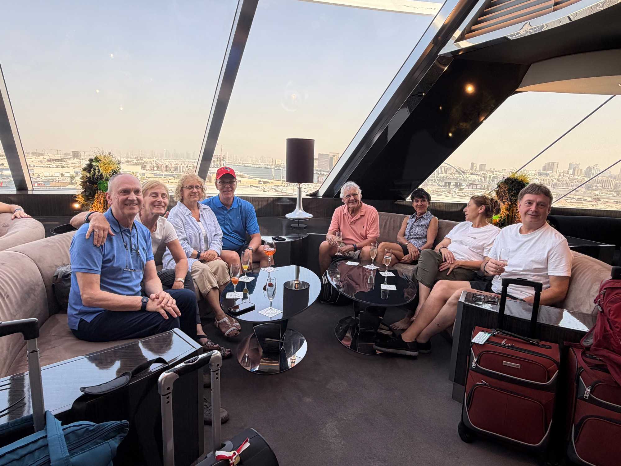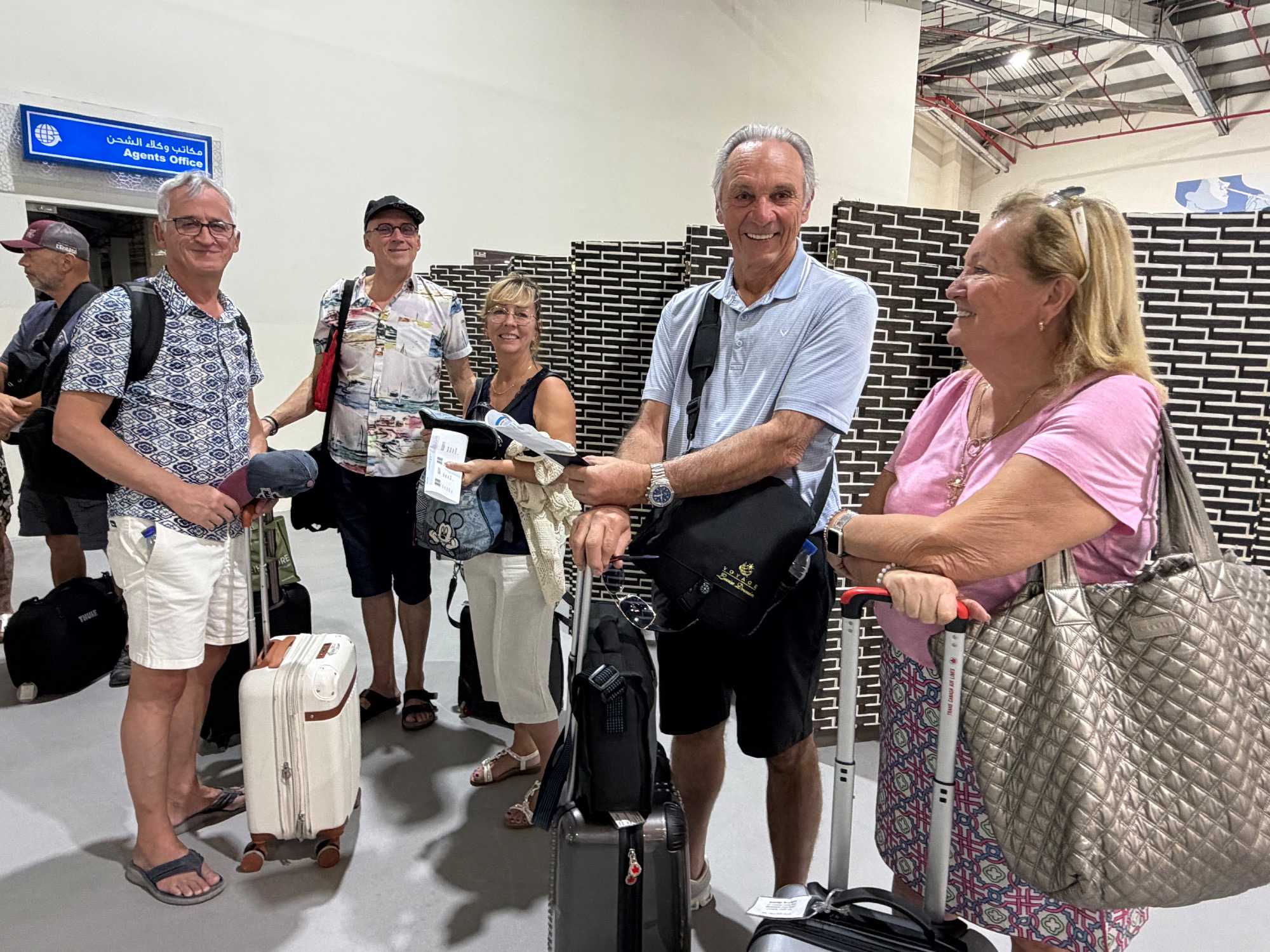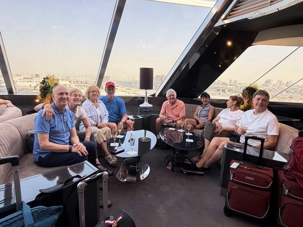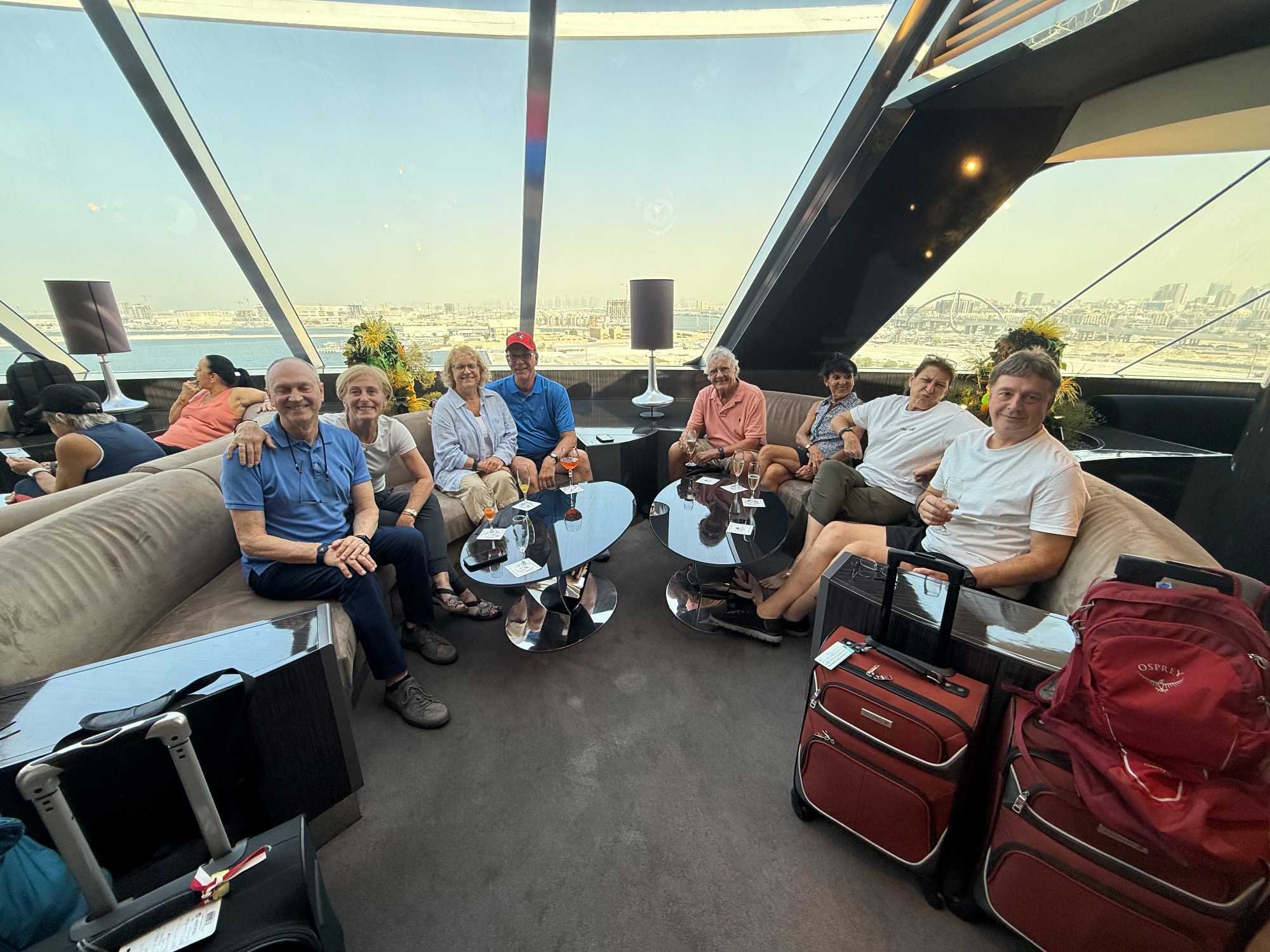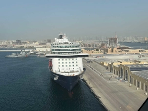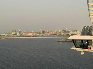 Ce matin, le soleil brille déjà sur Dubaï ☀️, comme pour nous dire au revoir. Après un bon petit-déjeuner à l’hôtel ☕🥐, nous retrouvons avec grand plaisir nos deux guides, Achille et Mohamed, toujours souriants et passionnés. Alors que nous chargeons nos valises à bord de l’autocar, nous ressentons tous un petit pincement au cœur 💛 : après quatre magnifiques journées de découvertes, il est déjà temps de quitter cette ville spectaculaire que nous avons tant aimée. Mais une chose est certaine — nous y reviendrons !🌆✨ À Dubaï, il fait toujours beau, et la chaleur du soleil semble à l’image de celle des gens que nous y avons rencontrés. Nous quittons notre hôtel avec un groupe heureux, enthousiaste et, comme toujours, parfaitement à l’heure ⏰😊, prêts à vivre une nouvelle aventure à bord de notre navire de croisière.