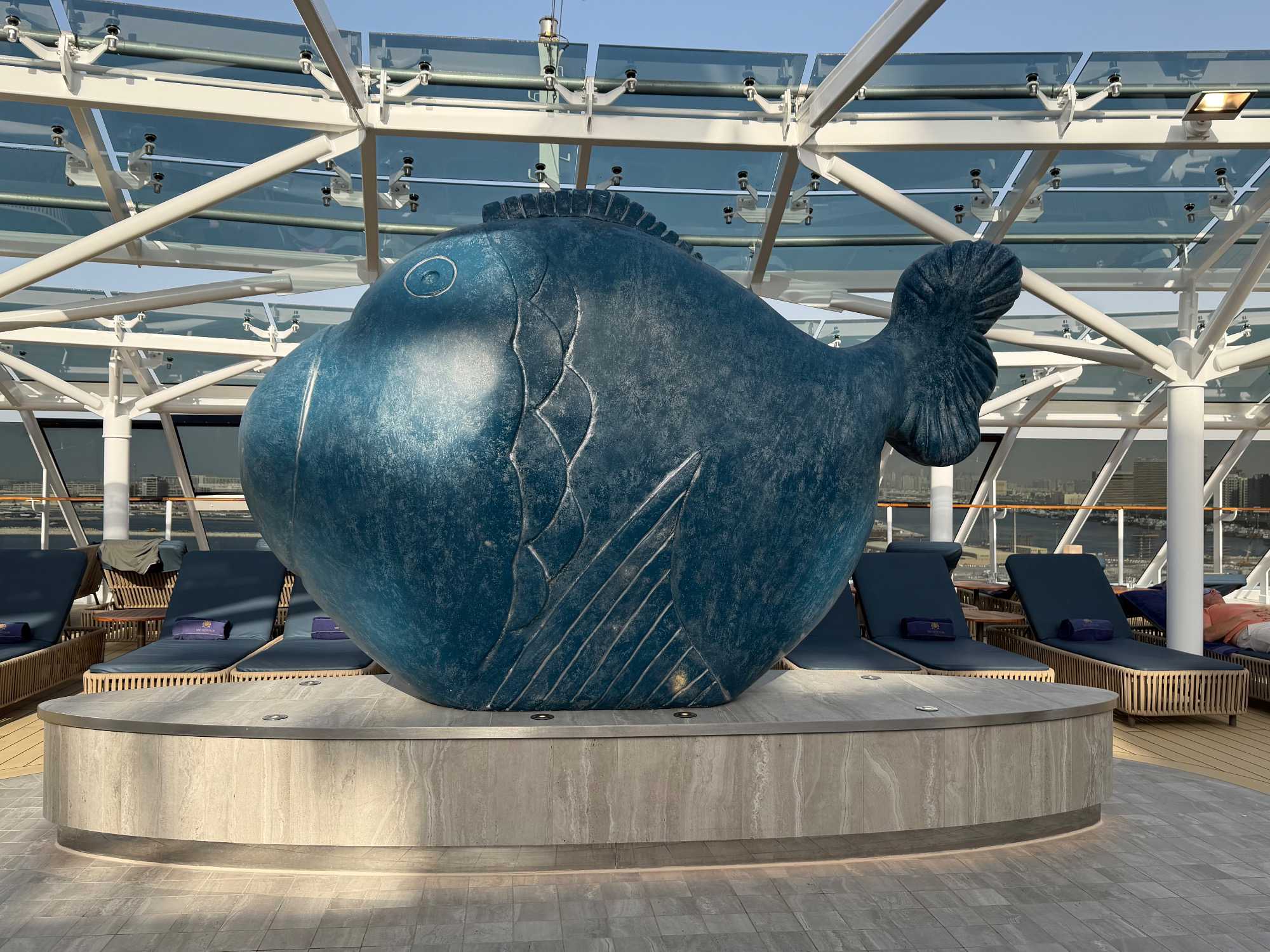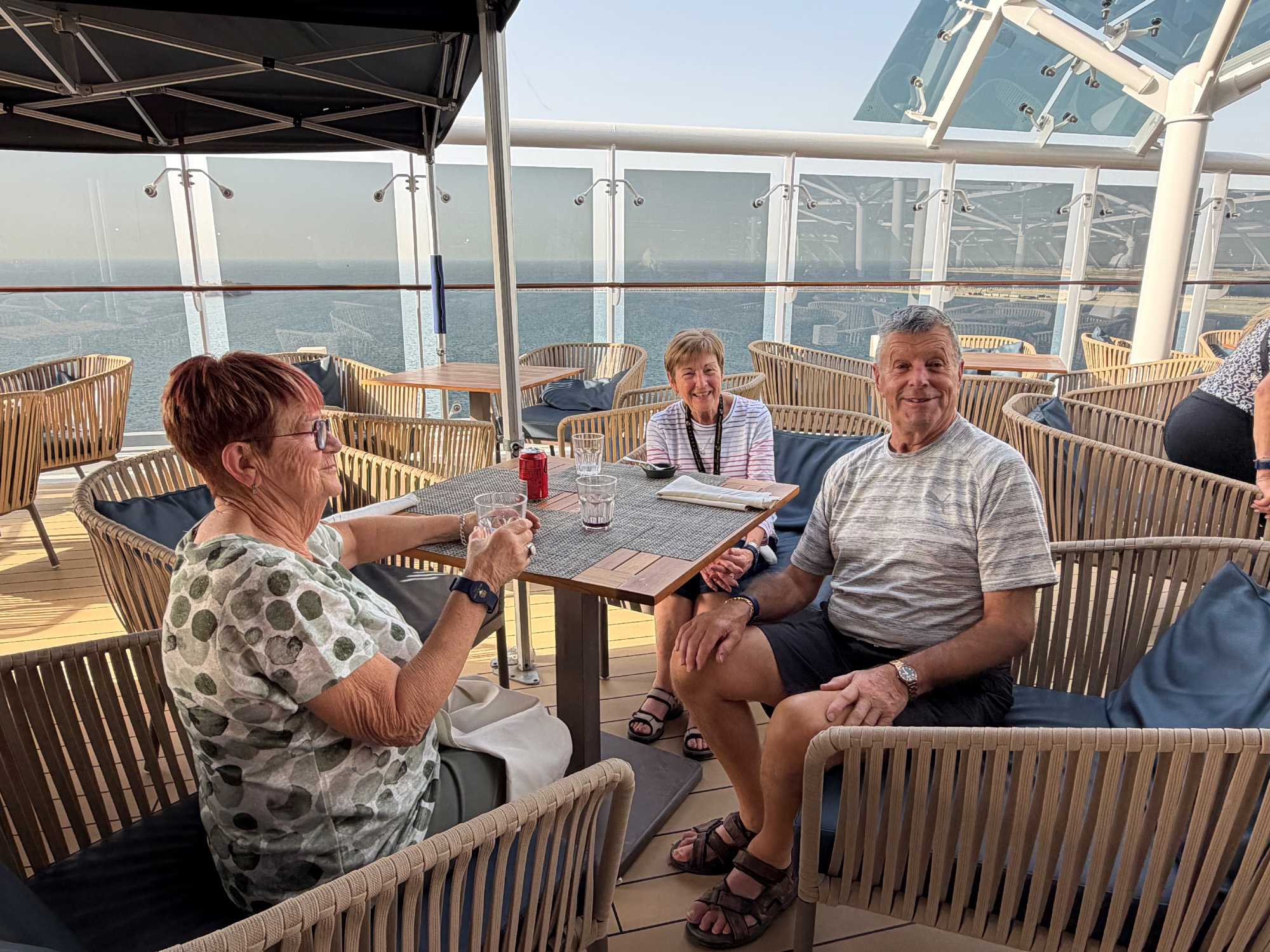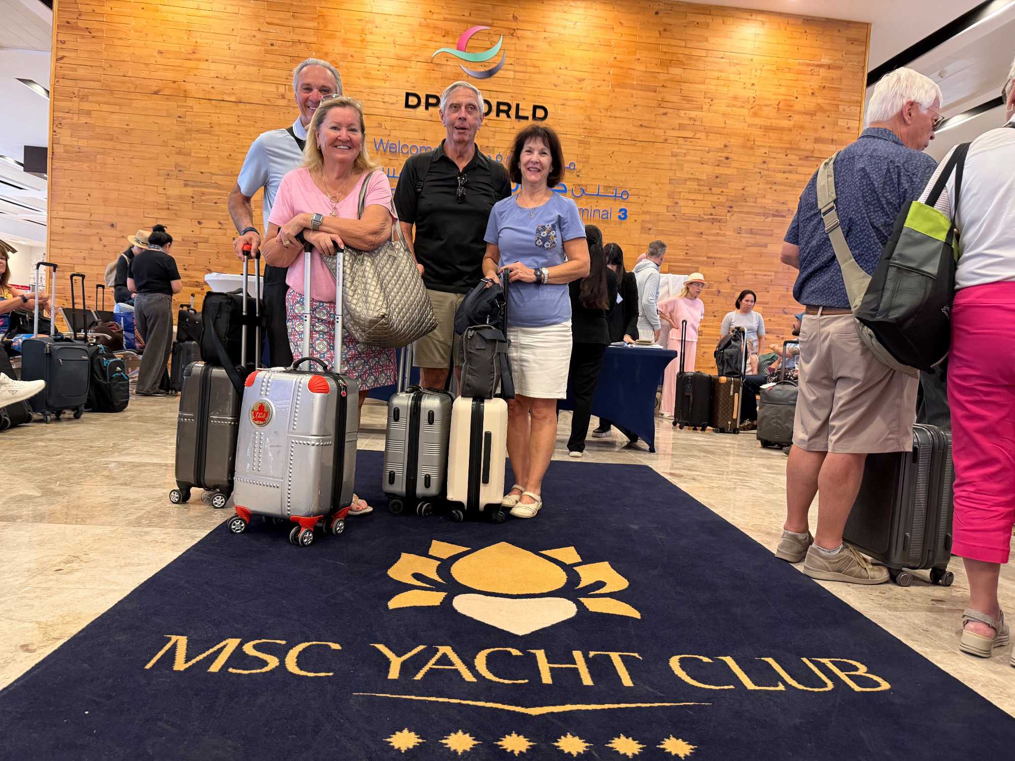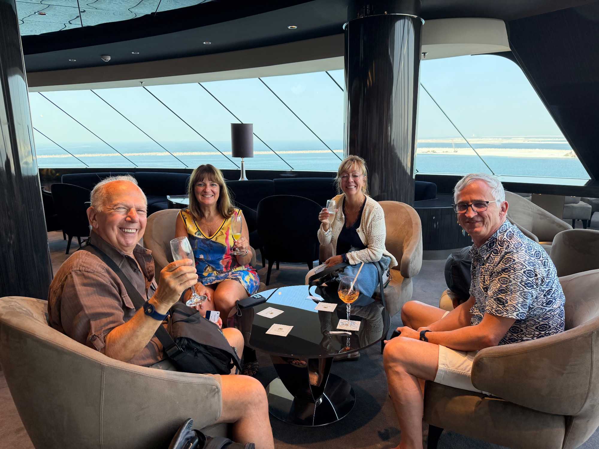 Chacun découvre son balcon privé, la literie luxueuse, la salle de bain en marbre et toutes les attentions raffinées réservées aux passagers du Yacht Club. 🌅✨ Nous avons pris place dans nos suites, puis savouré un excellent lunch à la salle à manger du Yacht Club 🍽️, avec une vue superbe sur le port et la ville de Dubaï. L’après-midi s’est déroulée dans une atmosphère détendue et joyeuse : exploration du navire, baignade, détente et conversations animées.