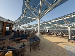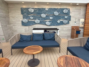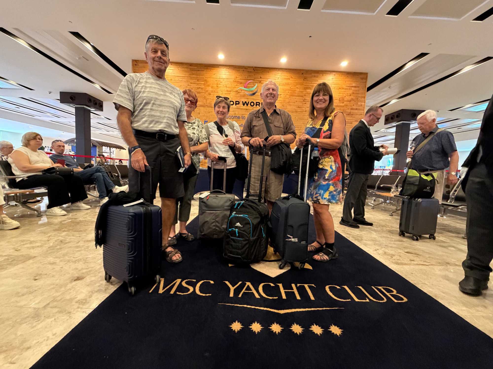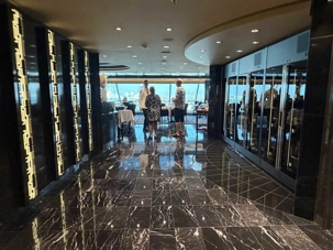 Nos valises sont prises en charge, et nous sommes escortés directement vers la section Yacht Club, évitant ainsi les files et la foule. C’est exactement l’expérience que nous souhaitions : confort, calme et service attentionné. Nous montons jusqu’au 16e étage, où se trouve cette section exclusive située à l’avant du navire.