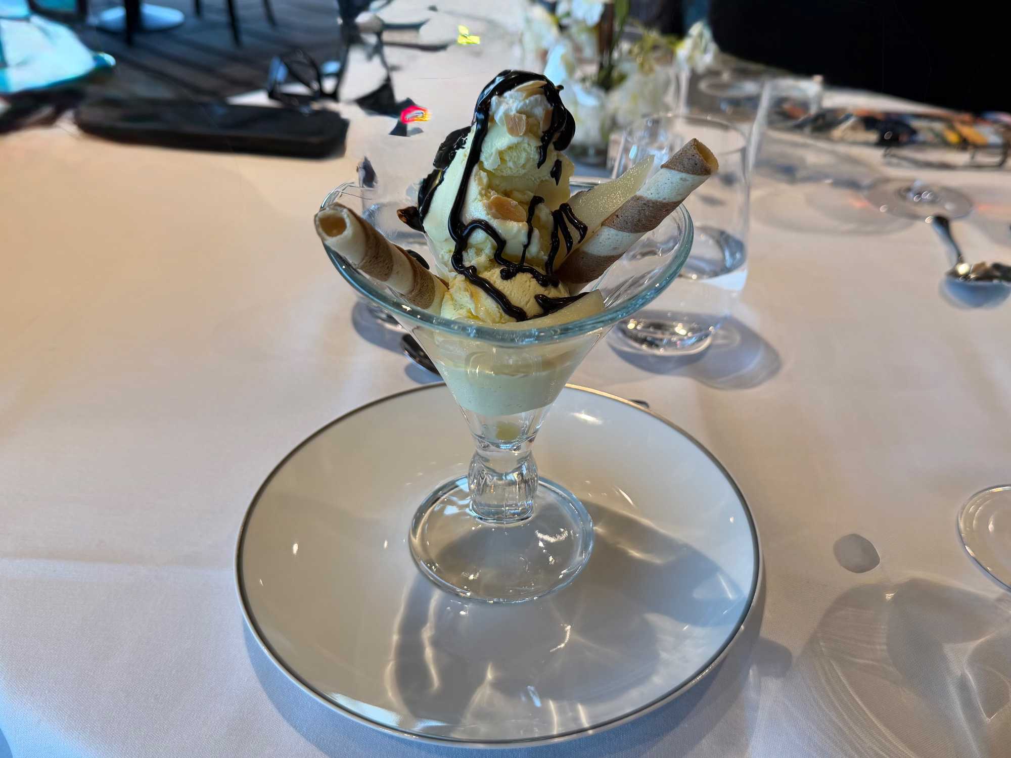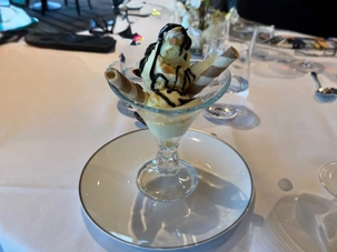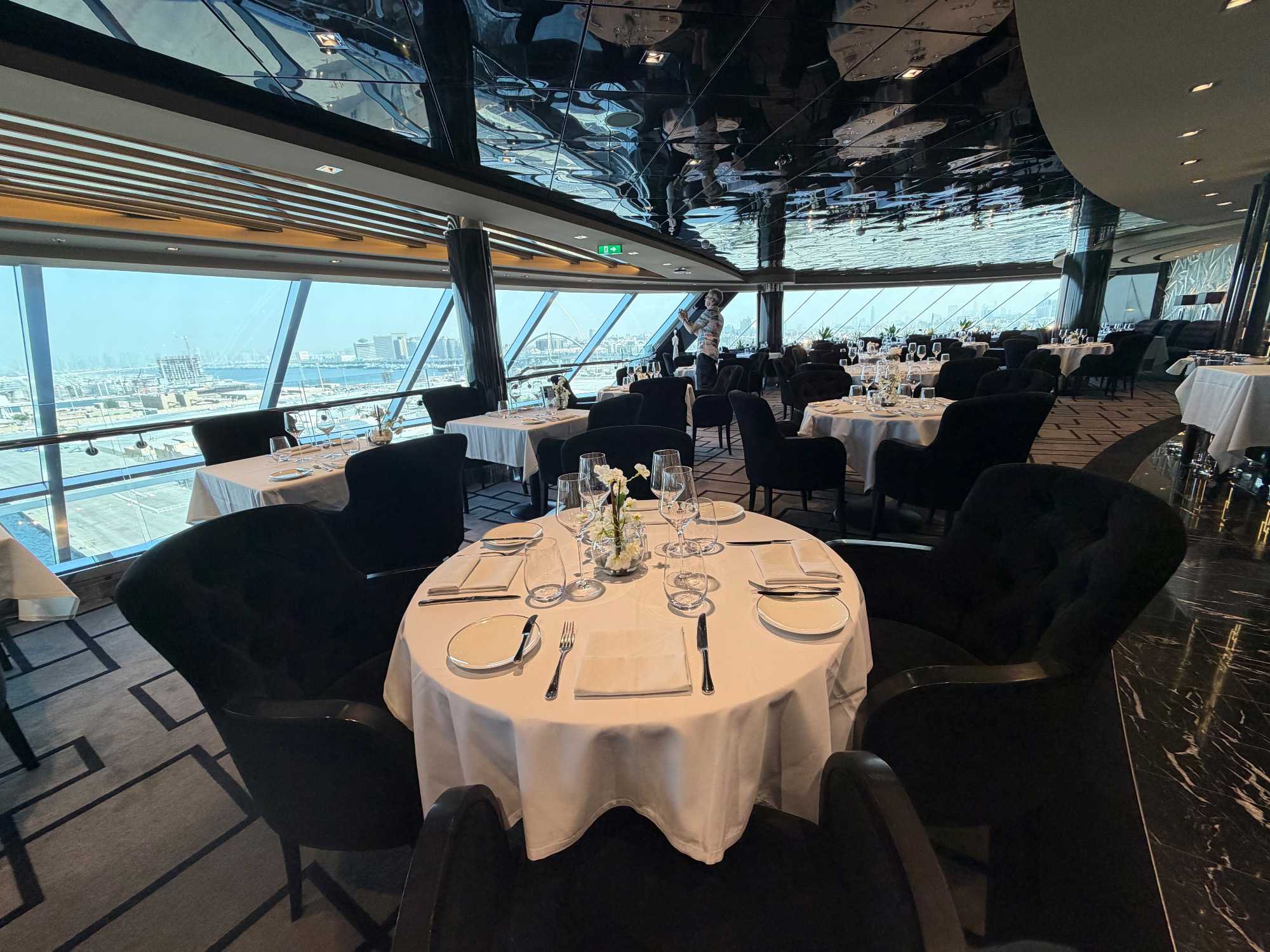 Nous étions confortablement installés à nos sièges attitrés dans la salle de spectacle, accompagnés par nos butlers, toujours attentifs à notre confort. Après ce magnifique spectacle, nous nous sommes retrouvés pour le cocktail de bienvenue 🍸, avant de profiter d’un souper gastronomique dans notre restaurant privé du Yacht Club. La cuisine raffinée, le service impeccable et la douce ambiance de la salle ont fait de ce repas un moment de pur bonheur. La soirée s’est terminée dans la quiétude du lounge privé, avec quelques rires et discussions autour d’un dernier verre, avant que chacun ne rejoigne sa suite pour un repos bien mérité. 🌙💤