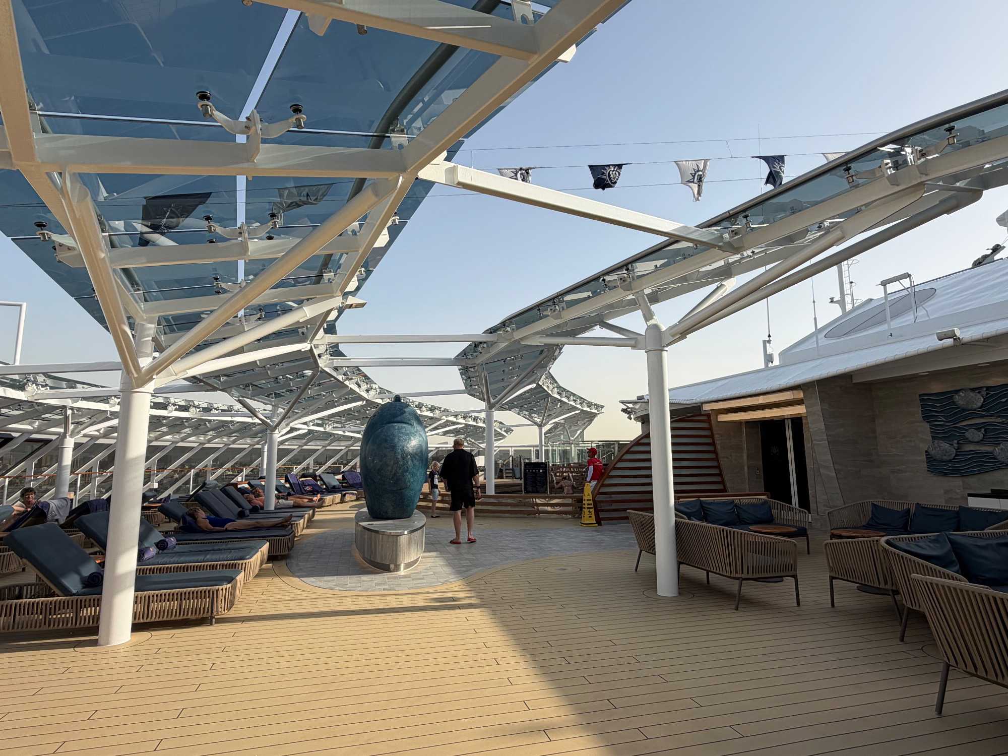 Le Yacht Club est un “navire dans le navire”, un monde de tranquillité et de luxe situé à la proue du bateau. On y retrouve :