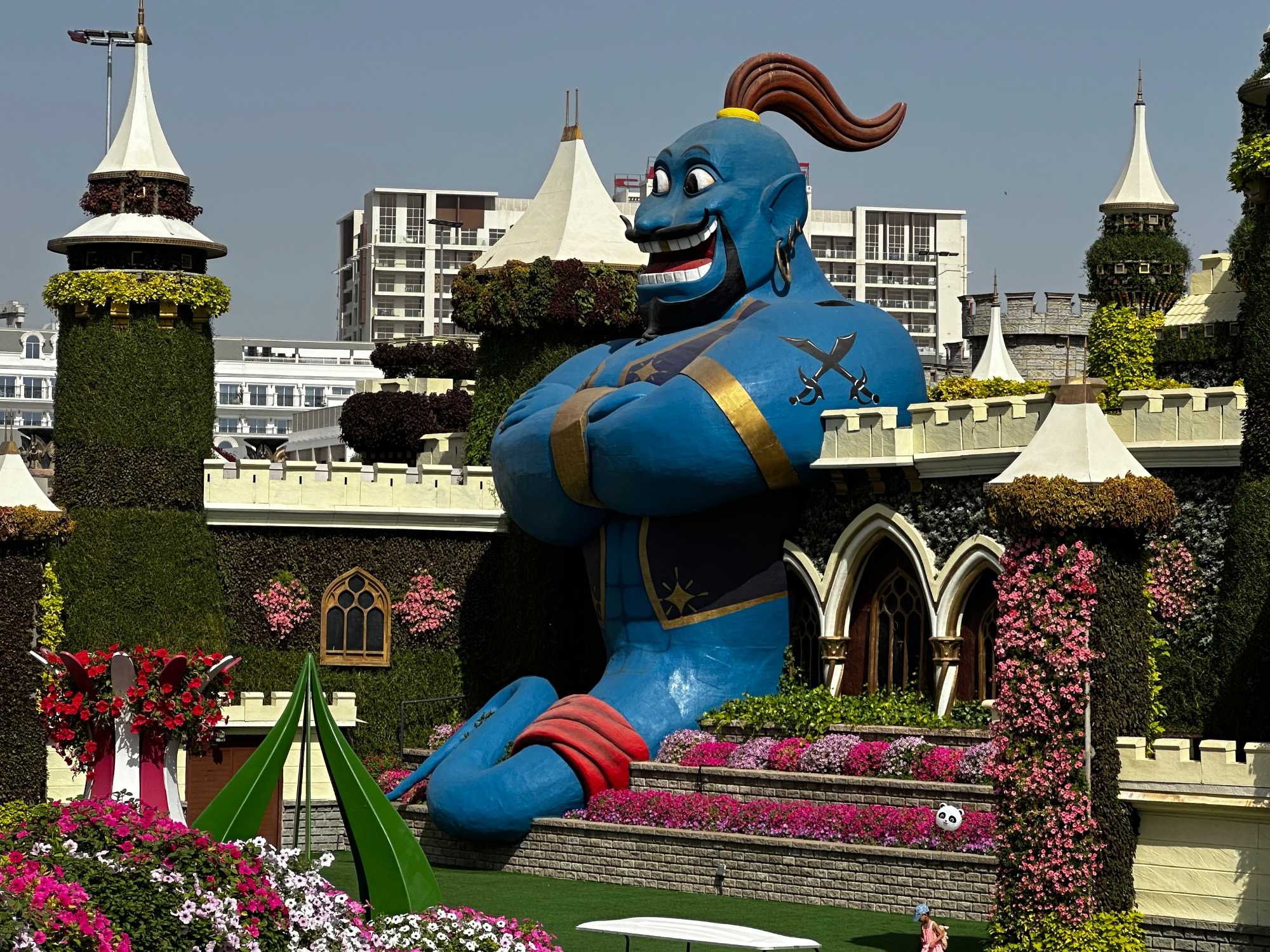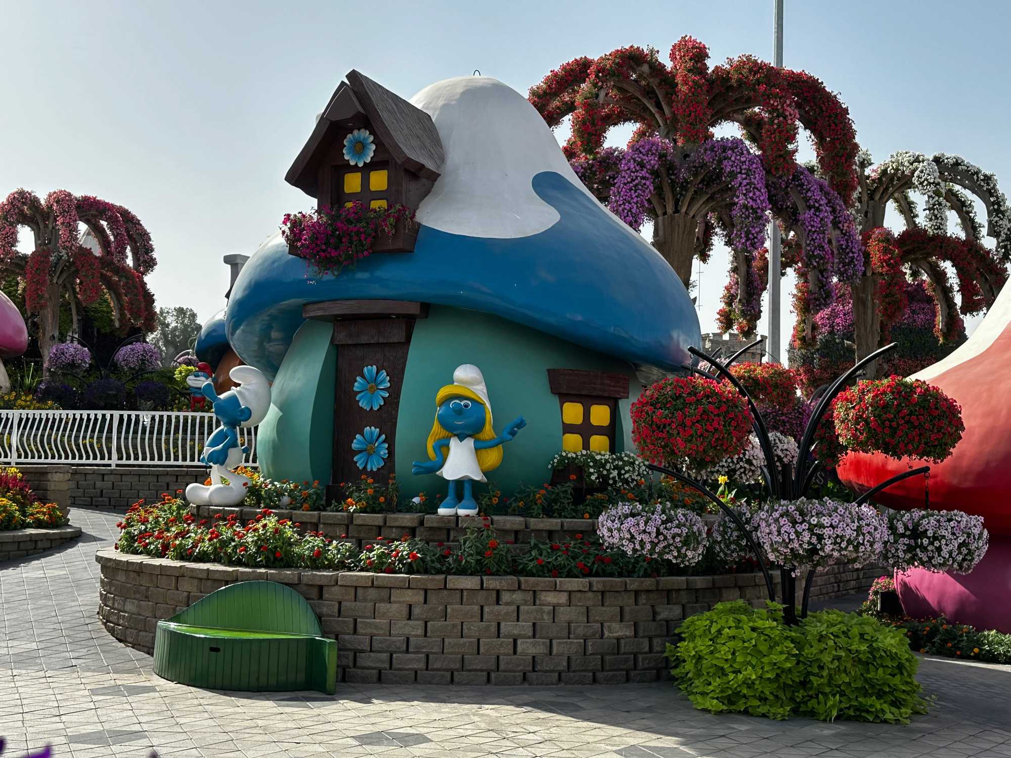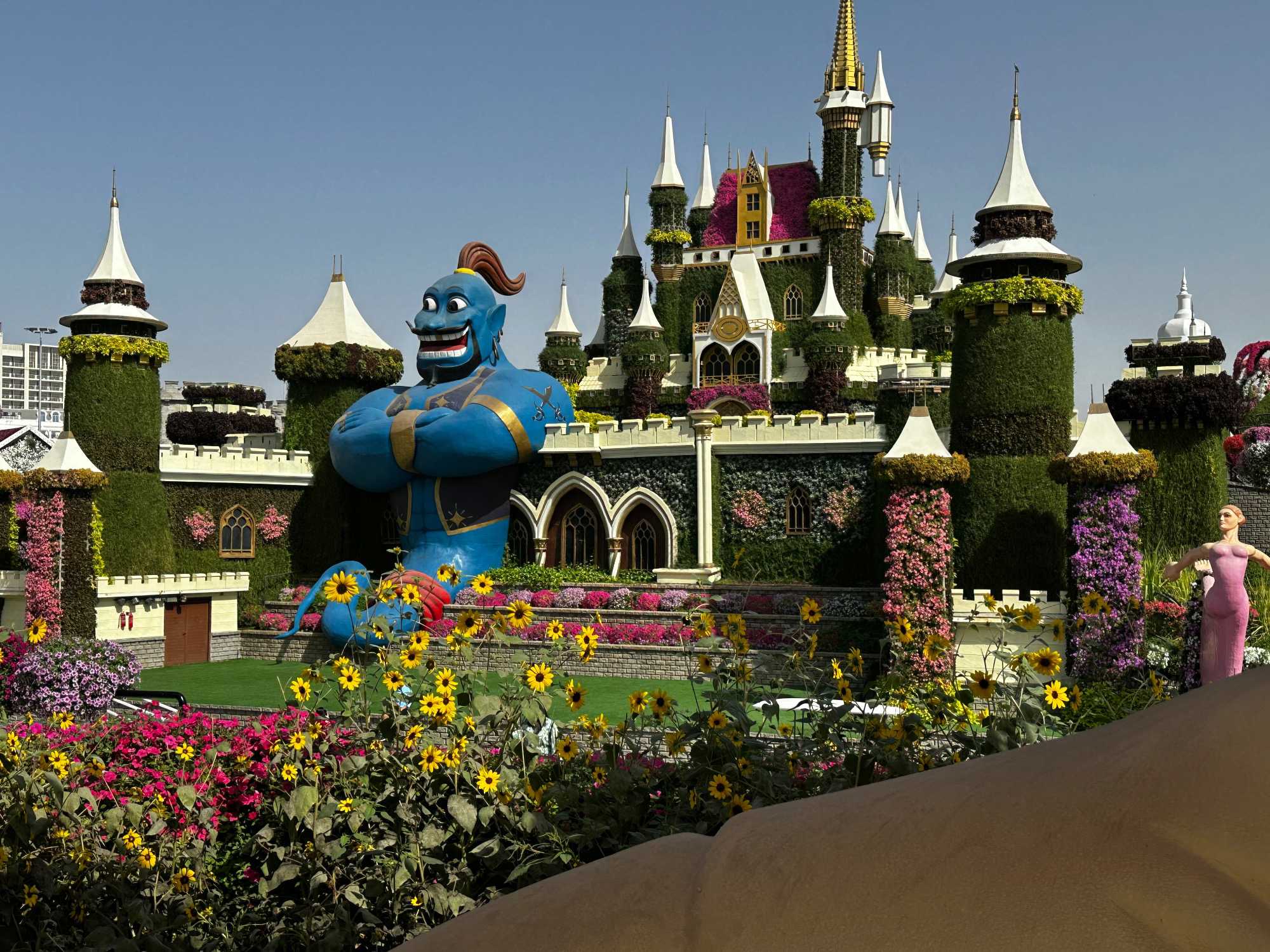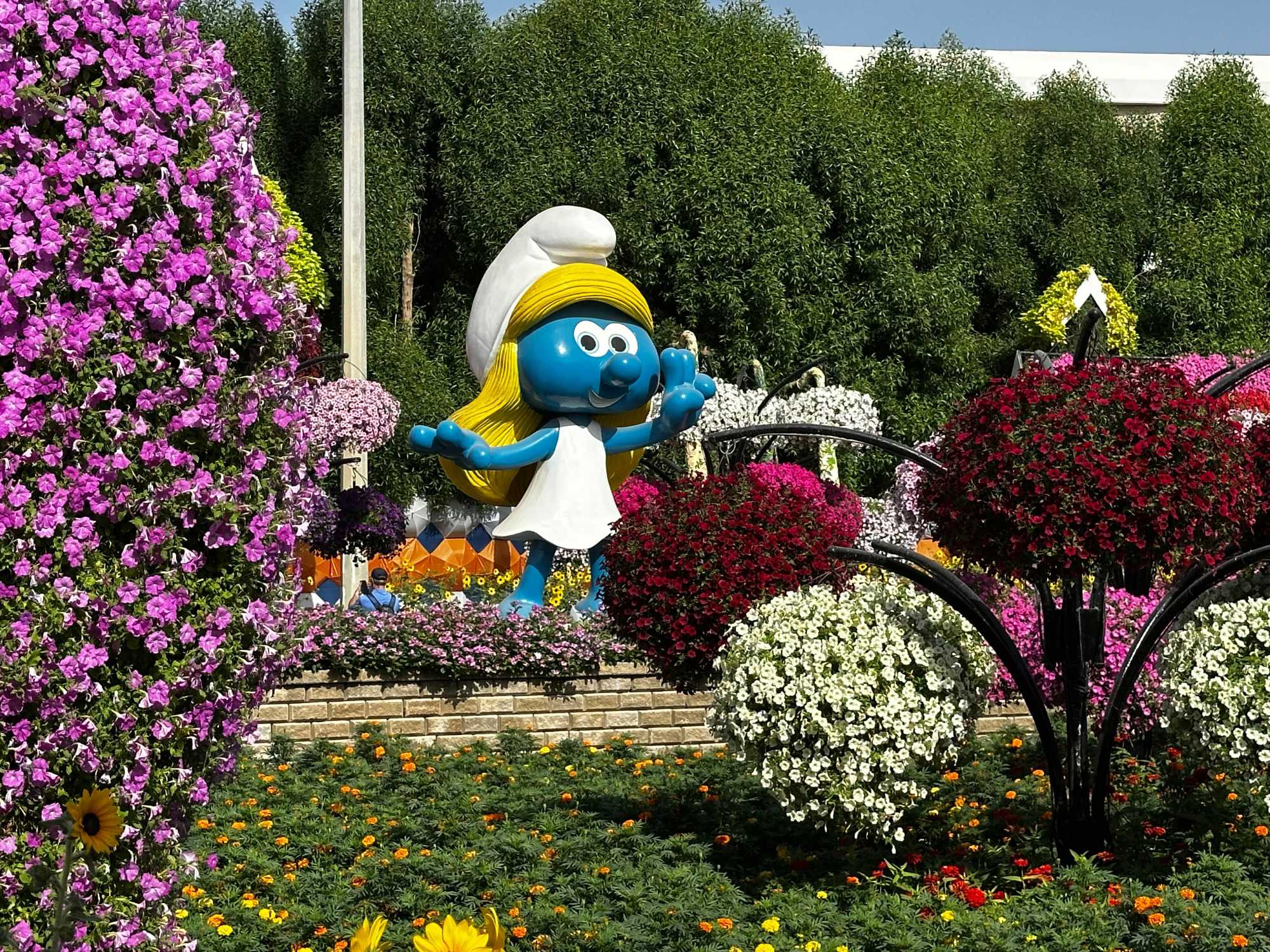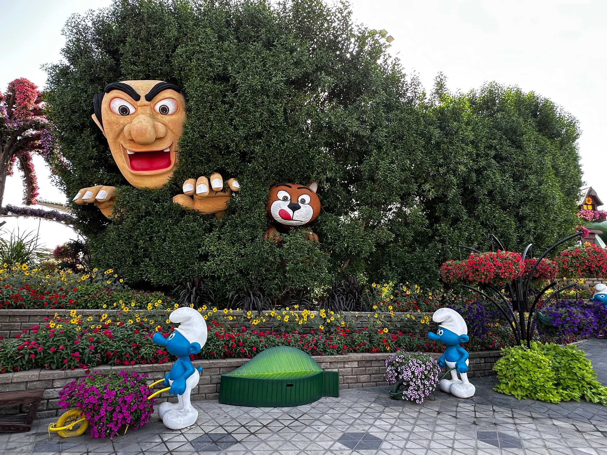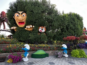Il y avait aussi de magnifiques paons majestueux, aux queues fleuries déployées comme des arcs-en-ciel, les Schtroumpfs amusants 💙 qui faisaient sourire tout le monde, et bien sûr Aladdin et Jasmine, qui ajoutaient une touche de conte des Mille et Une Nuits ✨. Tout était absolument merveilleux : un univers magique où la nature devient art, et où chaque fleur semble raconter une histoire. 🌸💖