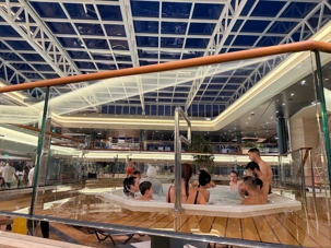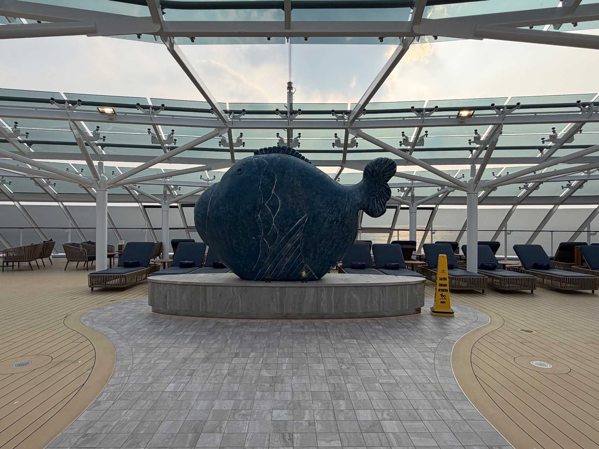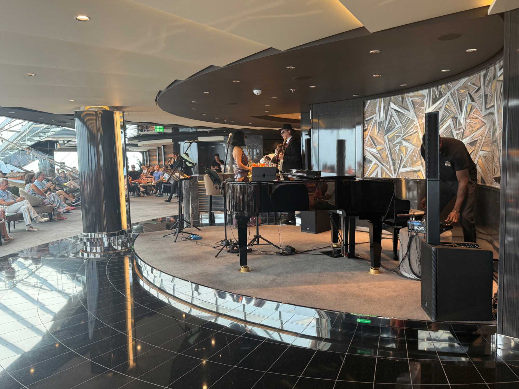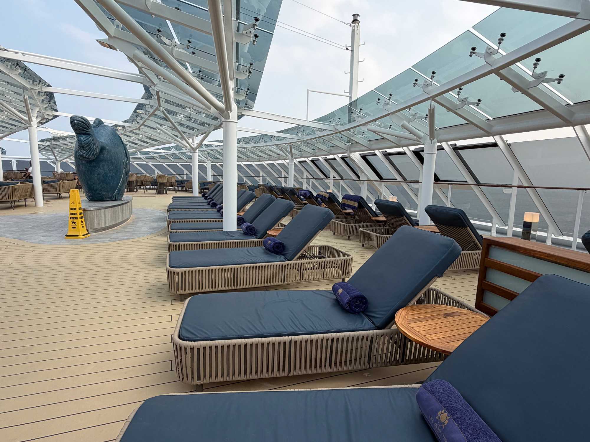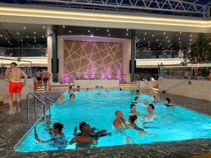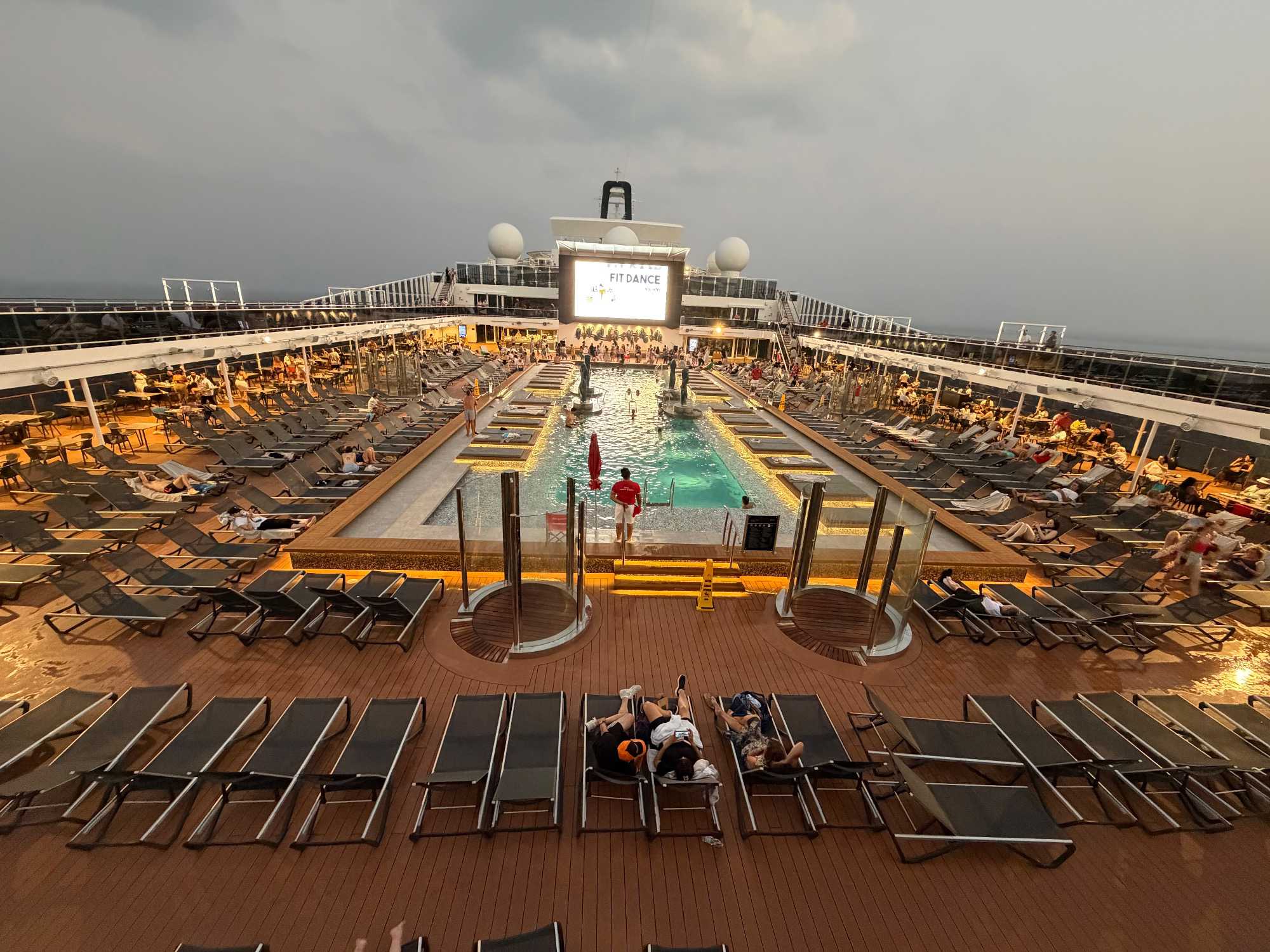 Après ce beau moment, nous avons poursuivi la journée avec un dîner décontracté, toujours délicieux, dans la salle à manger du Yacht Club. Les conversations tournaient autour de la qualité du service, des paysages marins et de la beauté du navire. 💬🥂 L’après-midi s’est ensuite déroulé dans la douceur, comme une parenthèse de calme et de plaisir. Certains se sont installés sur les chaises longues du pont supérieur pour profiter du soleil, d’autres ont préféré le spa, la lecture ou la piscine. Une mer d’huile, un ciel sans nuage et un air tiède rendaient l’atmosphère simplement parfaite. 🌞🌴