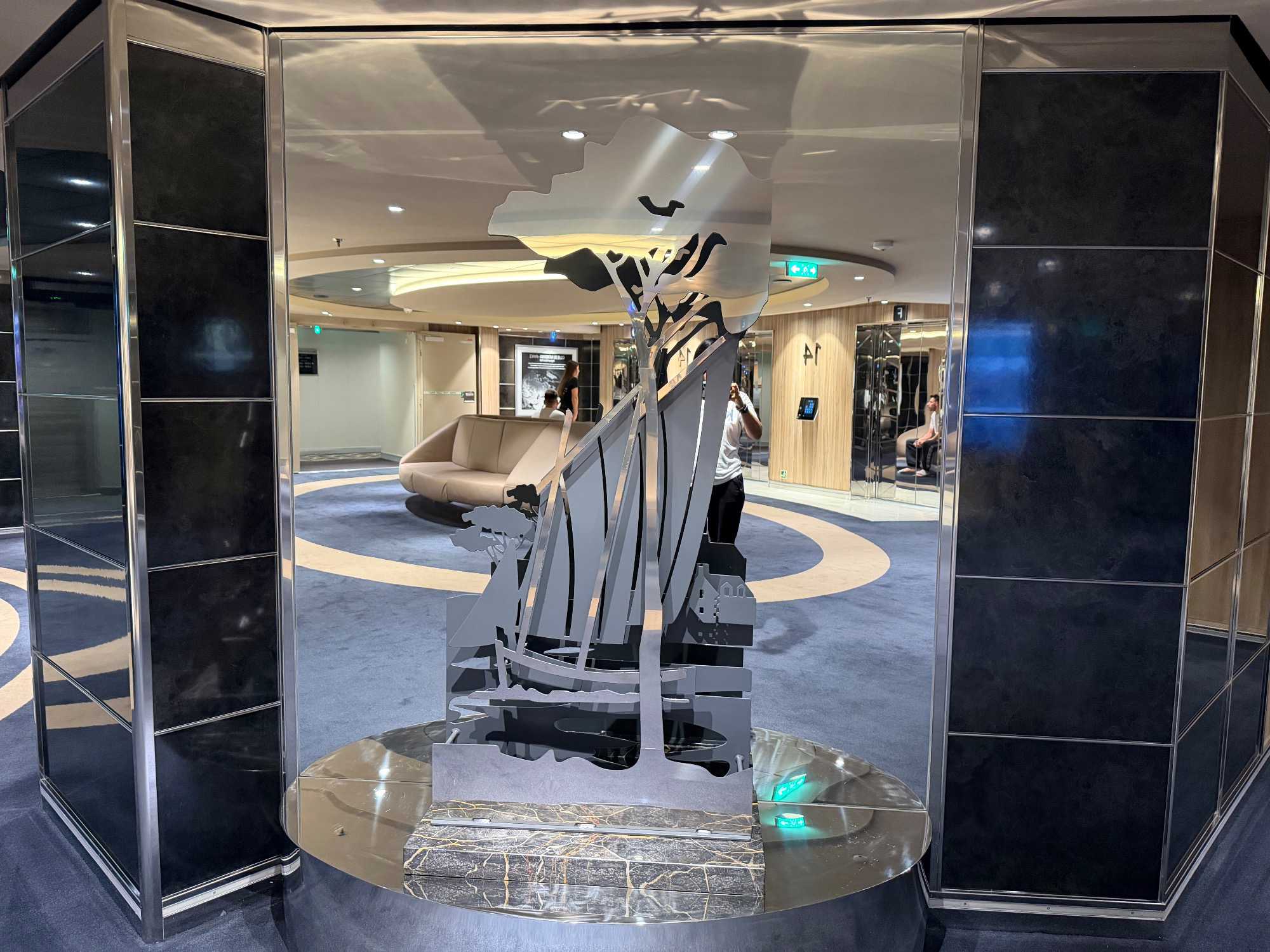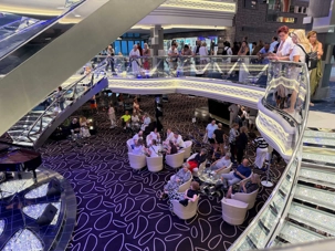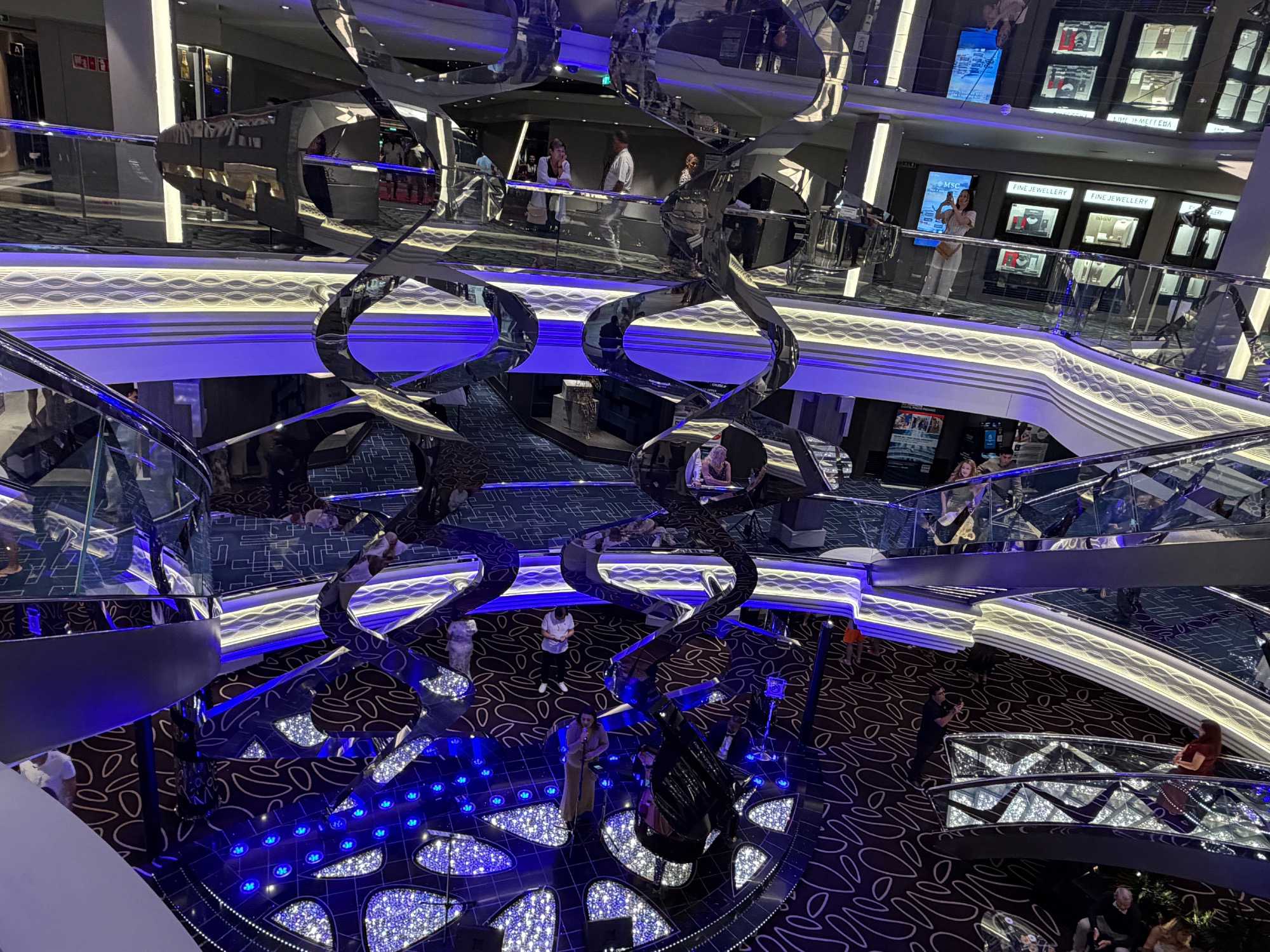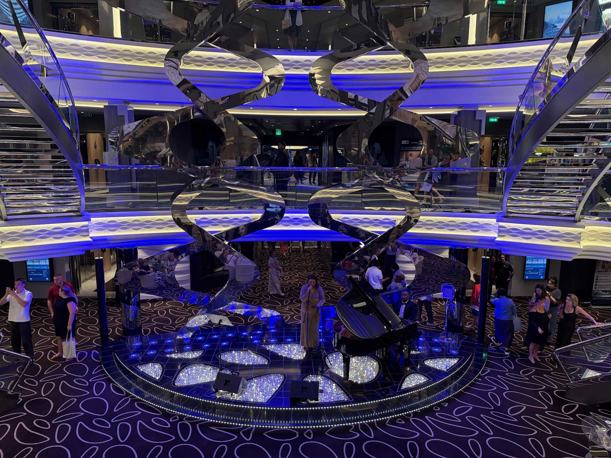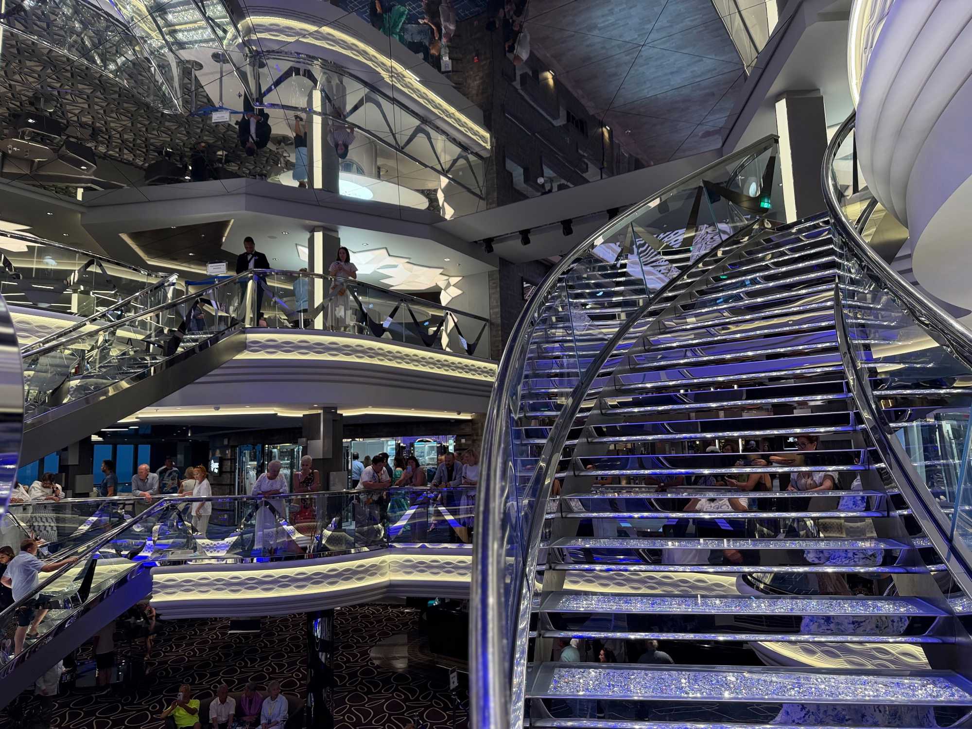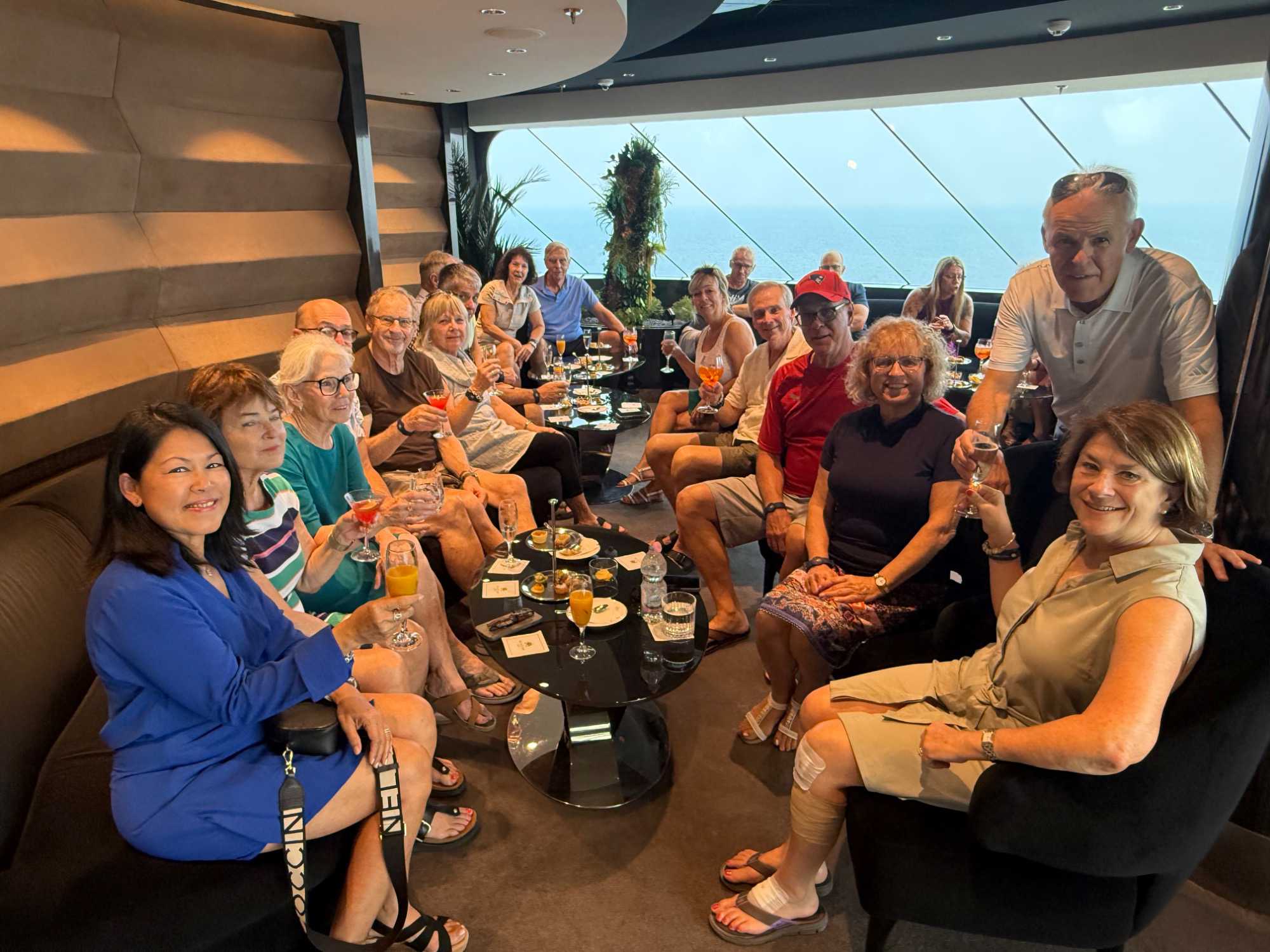 L’événement se tenait dans le superbe salon privé, décoré avec élégance, où tout le personnel du Yacht Club est venu se présenter. Le commandant du navire lui-même est passé nous saluer, sourire aux lèvres, pour nous souhaiter la bienvenue et souligner sa fierté de nous compter à bord. ⚓👨✈️Ce fut un moment de grande classe, ponctué de musique, de canapés raffinés, et bien sûr de boissons à volonté servies avec art. Tous les Butlers, se démarquaient par leur gentillesse, leur humour et leur attention constante : ils veillaient à ce que chacun ne manque de rien, toujours présents avec un service impeccable. 🍸💫 on les adore ces Butlers, et en plus ils sont au moins cinq à parler français. Même le capitaine ce matin nous a parlé en français. Un autre point positif, le français à bord est omniprésent. Les menus à la salle à manger, les journaux de bord, le service concierge de notre Yacht Club avec deux personnes pouvant nous répondre en français. Incroyable!